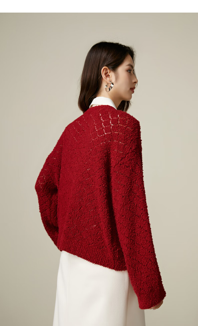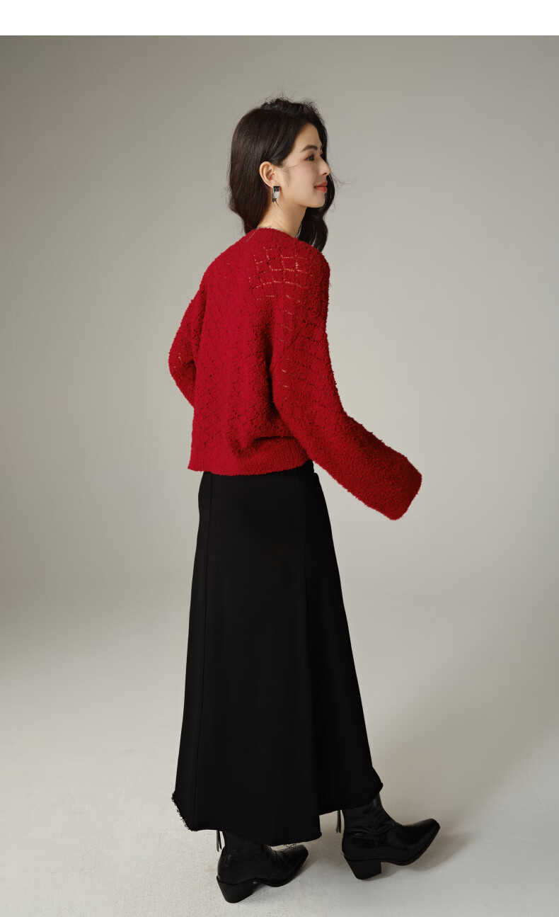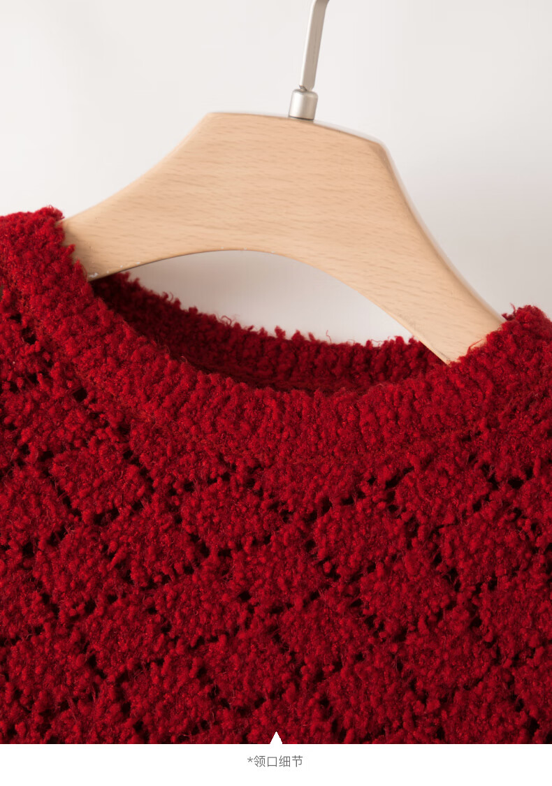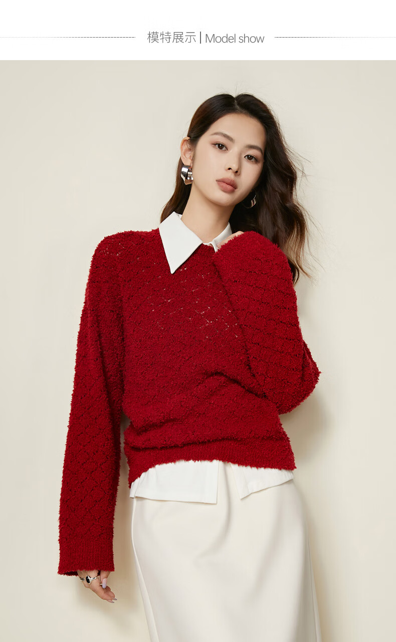 Late White New Product 2025 Autumn Fashionable and Versatile Chinese Red Sweater Solid Color Pullover Sweater Women Red S