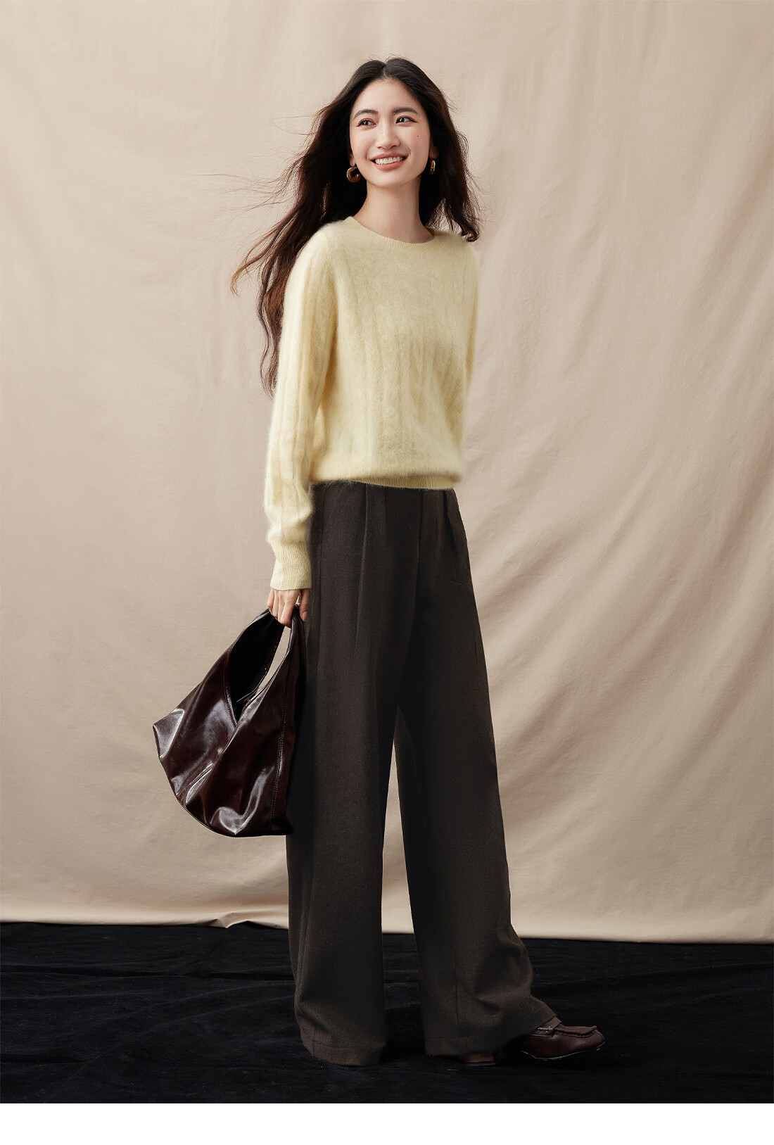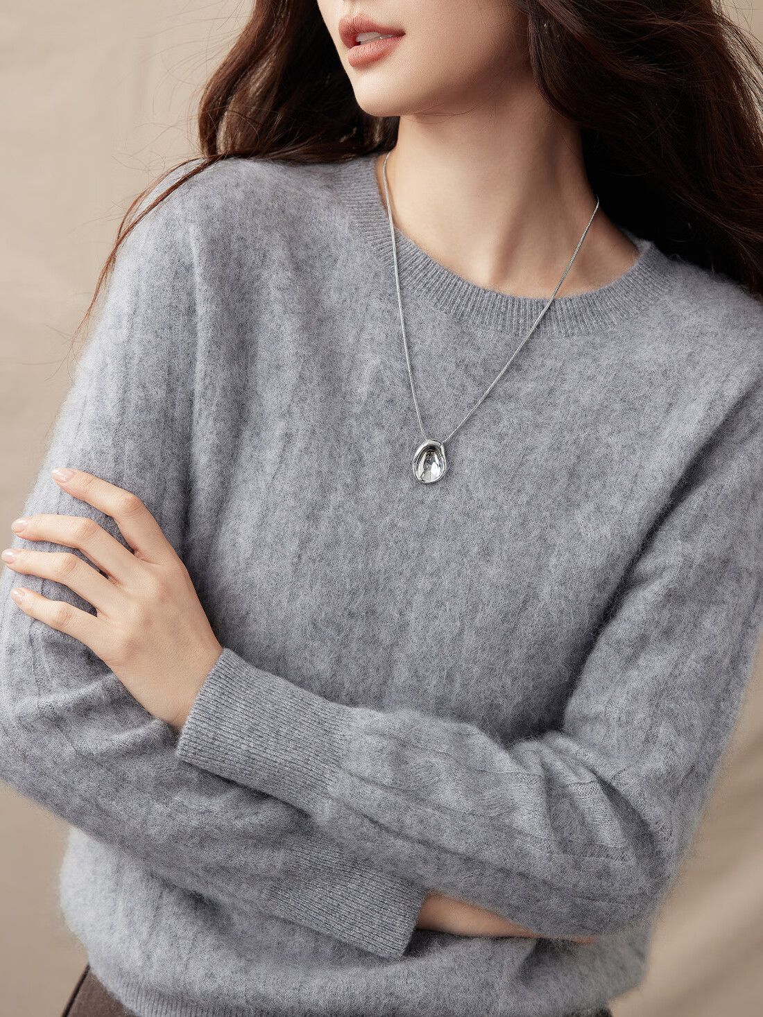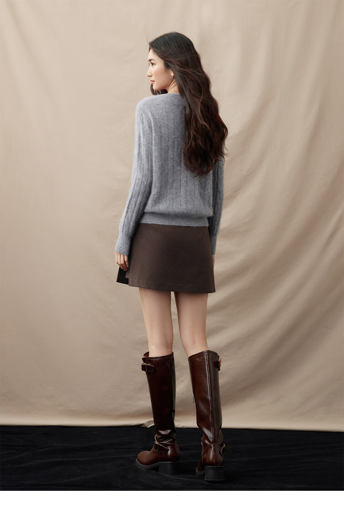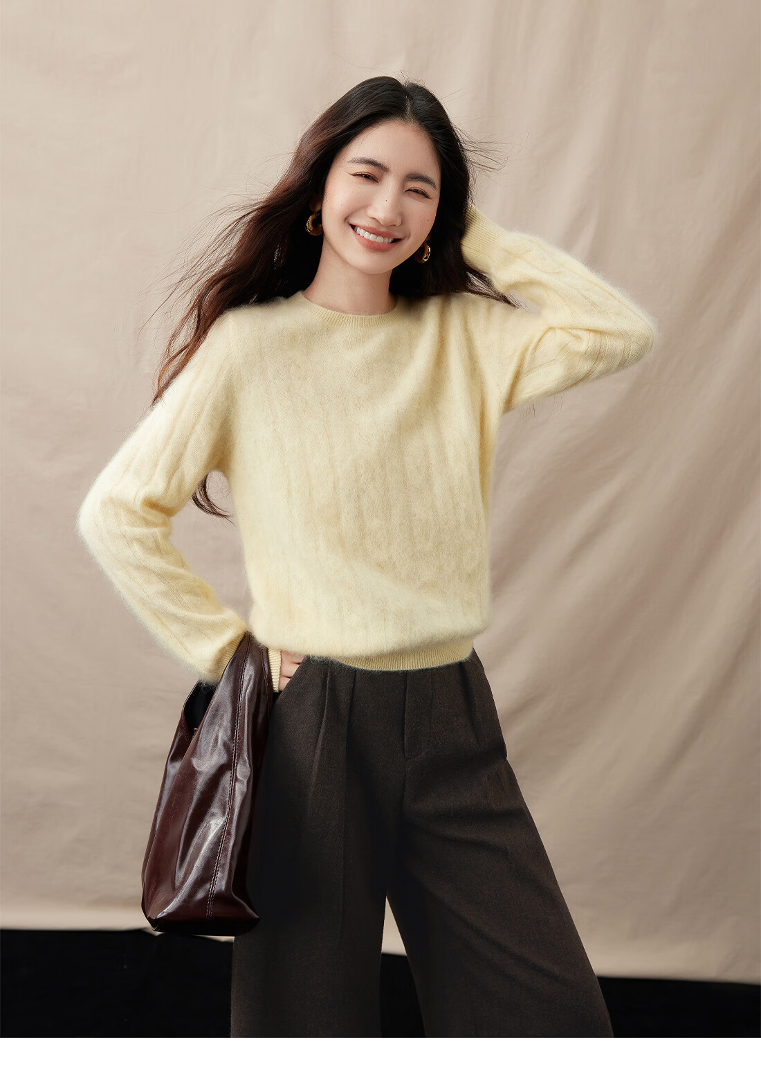 L.WEST crew neck pullover women's 2025 winter new simple commuting 100% wool cable knit sweater gray S 85-100Jin Jin equals 0.5 kg