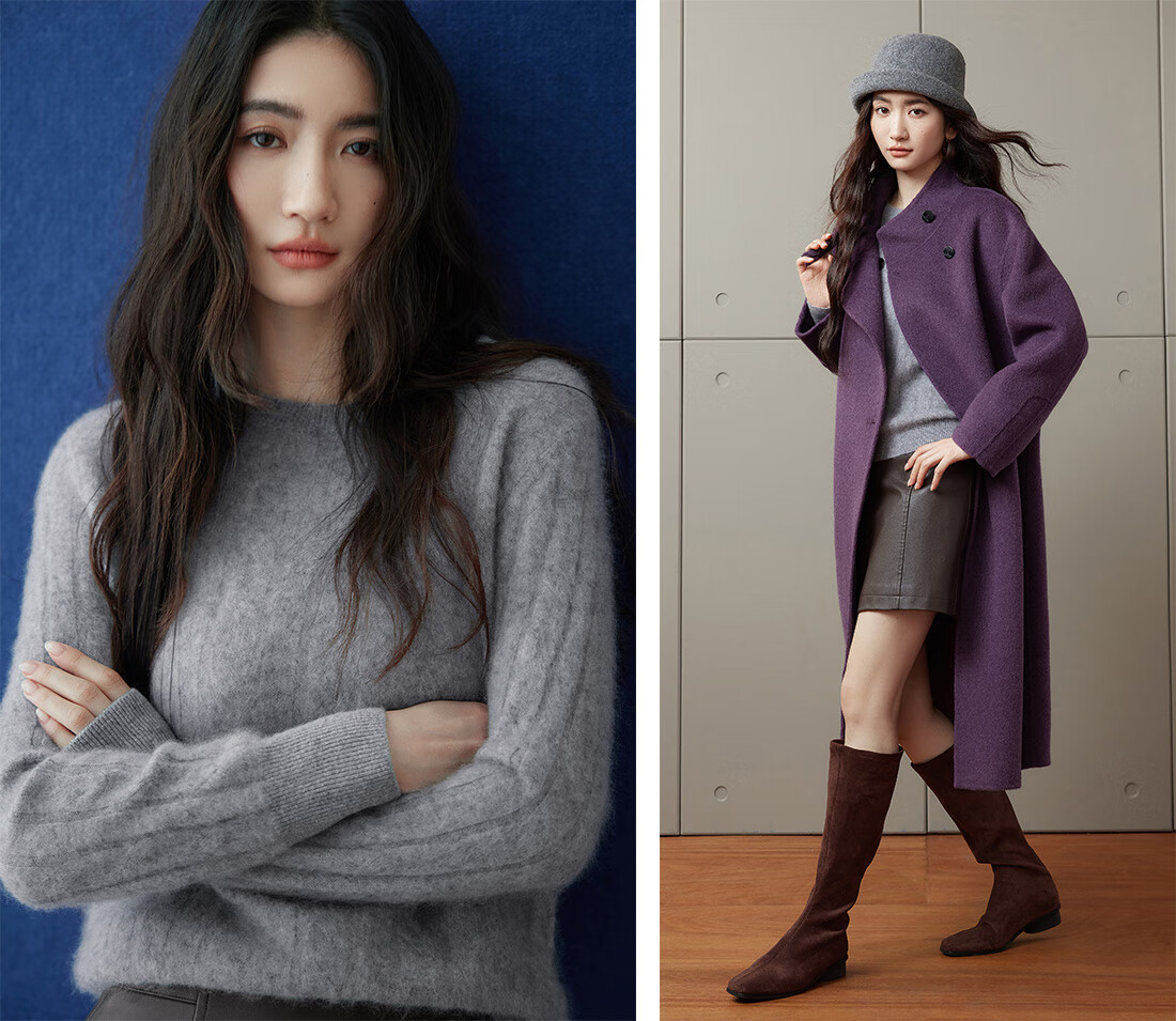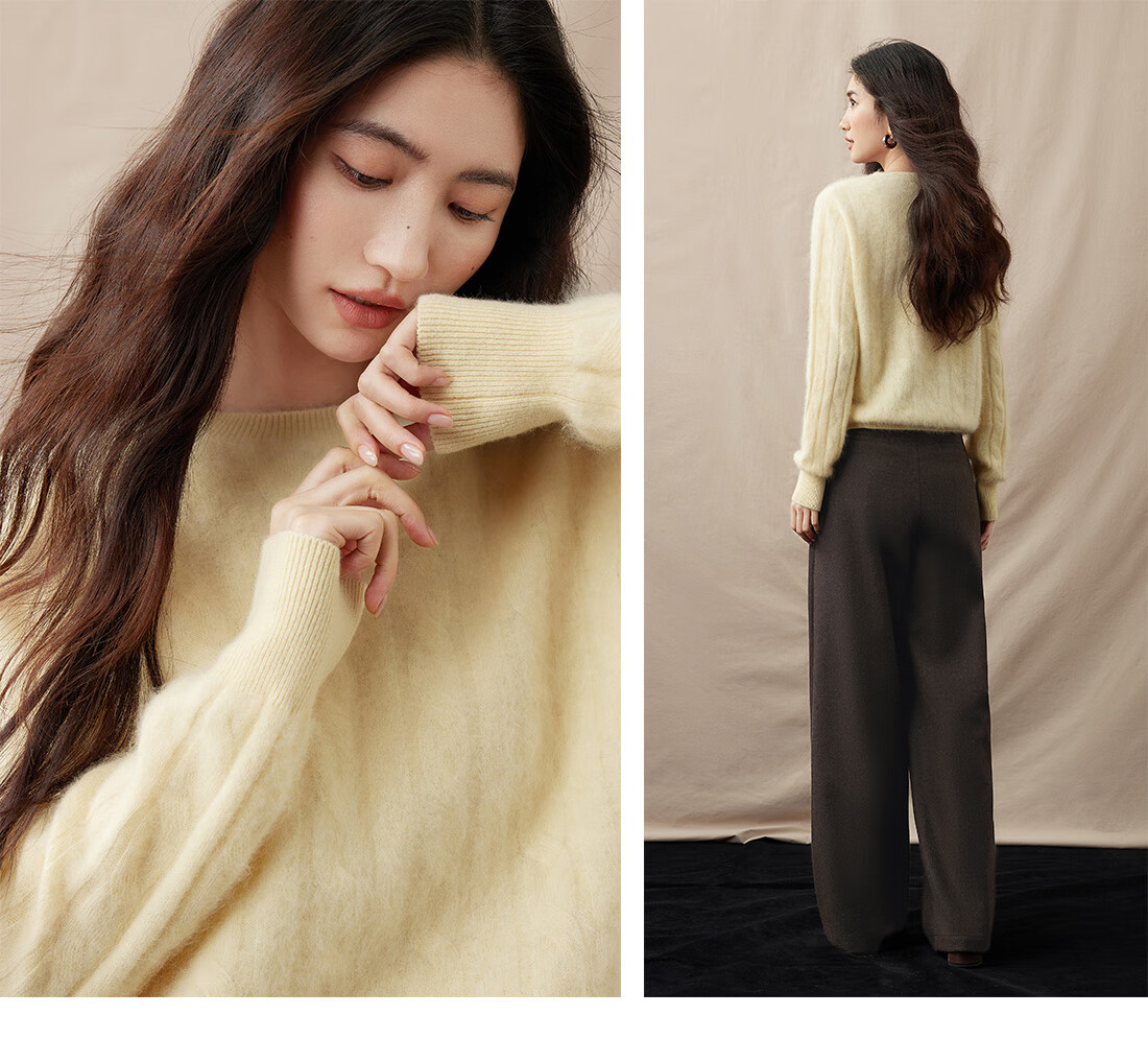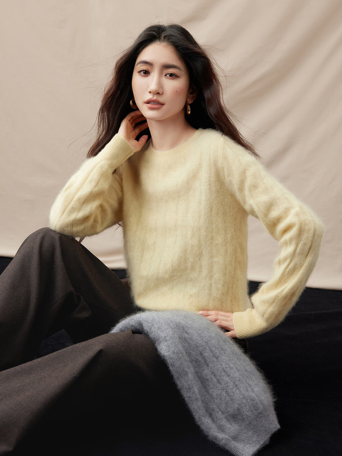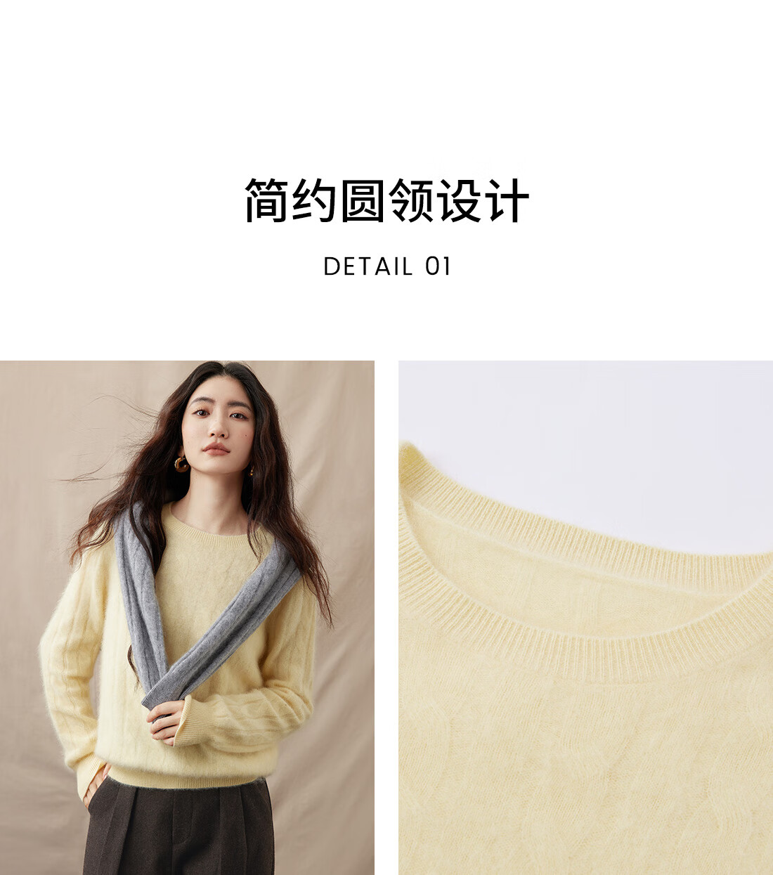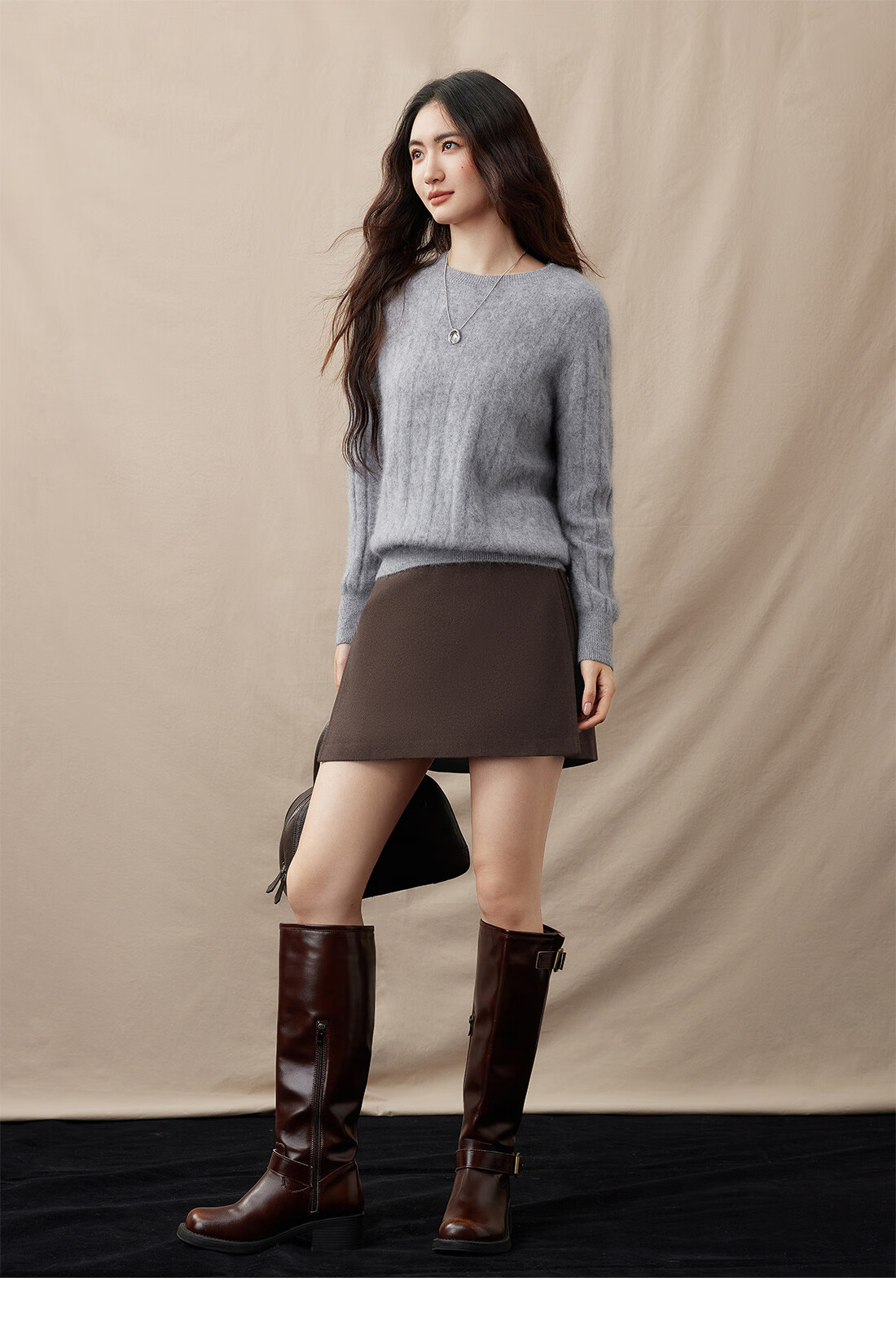L.WEST crew neck pullover women's 2025 winter new simple commuting 100% wool cable knit sweater gray S 85-100Jin Jin equals 0.5 kg