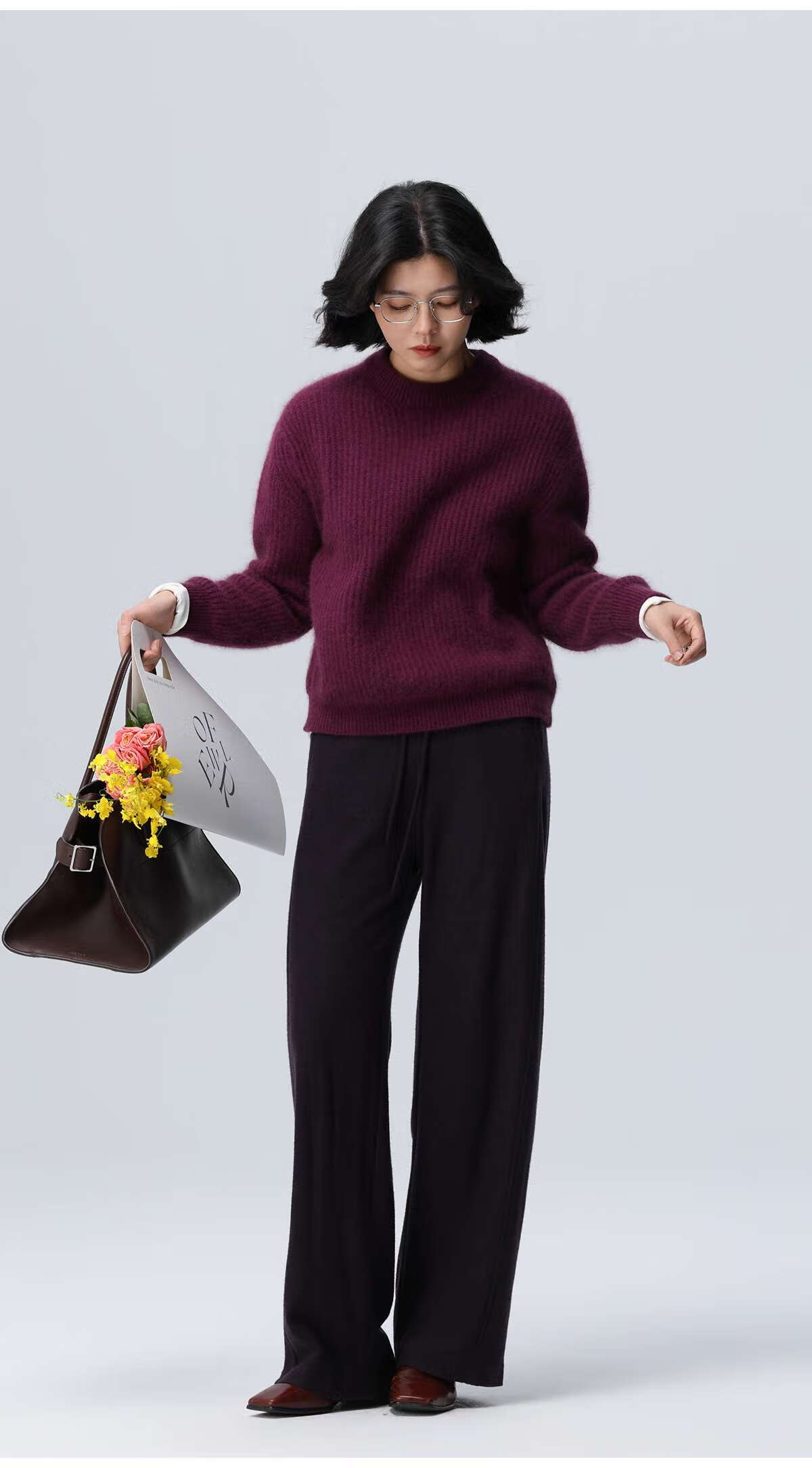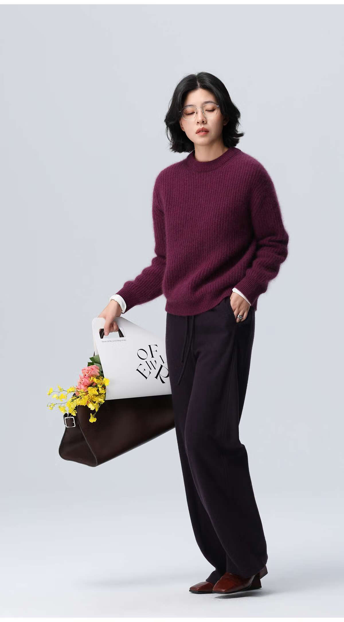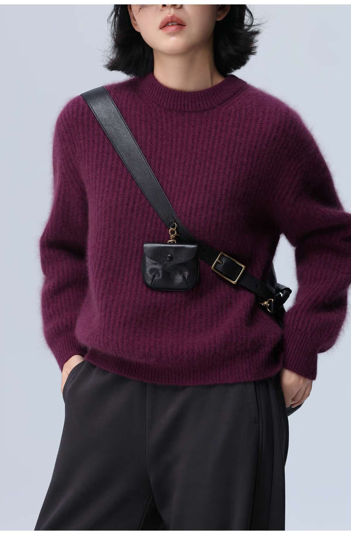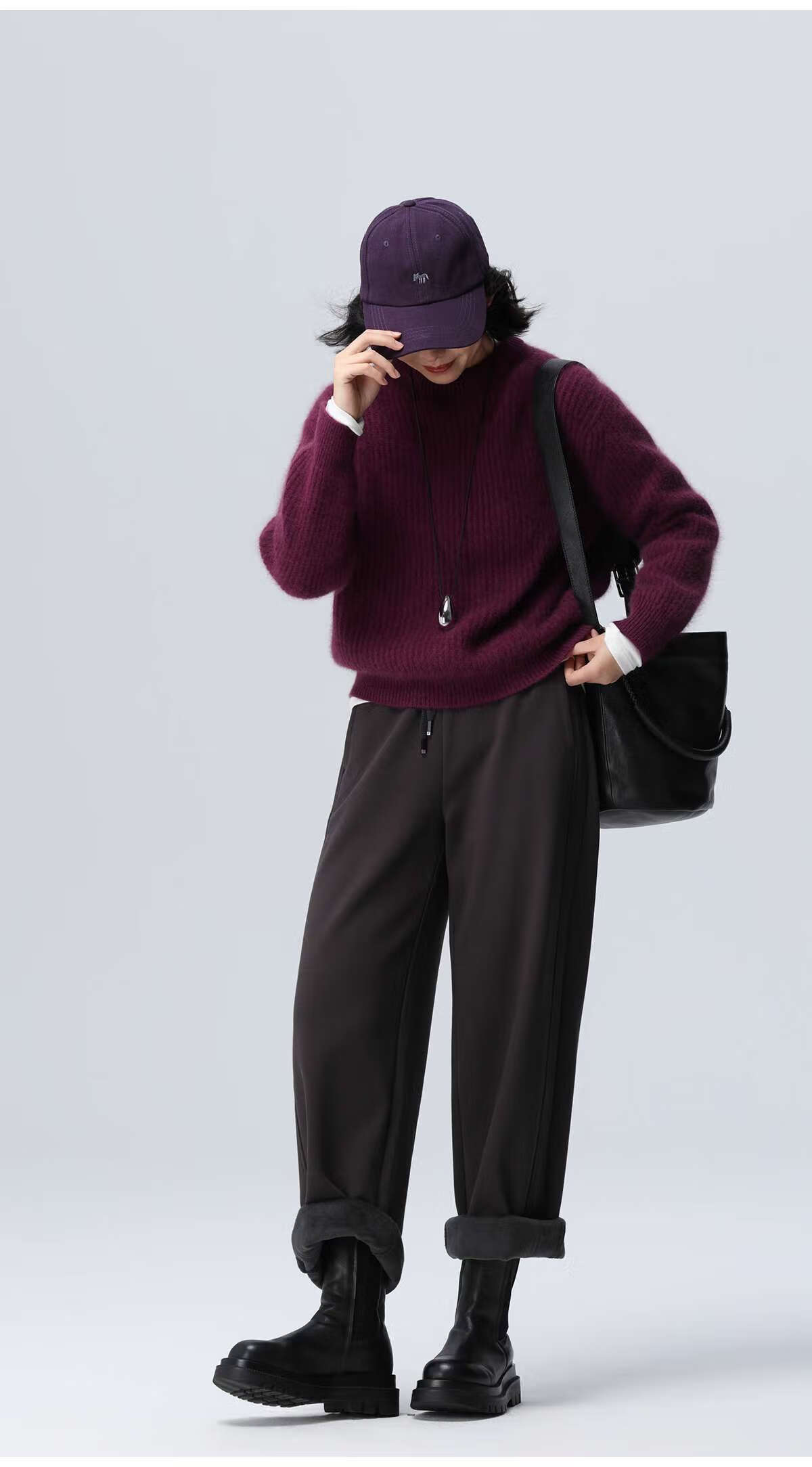 Xingshi WeTHEE high-end thickened raccoon velvet small round neck vertical stripe slightly loose pullover sweater for women, prune purple, one size