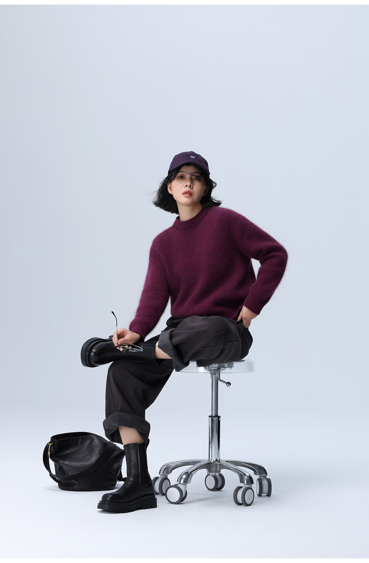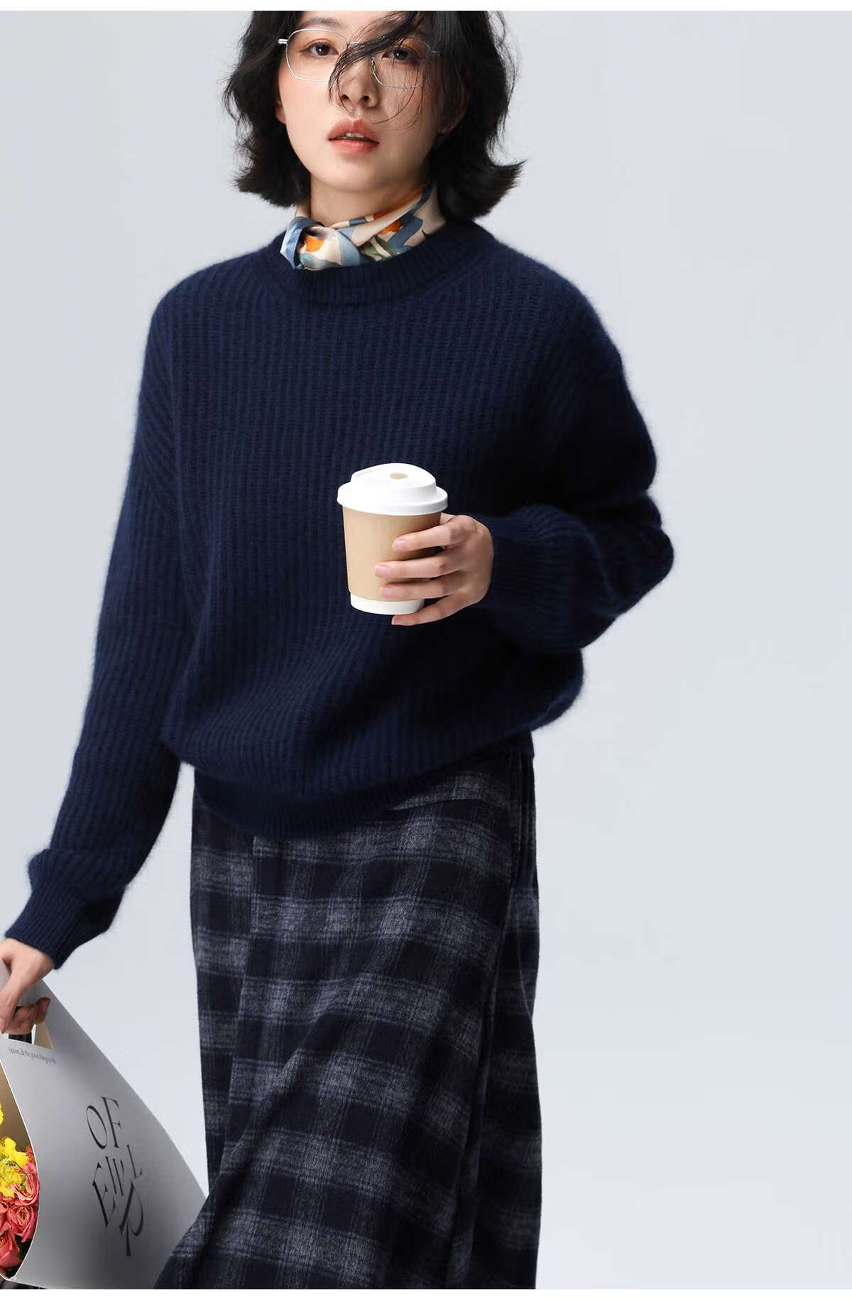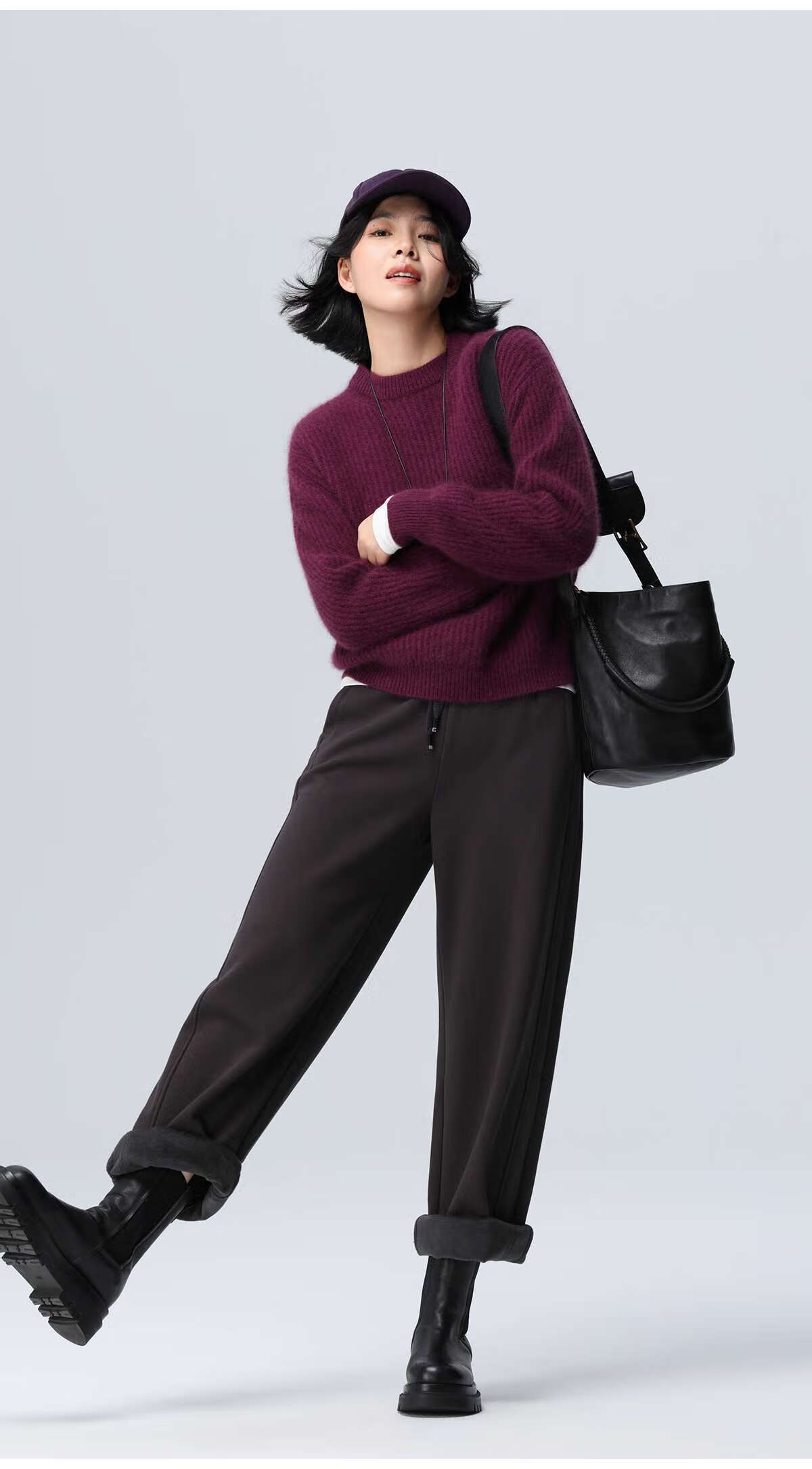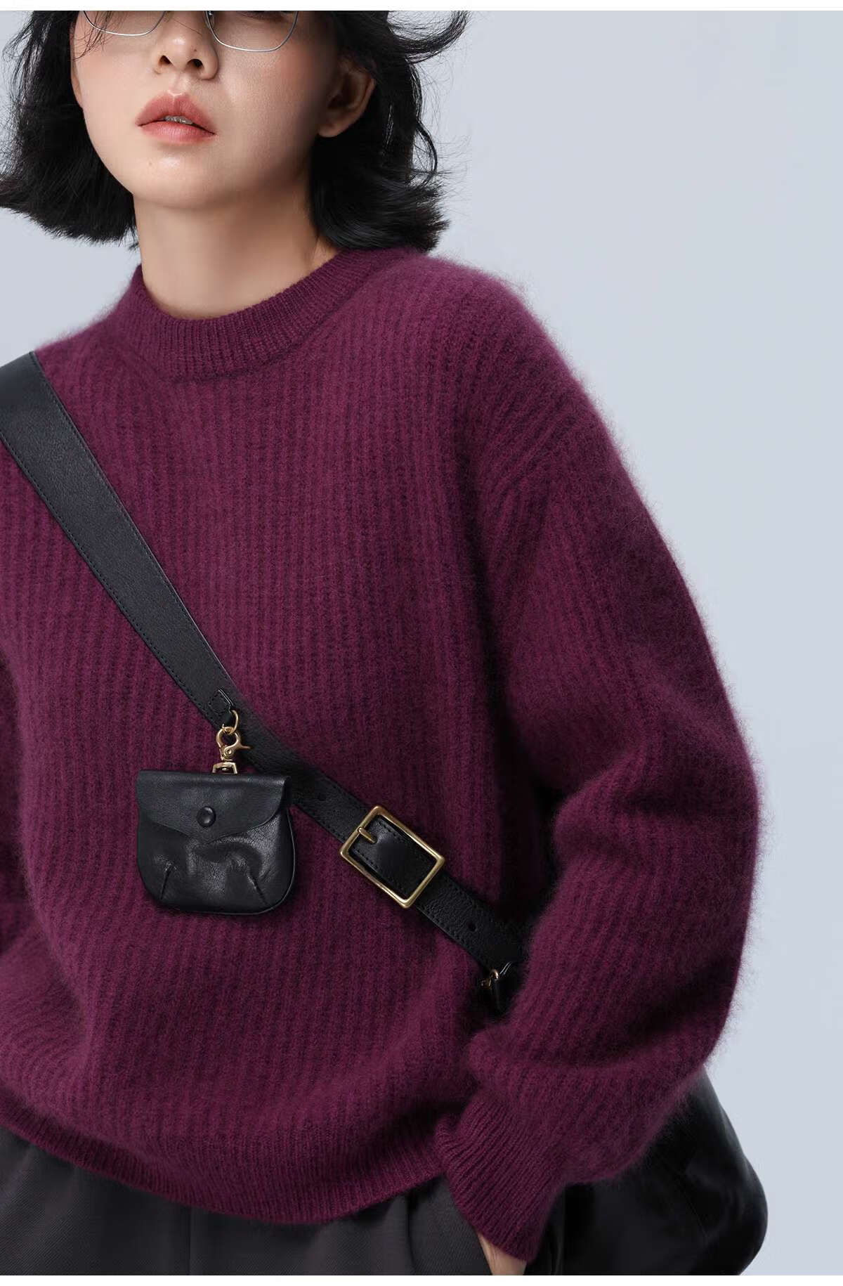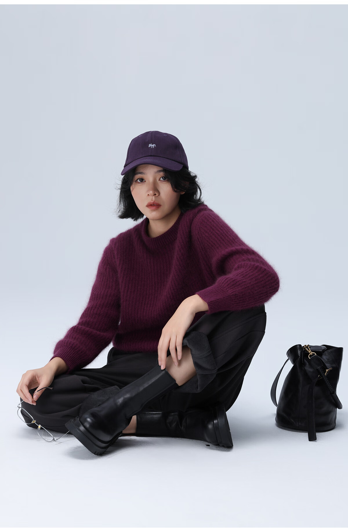 Xingshi WeTHEE high-end thickened raccoon velvet small round neck vertical stripe slightly loose pullover sweater for women, prune purple, one size