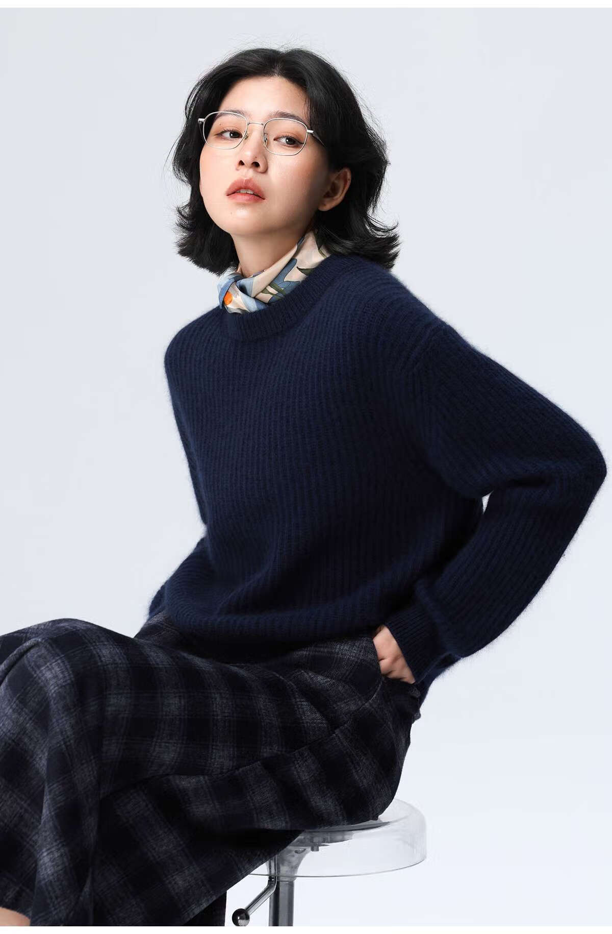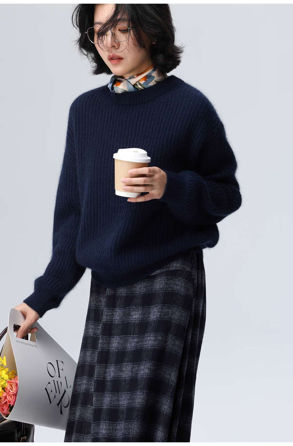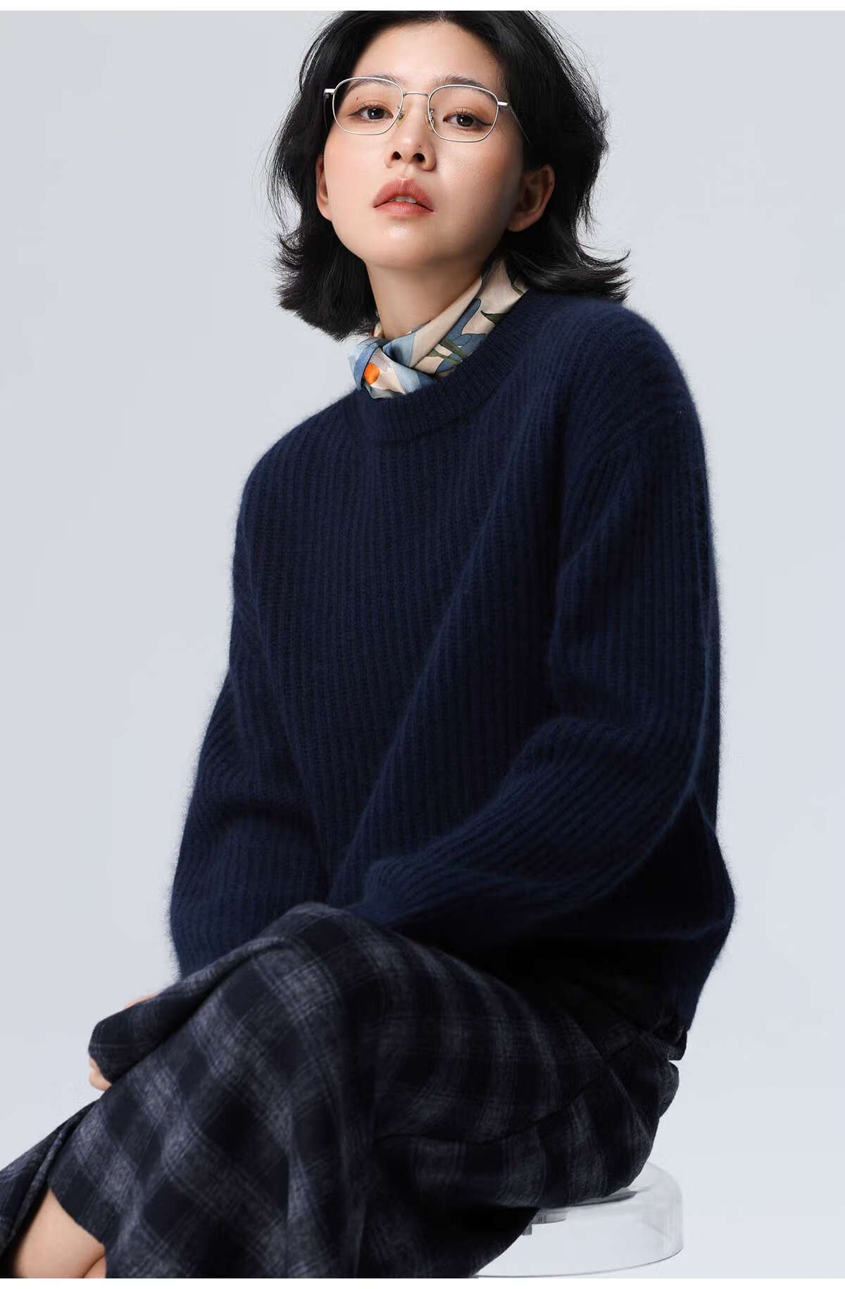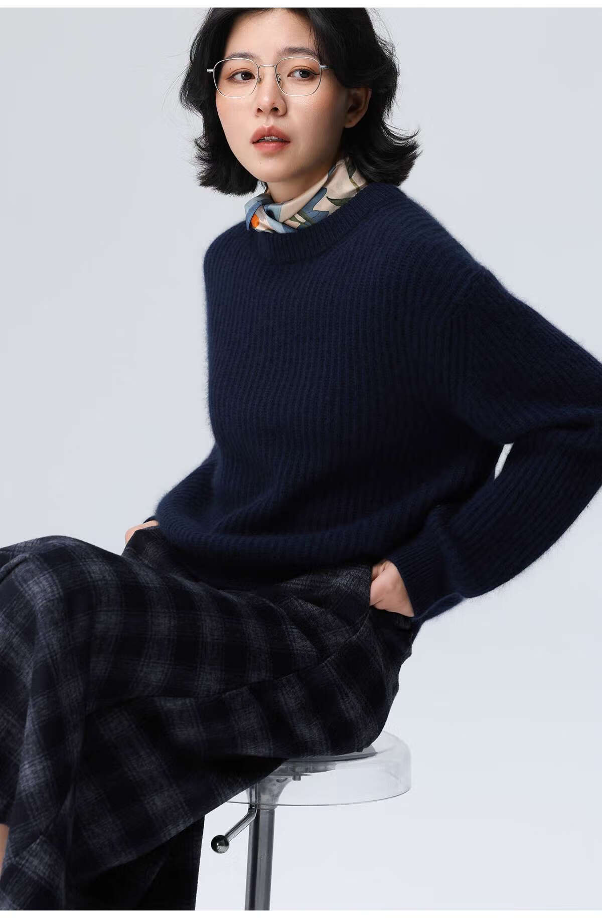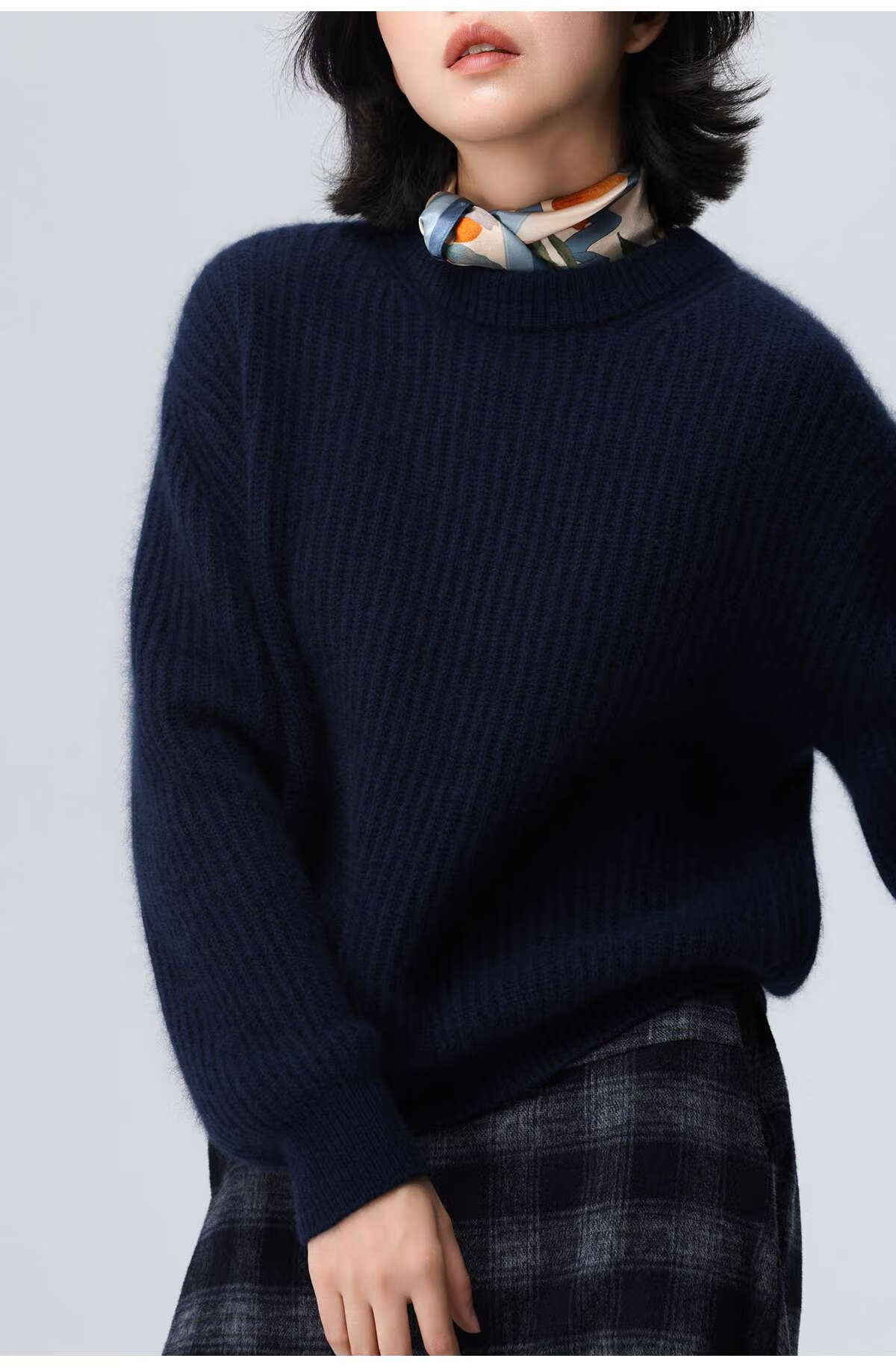 Xingshi WeTHEE high-end thickened raccoon velvet small round neck vertical stripe slightly loose pullover sweater for women, prune purple, one size