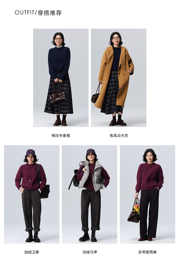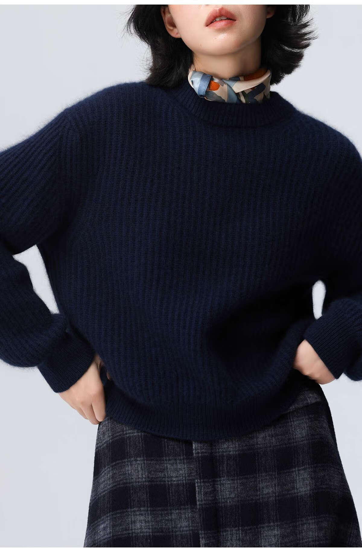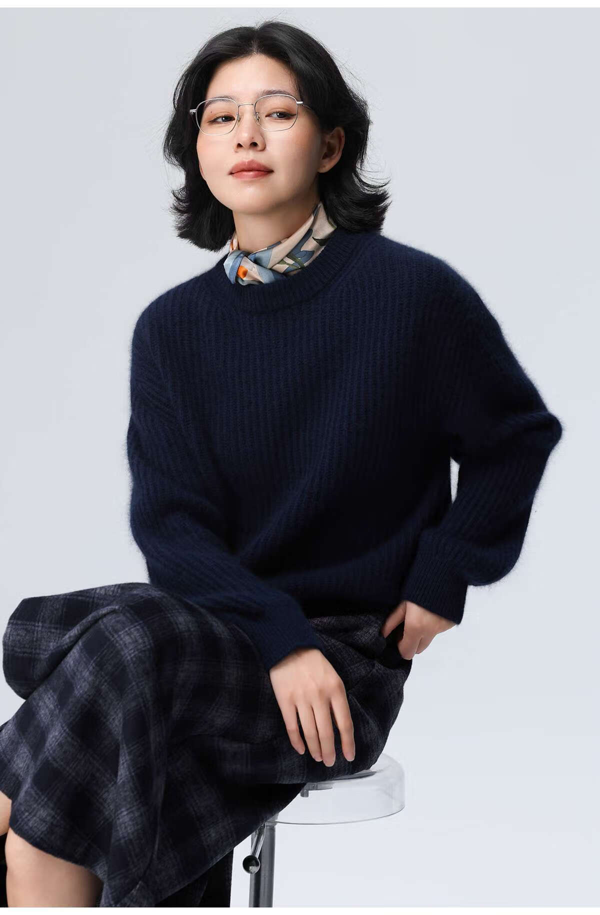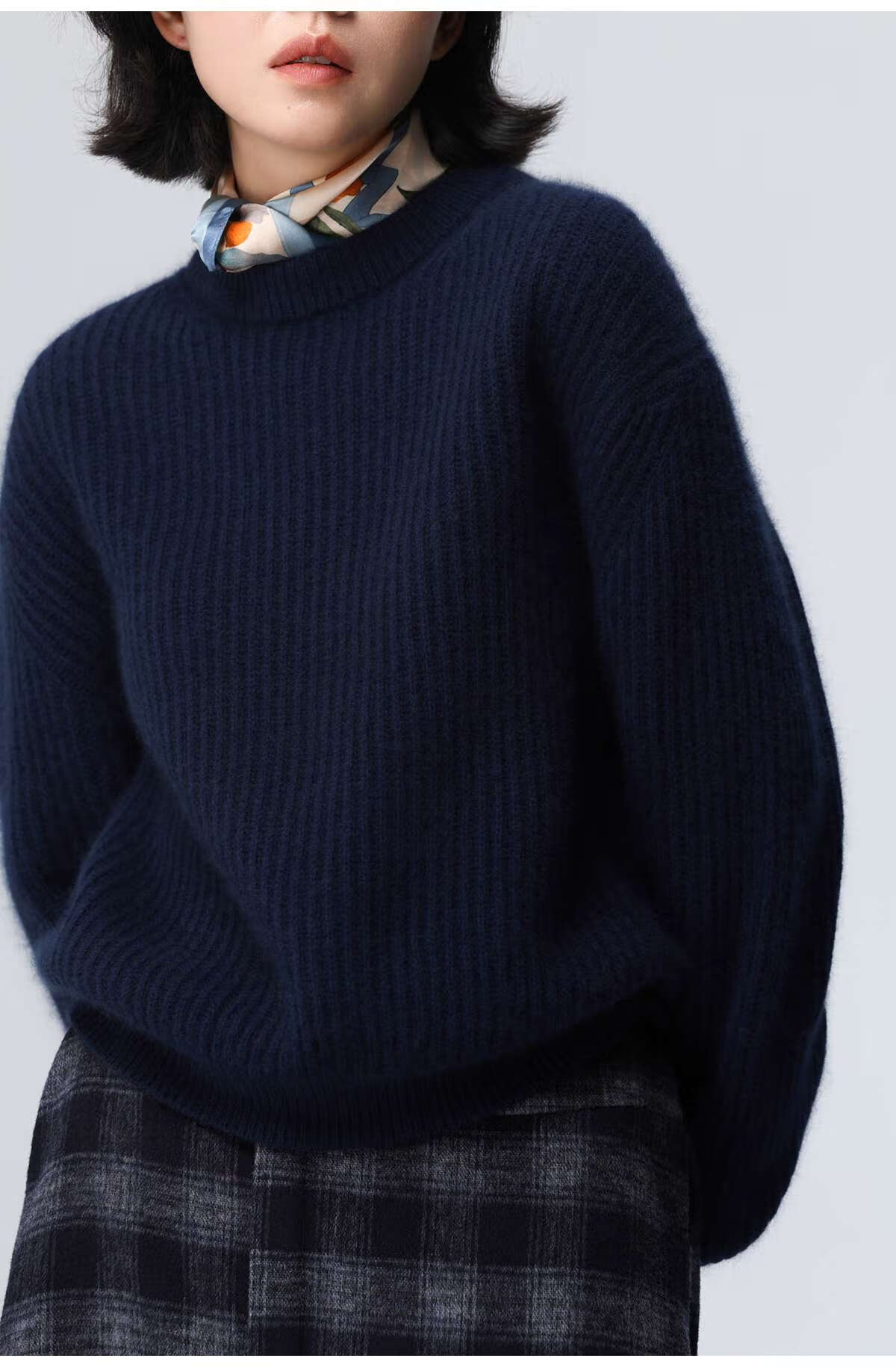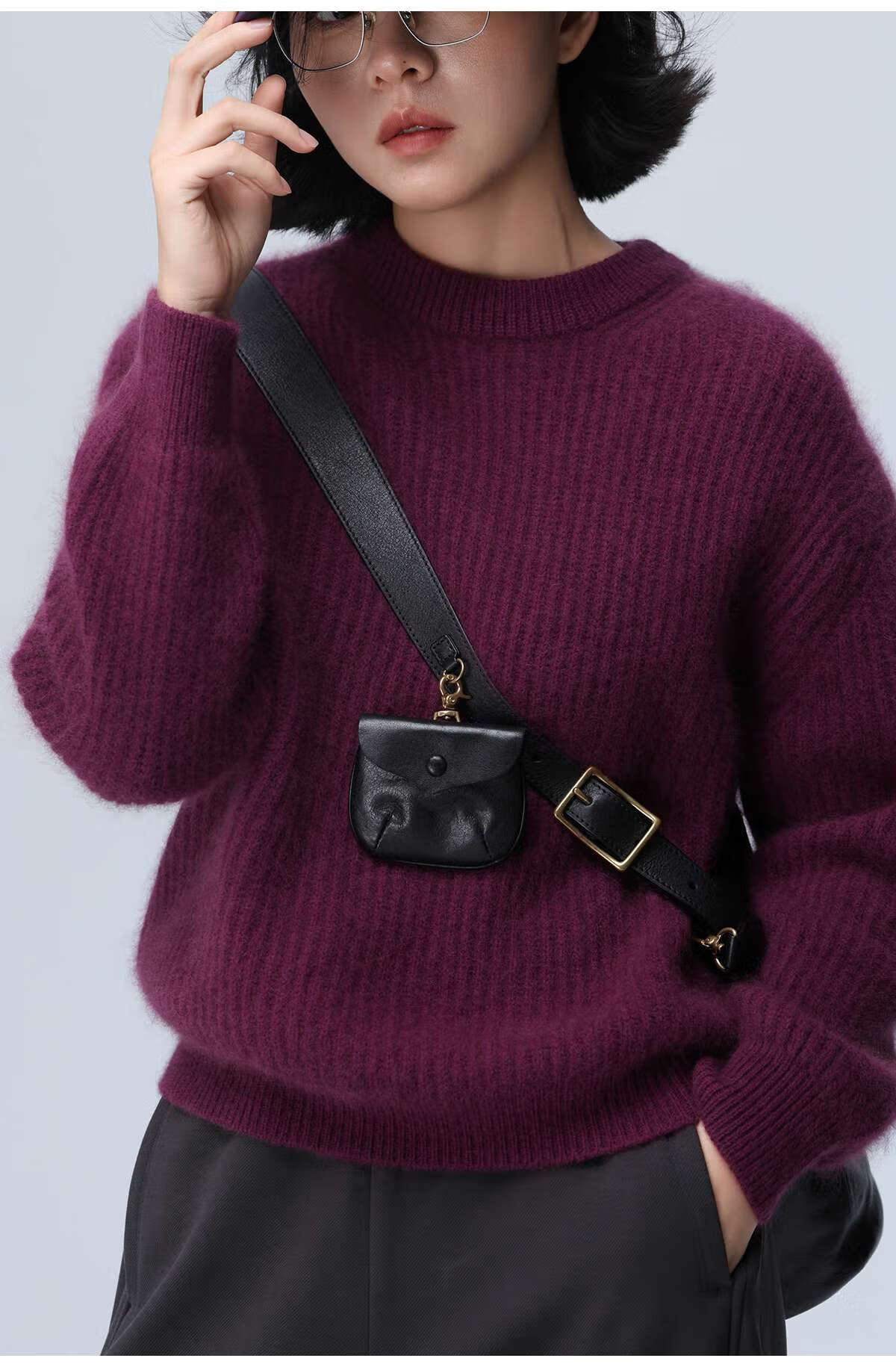 Xingshi WeTHEE high-end thickened raccoon velvet small round neck vertical stripe slightly loose pullover sweater for women, prune purple, one size