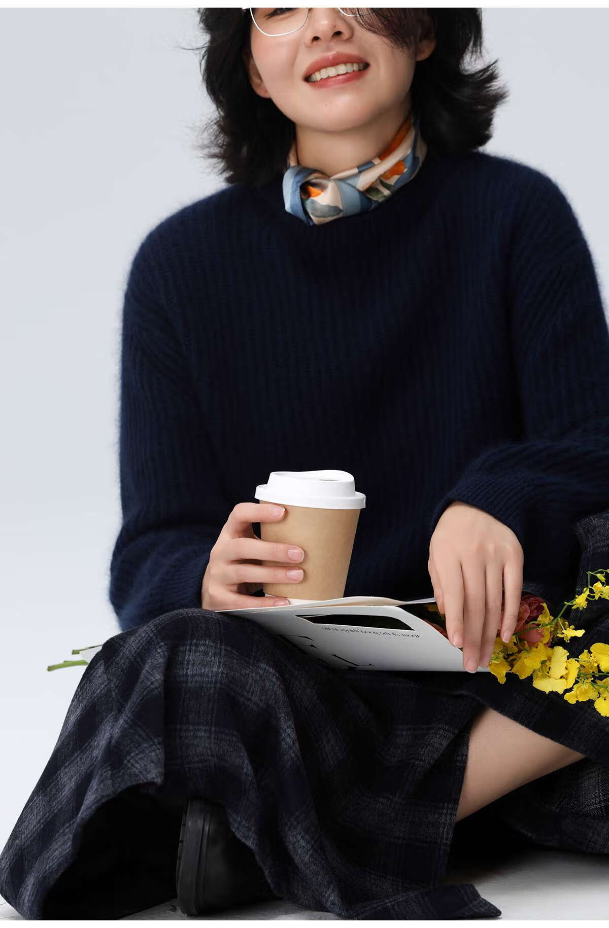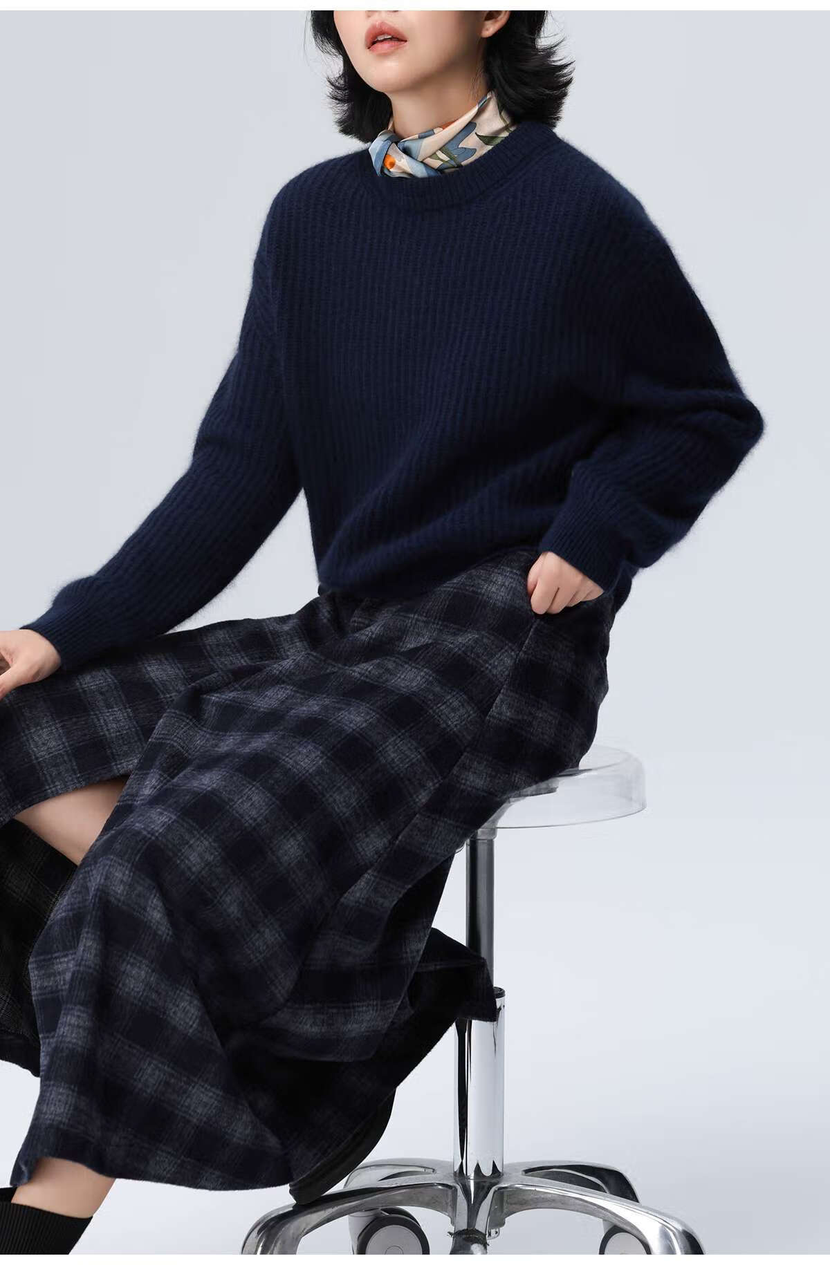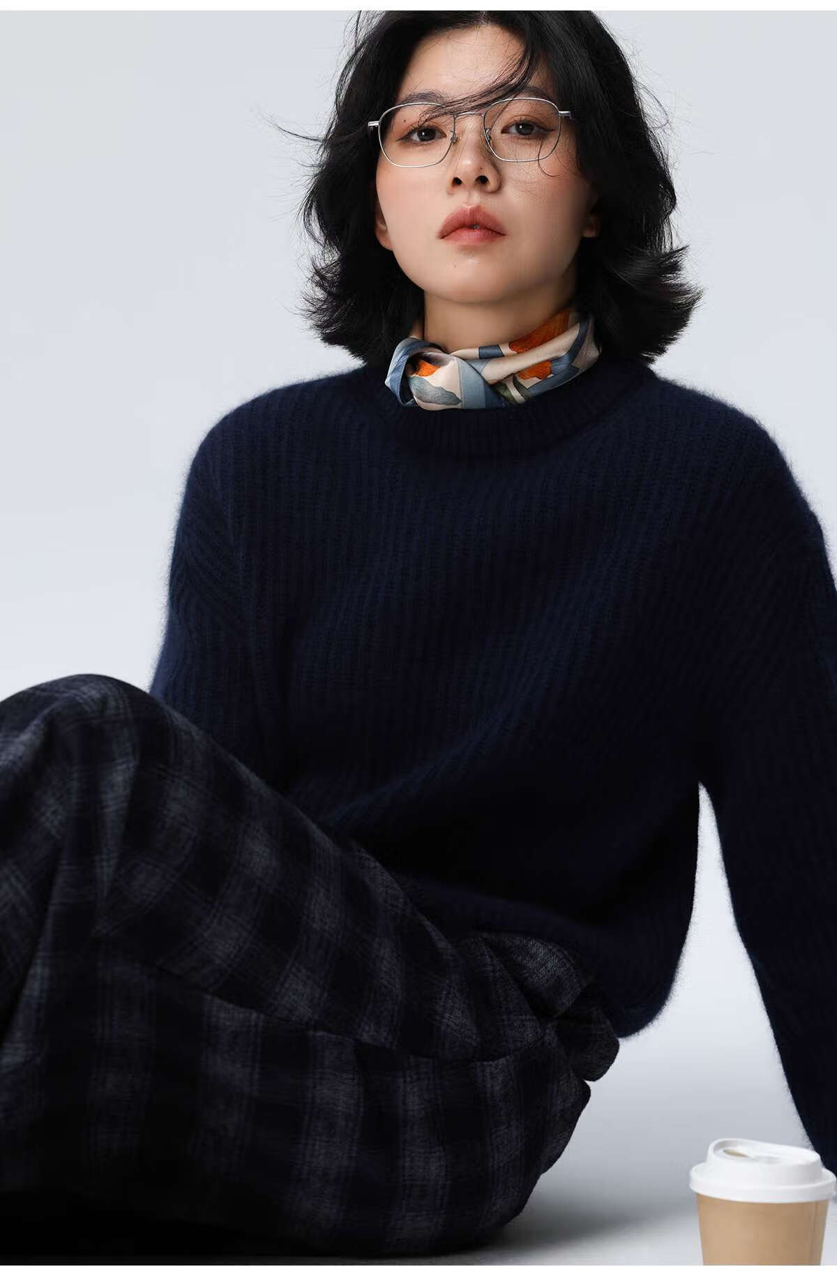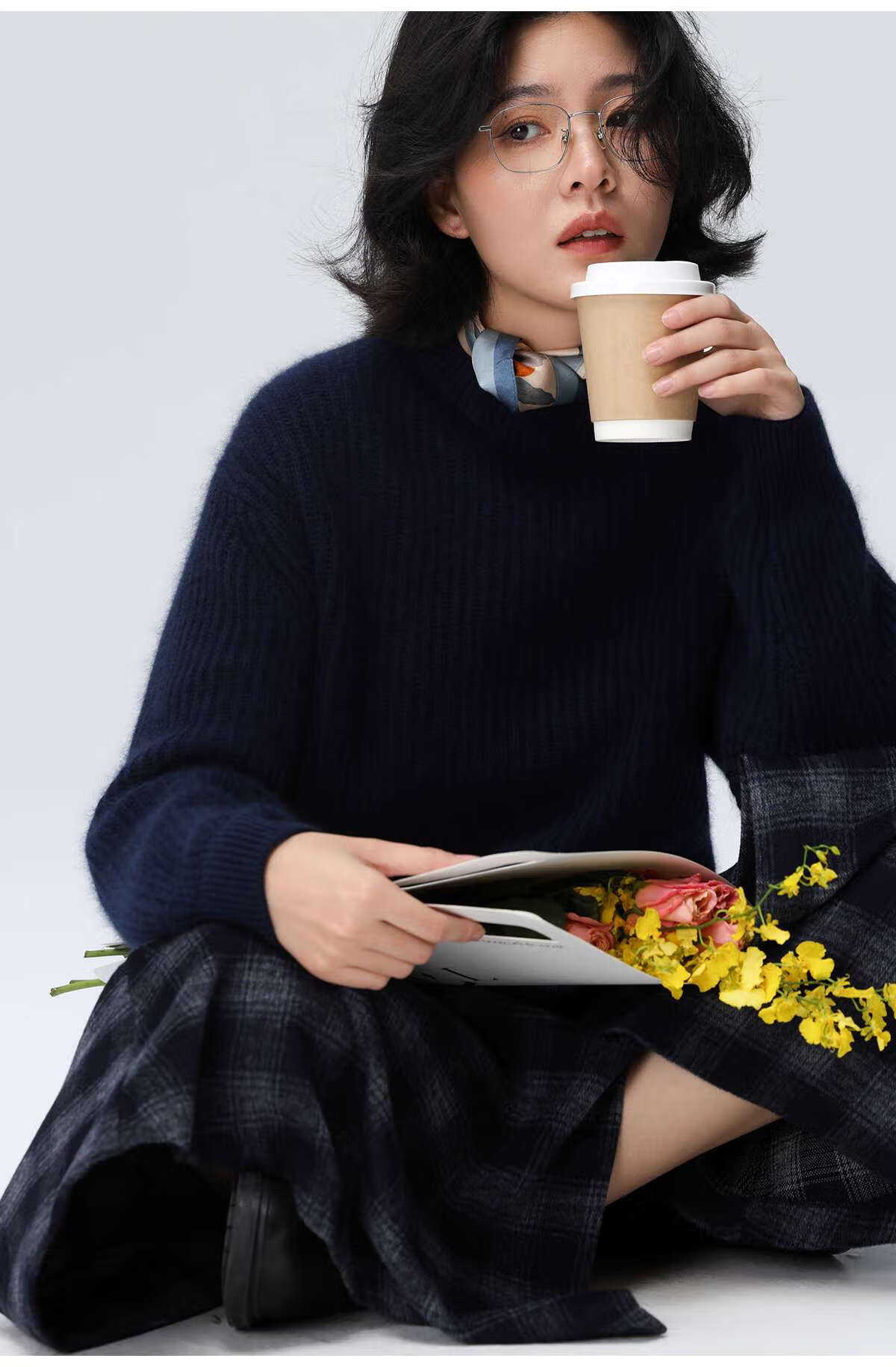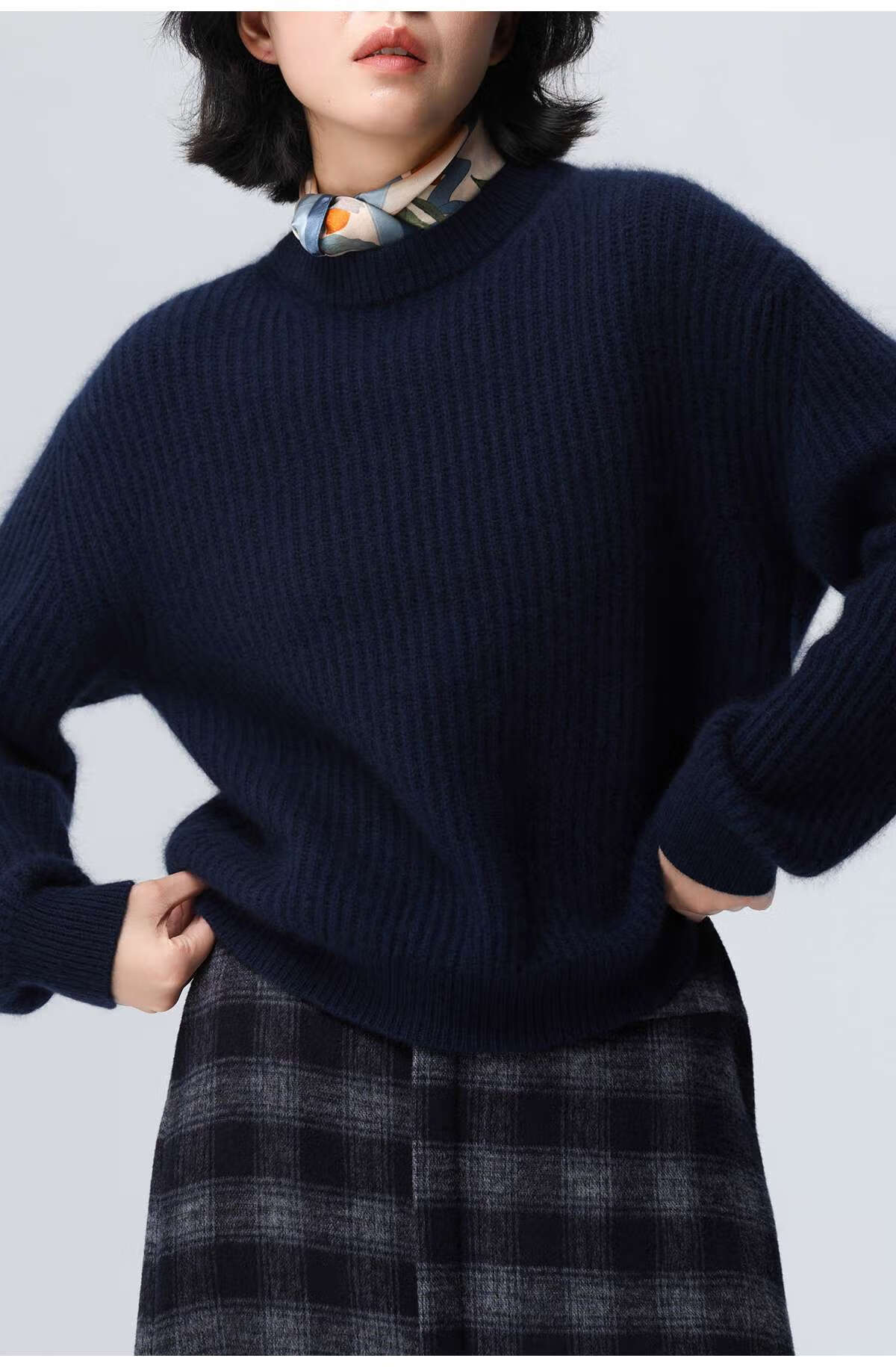 Xingshi WeTHEE high-end thickened raccoon velvet small round neck vertical stripe slightly loose pullover sweater for women, prune purple, one size