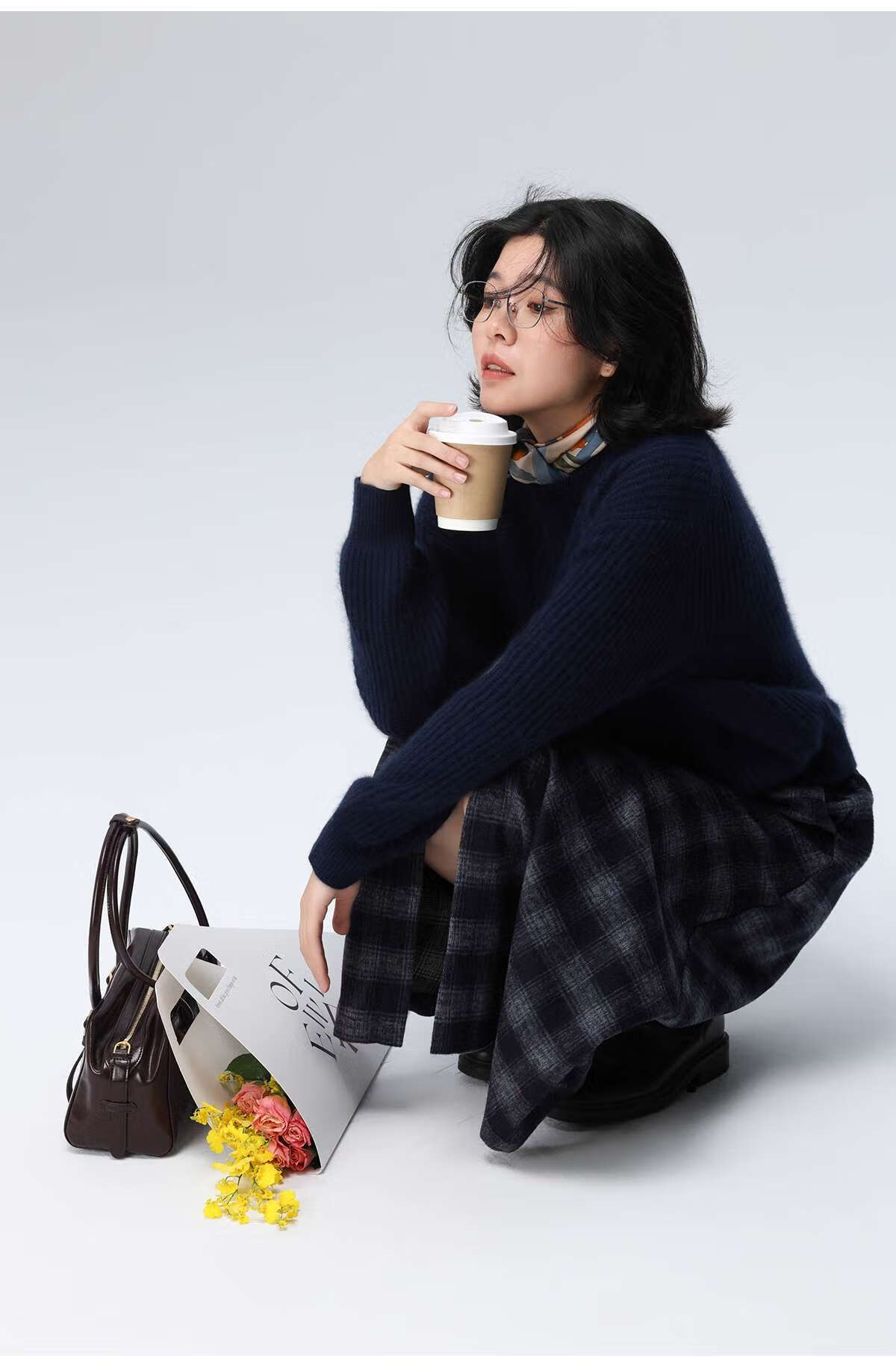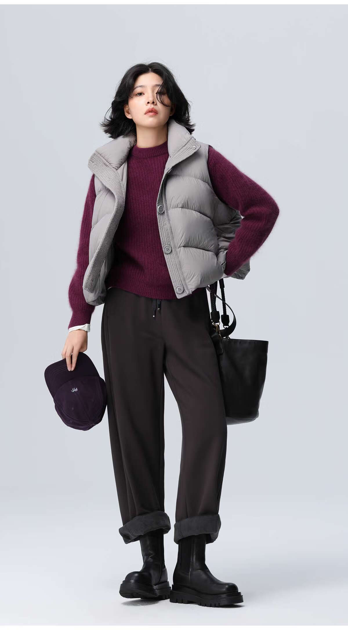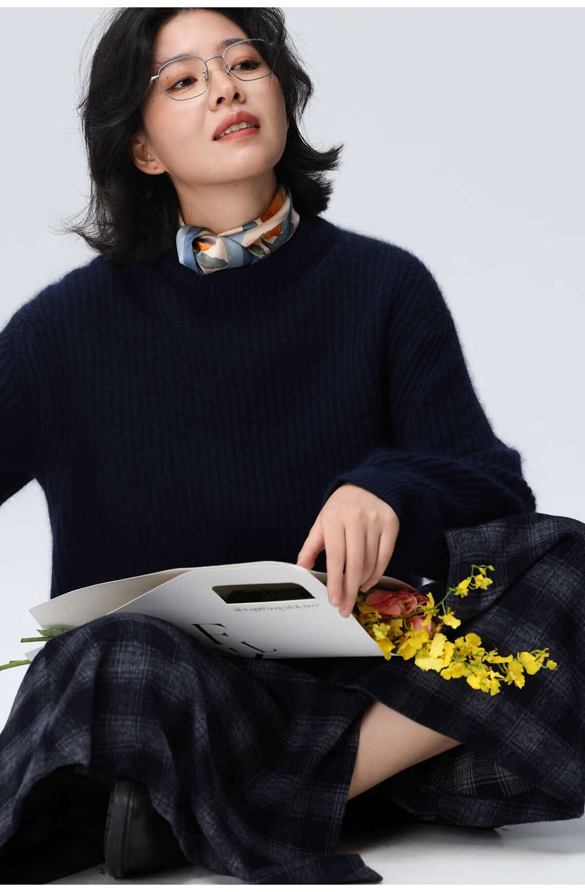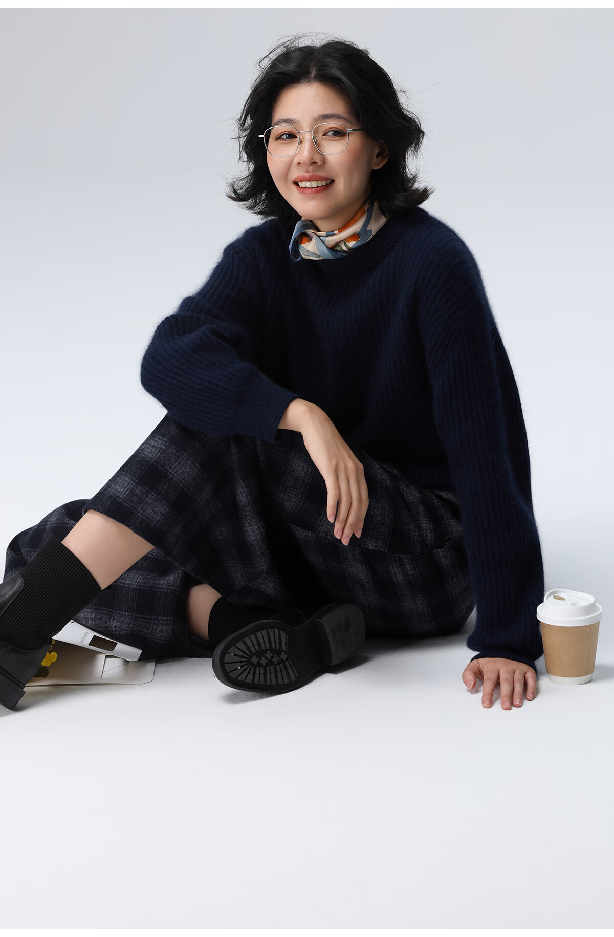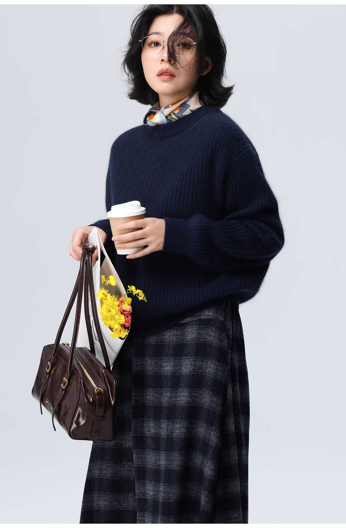 Xingshi WeTHEE high-end thickened raccoon velvet small round neck vertical stripe slightly loose pullover sweater for women, prune purple, one size