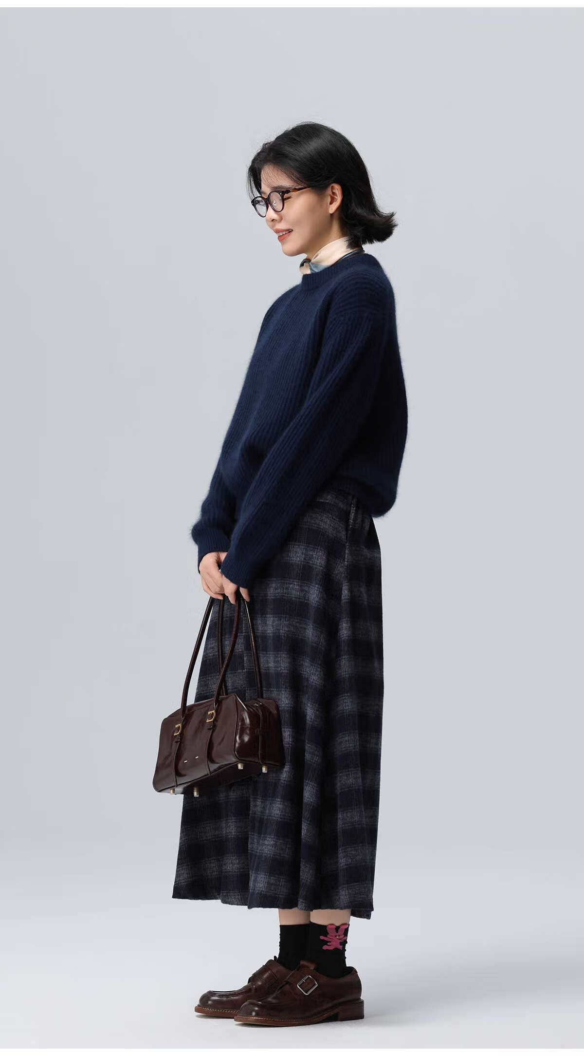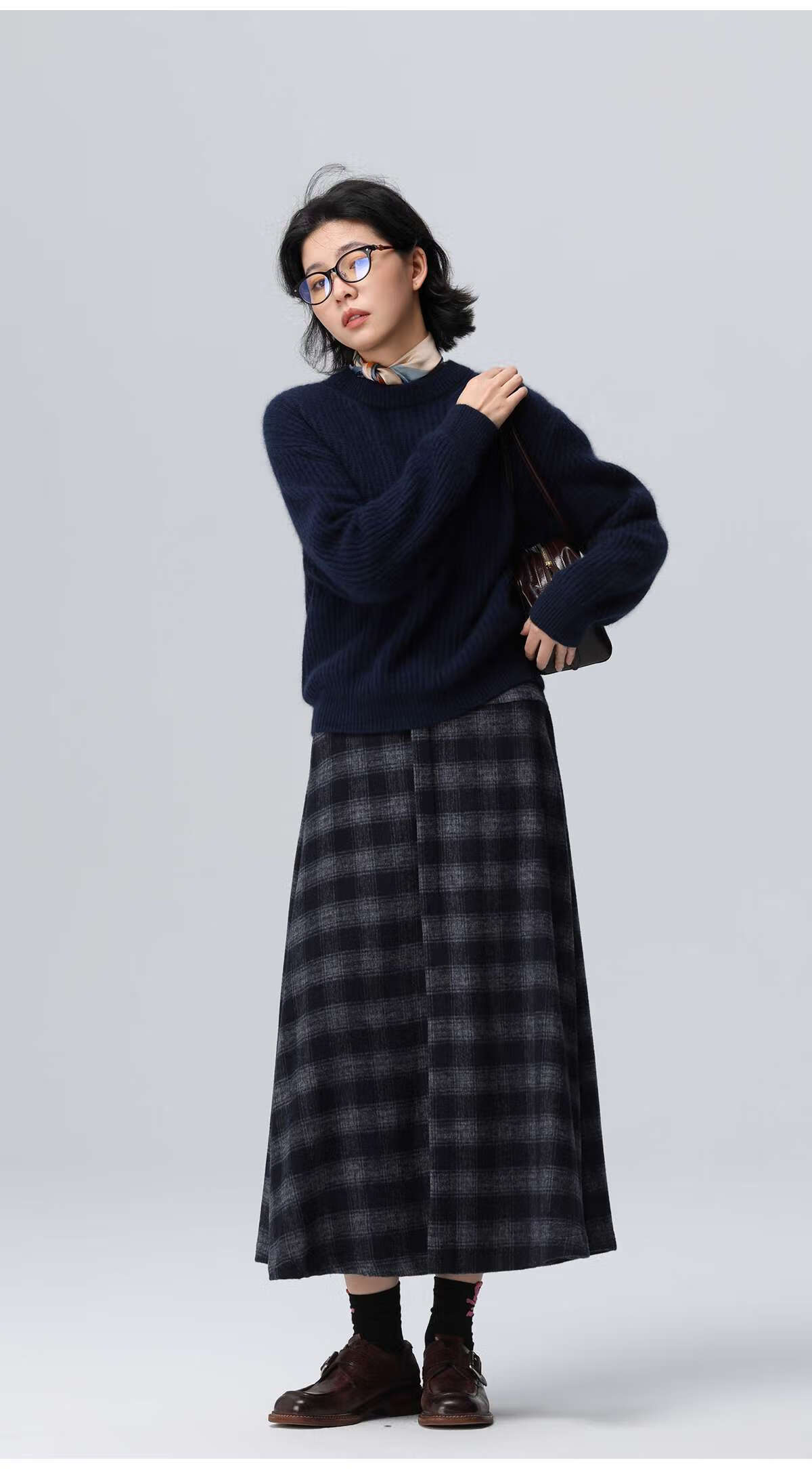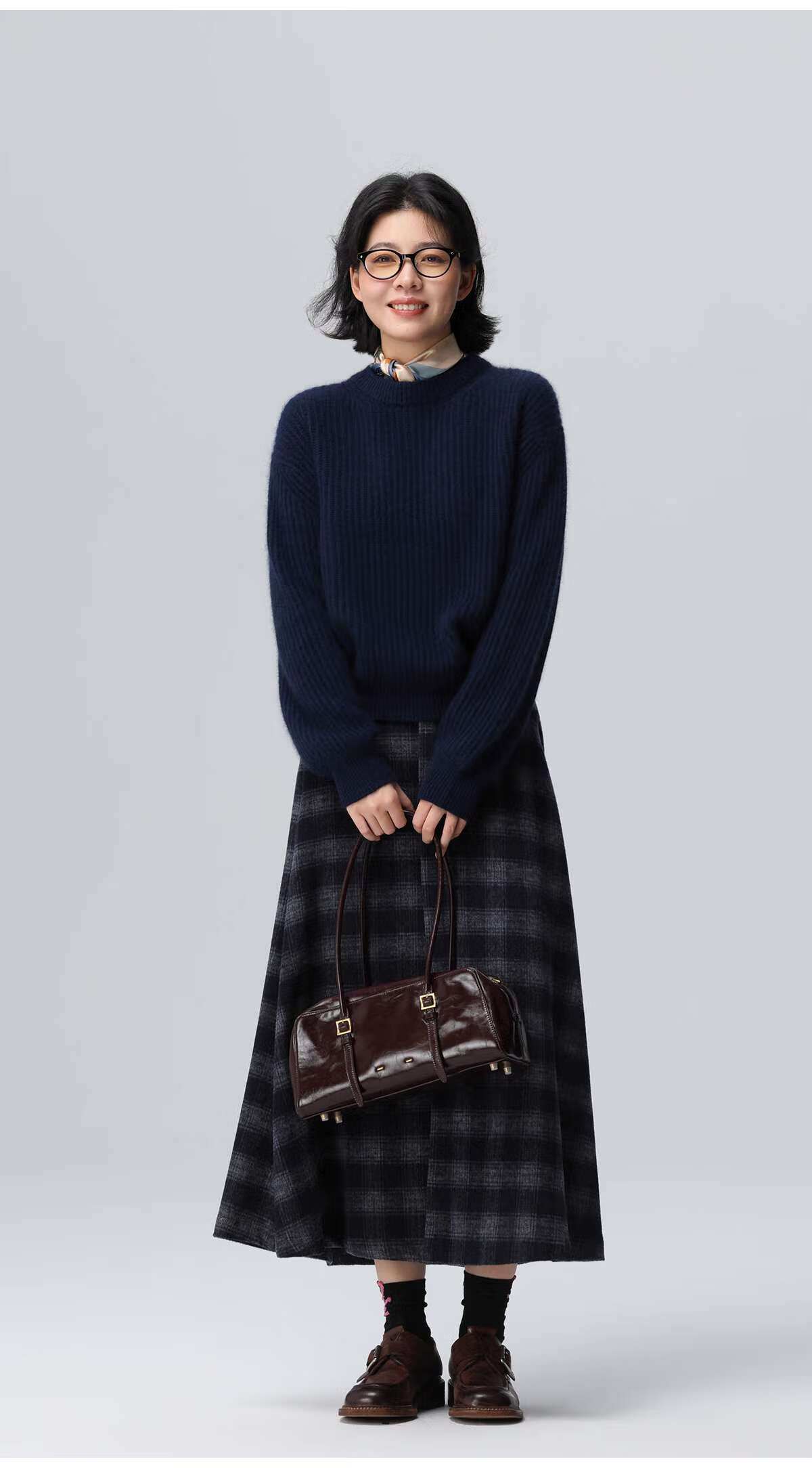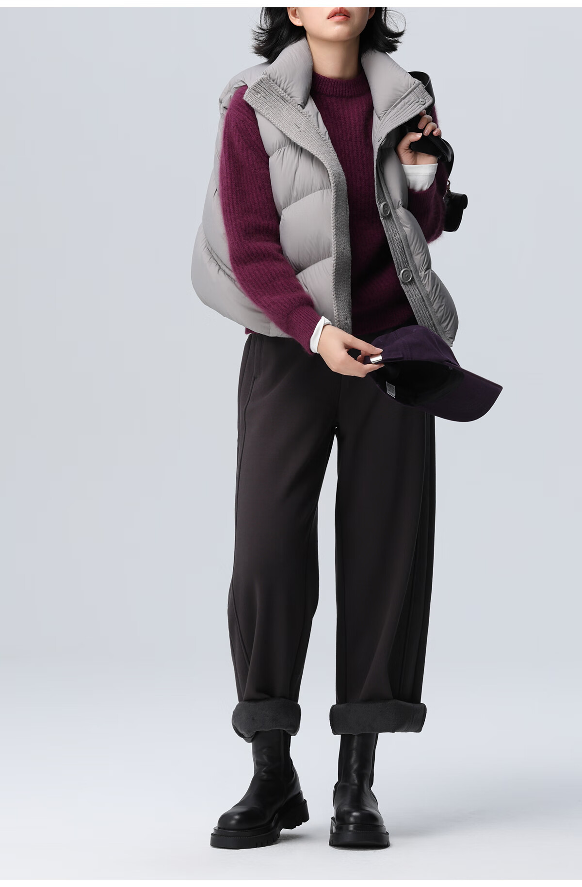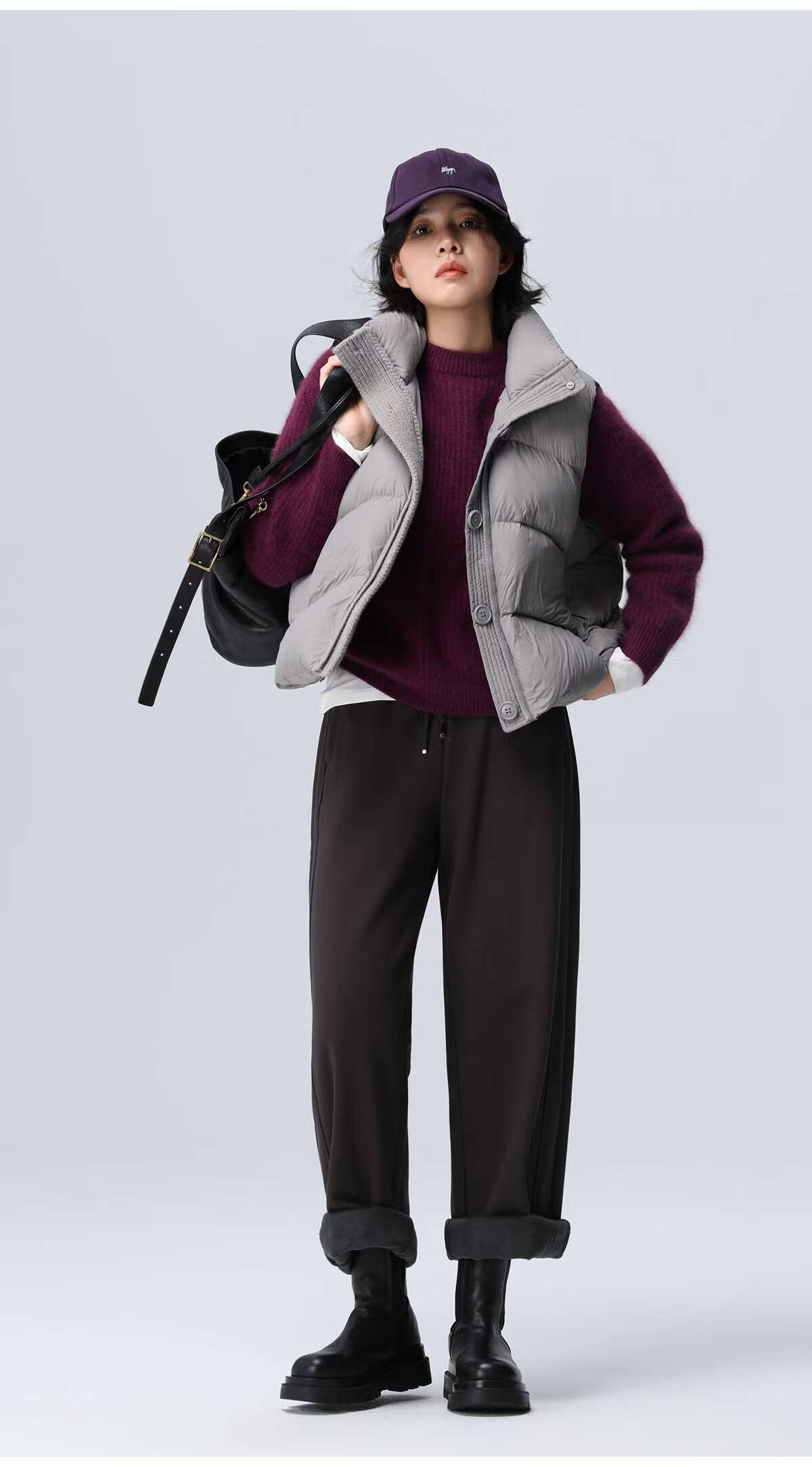 Xingshi WeTHEE high-end thickened raccoon velvet small round neck vertical stripe slightly loose pullover sweater for women, prune purple, one size