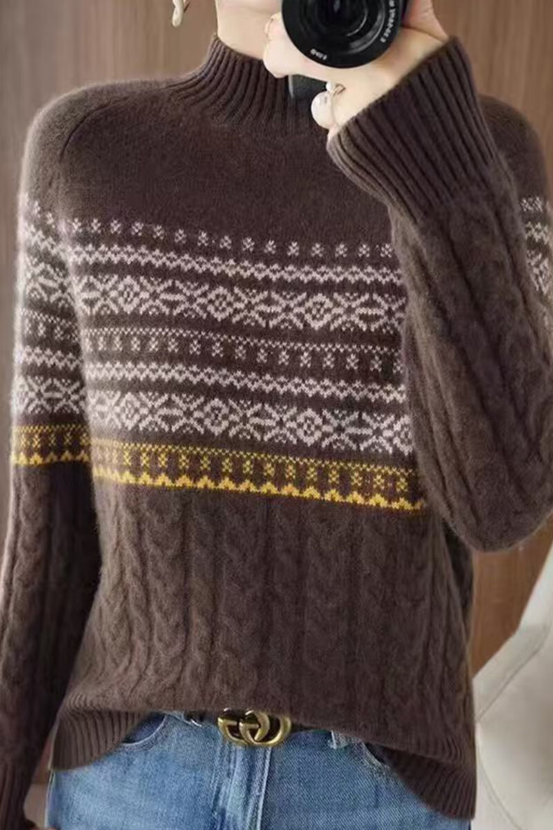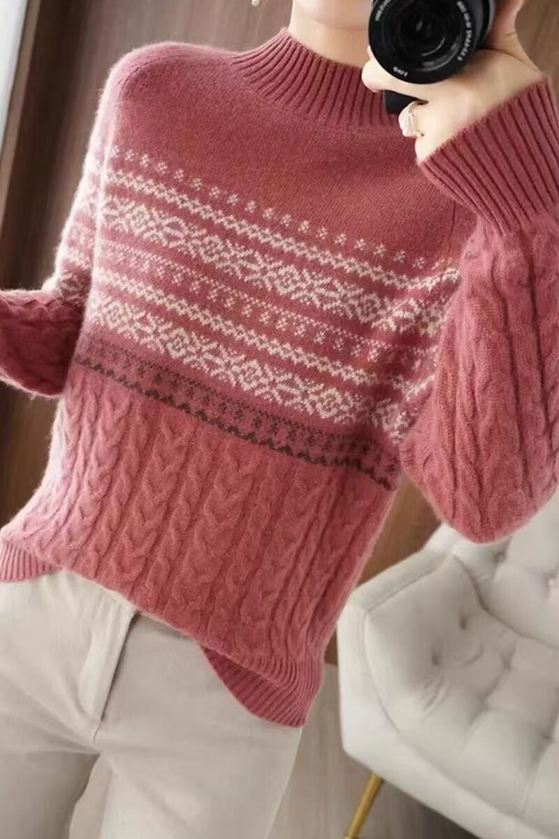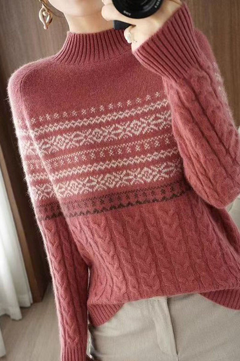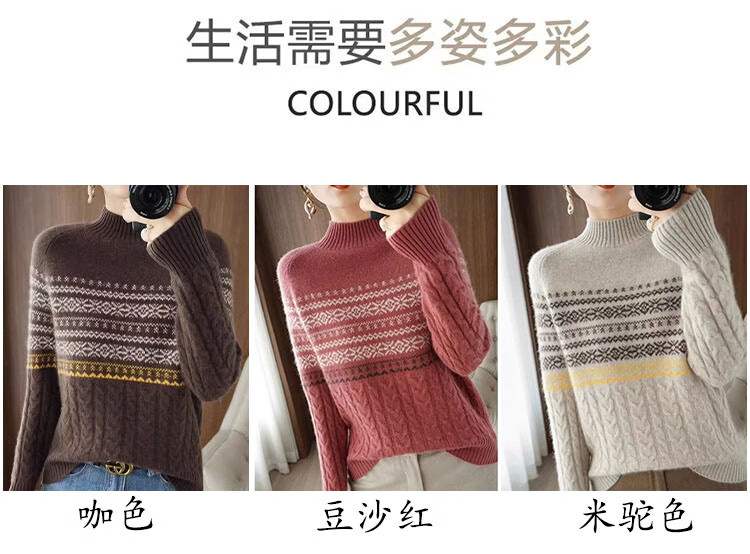 La Chapelle French Fair Isle half-high collar thickened sweater for women retro jacquard sweater 2025 autumn and winter new inner wear warm bean paste red L recommended 125-155 Jin Jin equals 0.5 kg