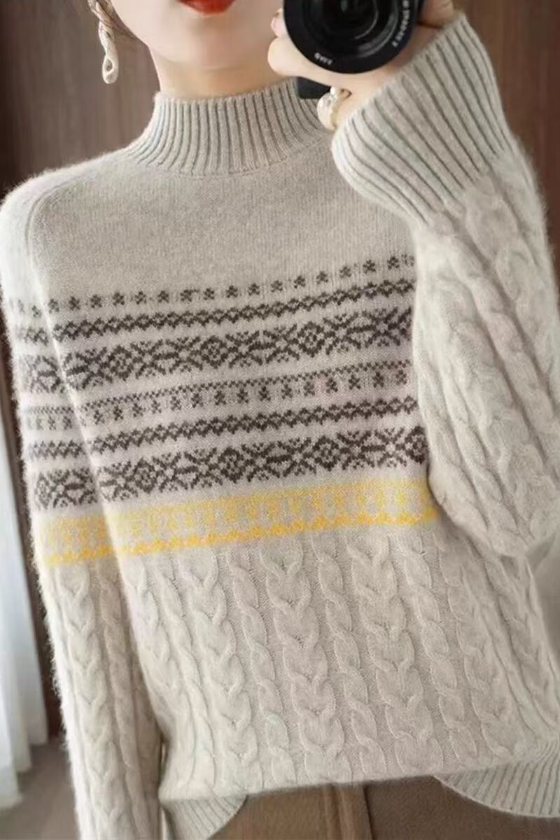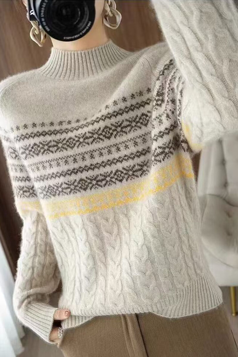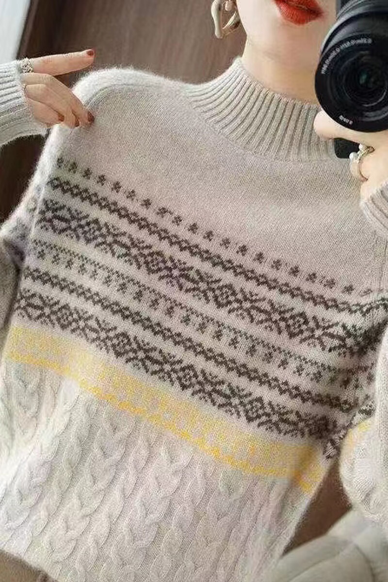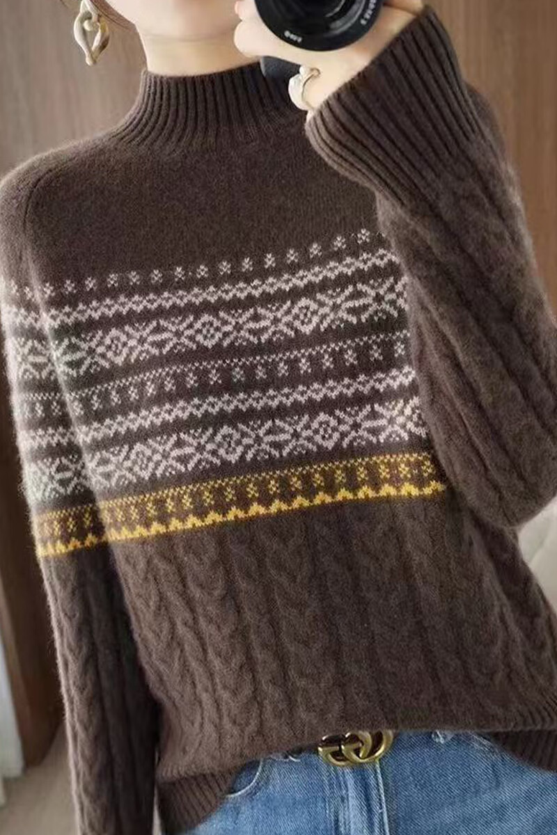 La Chapelle French Fair Isle half-high collar thickened sweater for women retro jacquard sweater 2025 autumn and winter new inner wear warm bean paste red L recommended 125-155 Jin Jin equals 0.5 kg