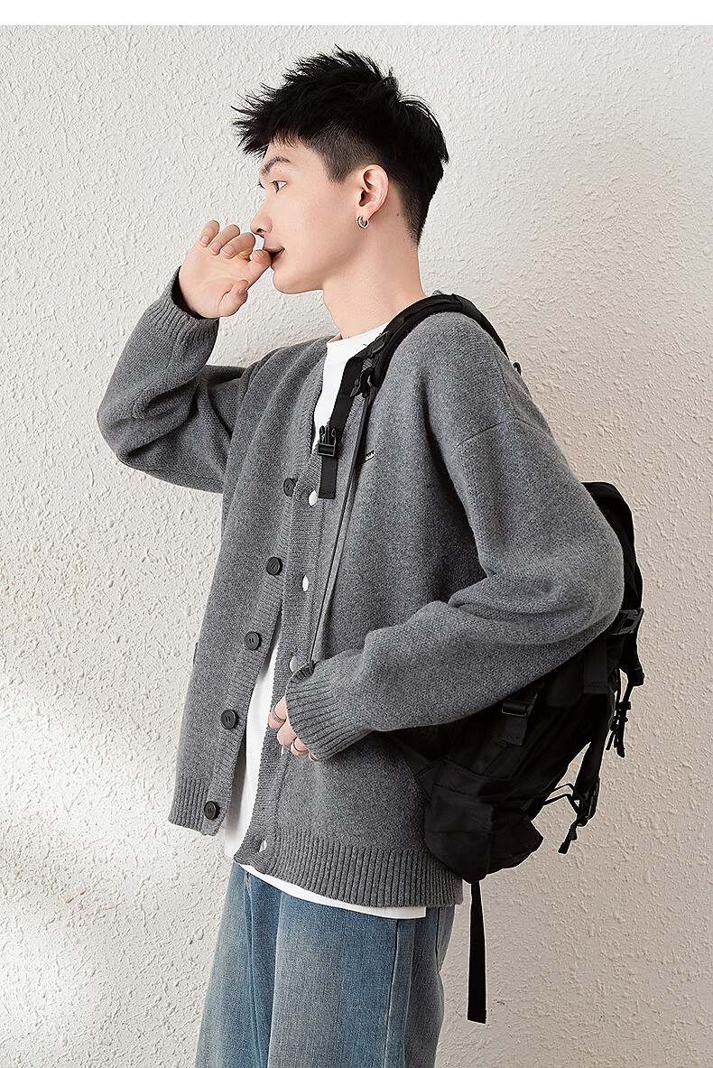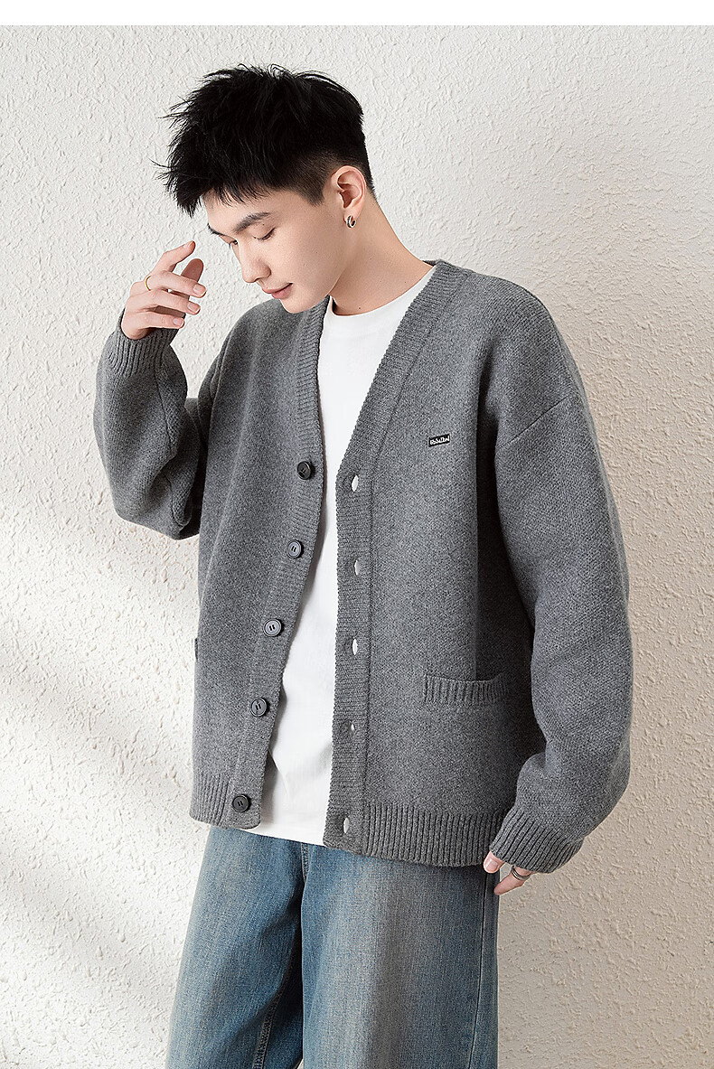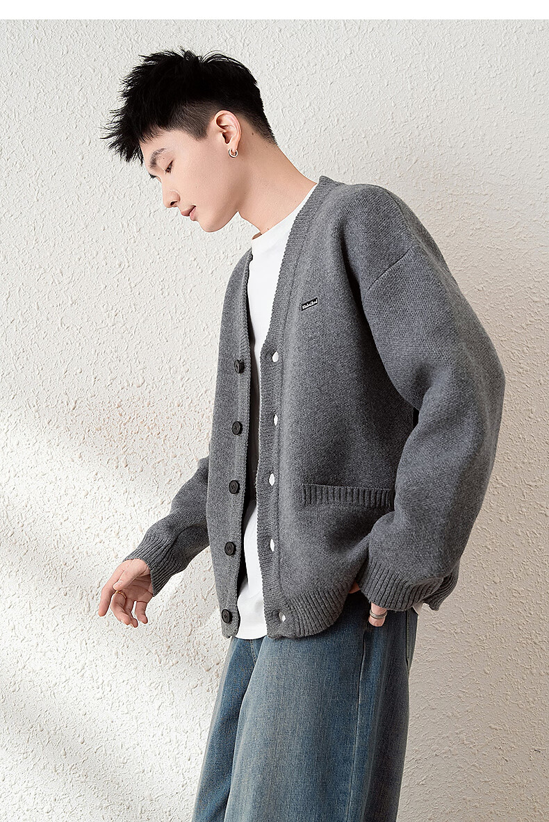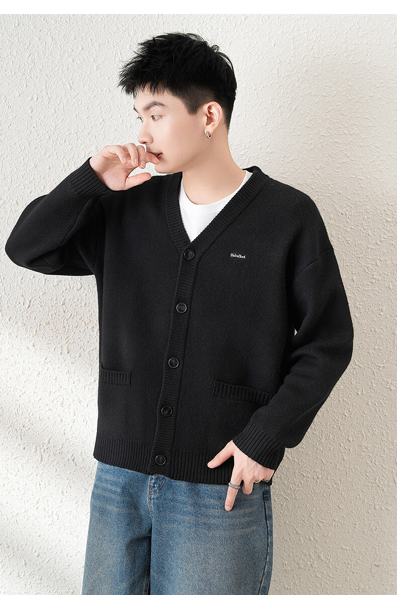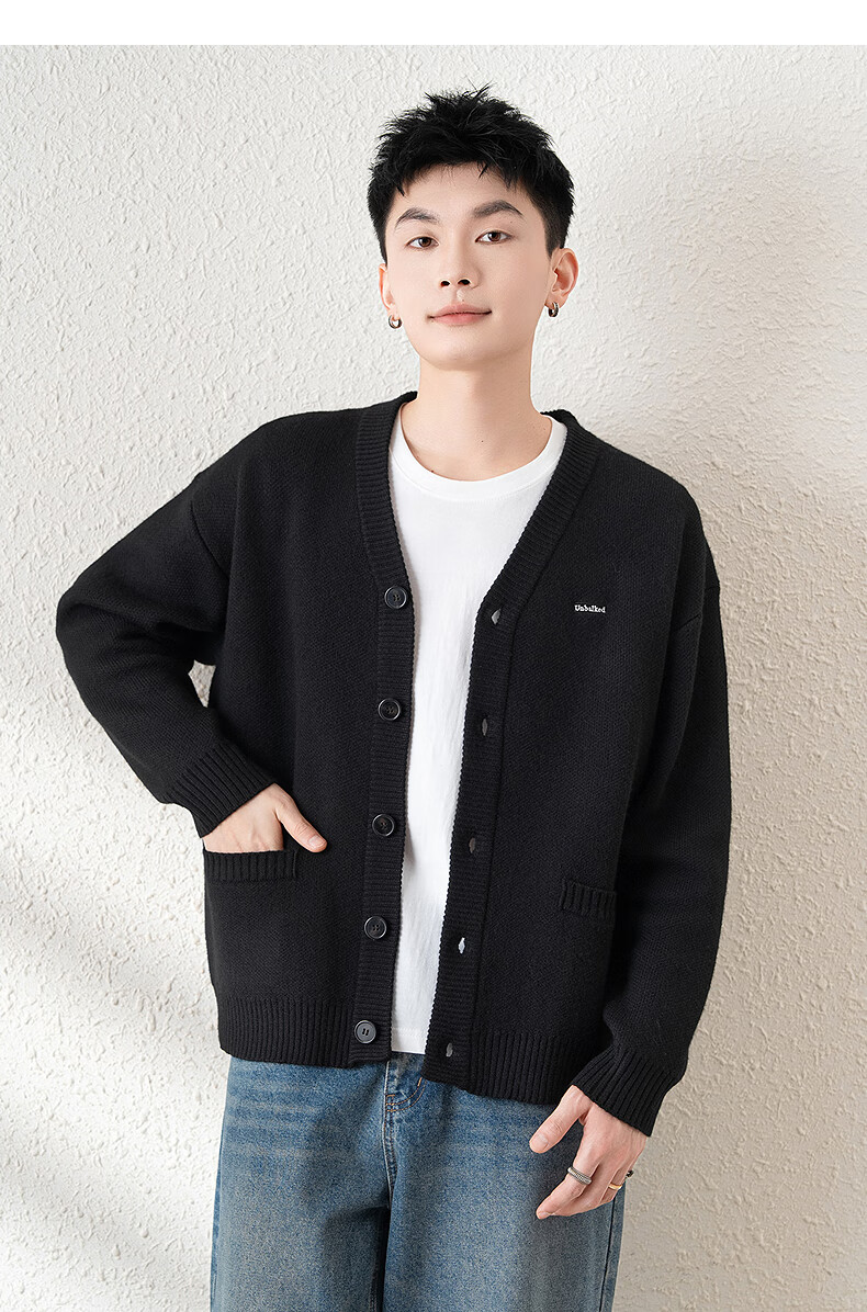 TonLion 2025 Autumn and Winter Men's V-neck Sweater Jacket Small Detailed Embroidered Knitted Cardigan Sweater on the Chest