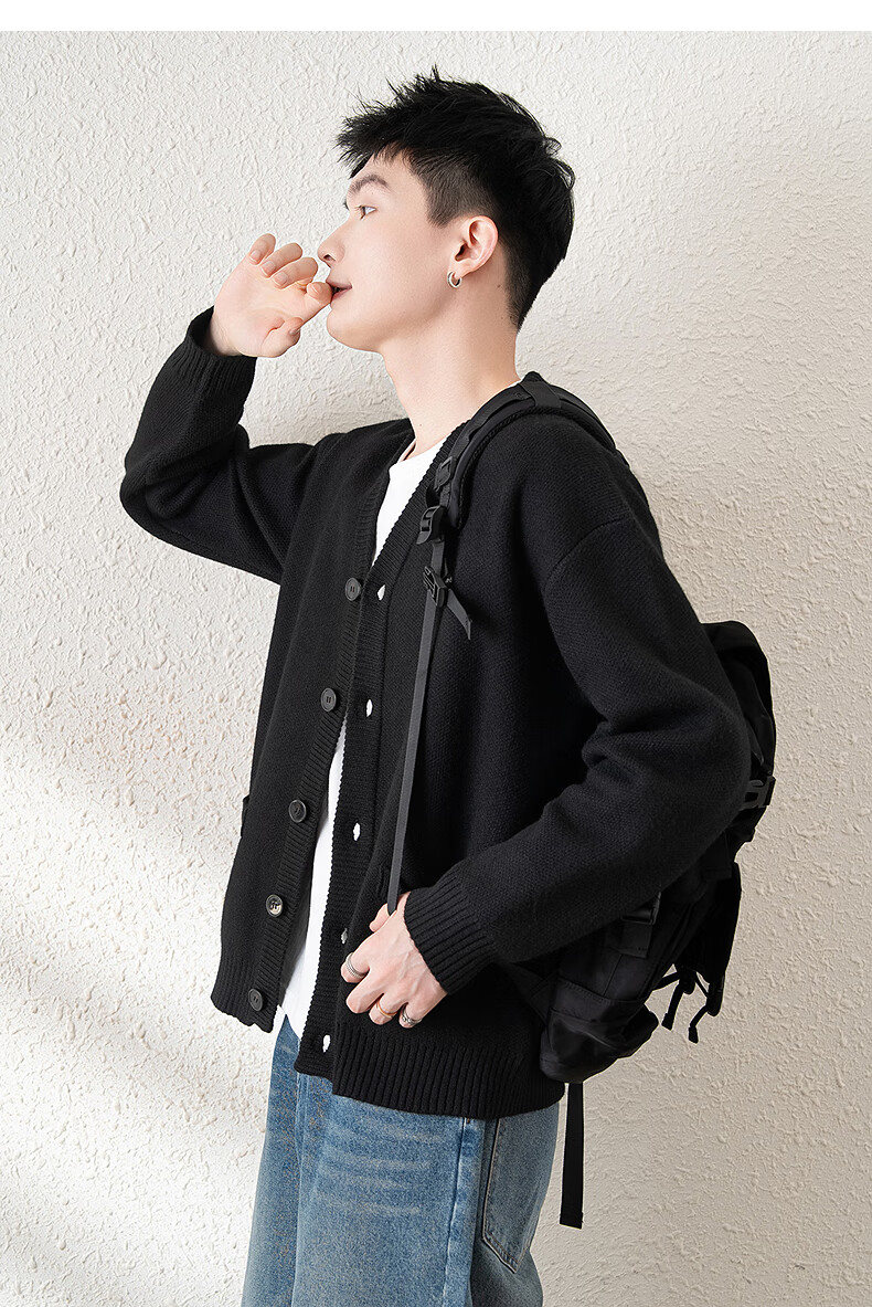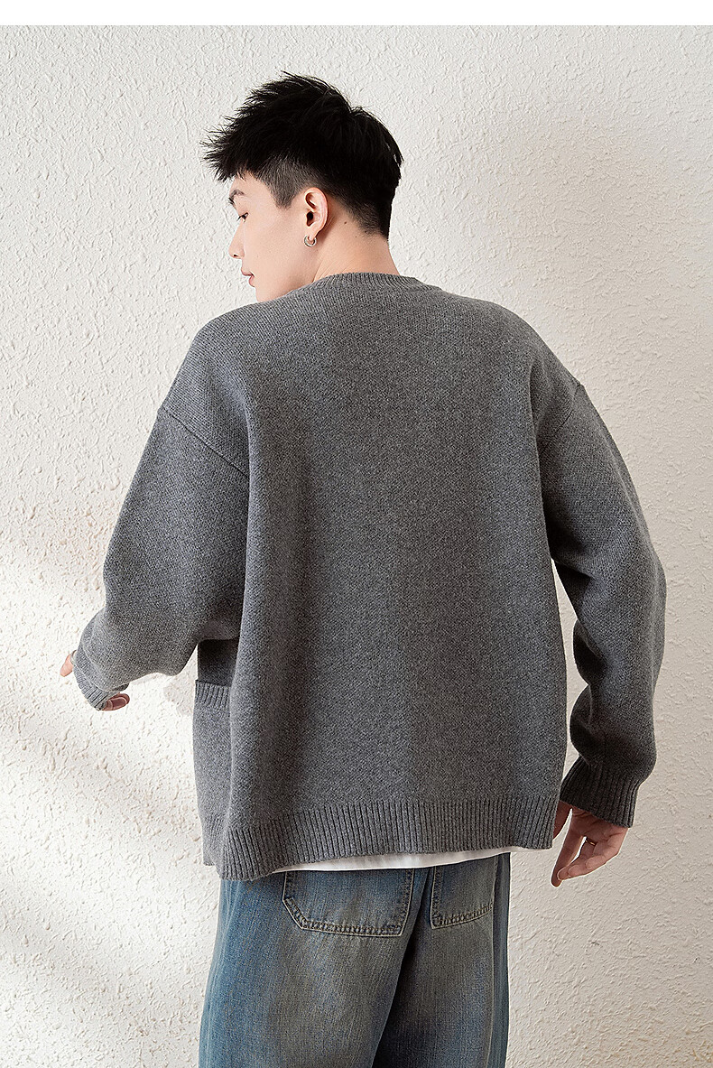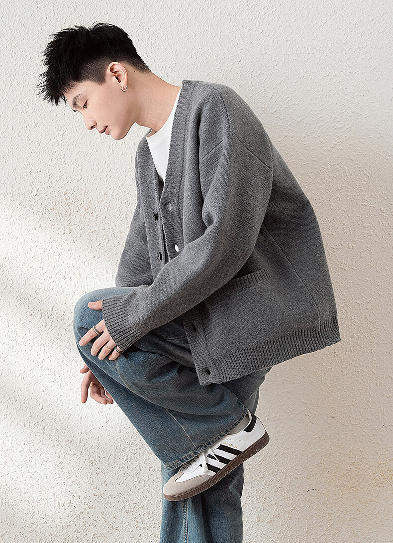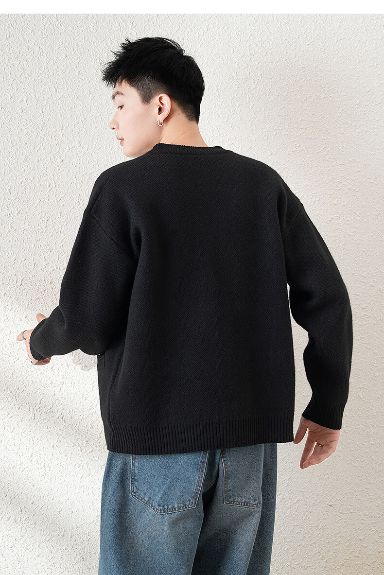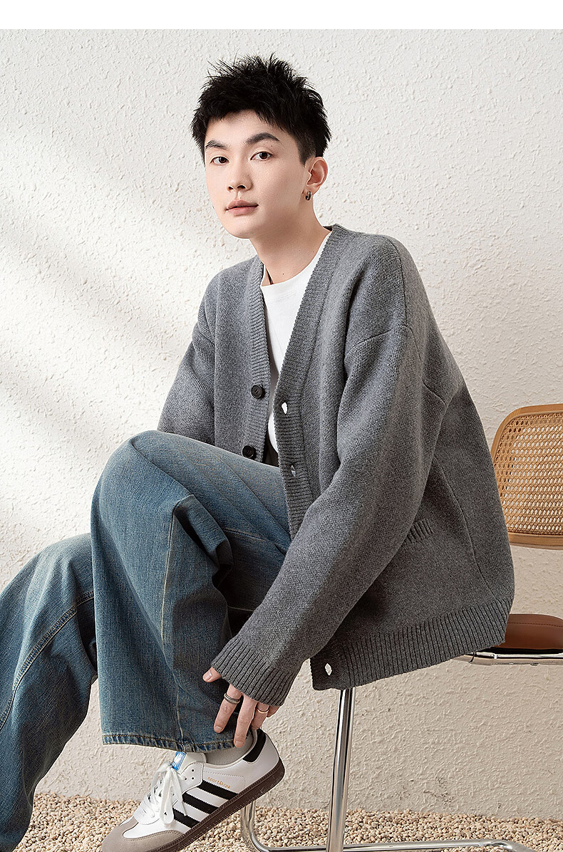 TonLion 2025 Autumn and Winter Men's V-neck Sweater Jacket Small Detailed Embroidered Knitted Cardigan Sweater on the Chest