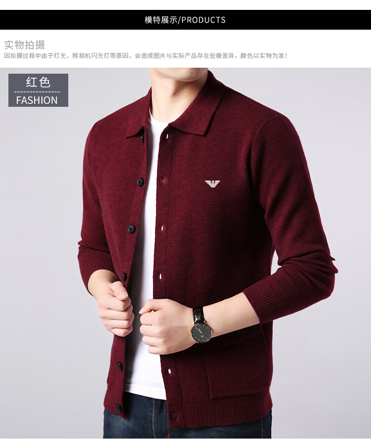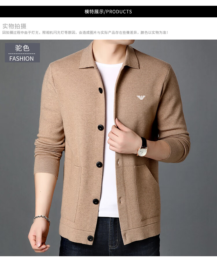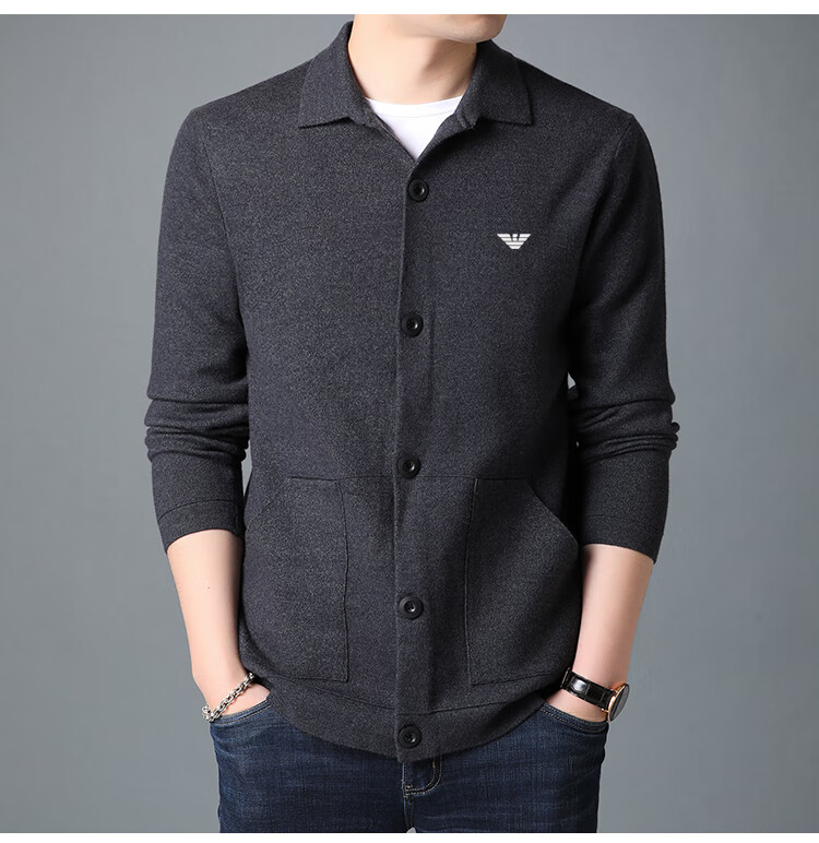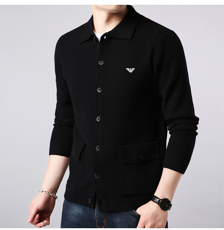 Emporio Armani Armani cardigan men's cardigan Korean style trendy casual lapel sweater sweater jacket thick black 7721 M 165 recommended 95-120Jin Jin equals 0.5 kg