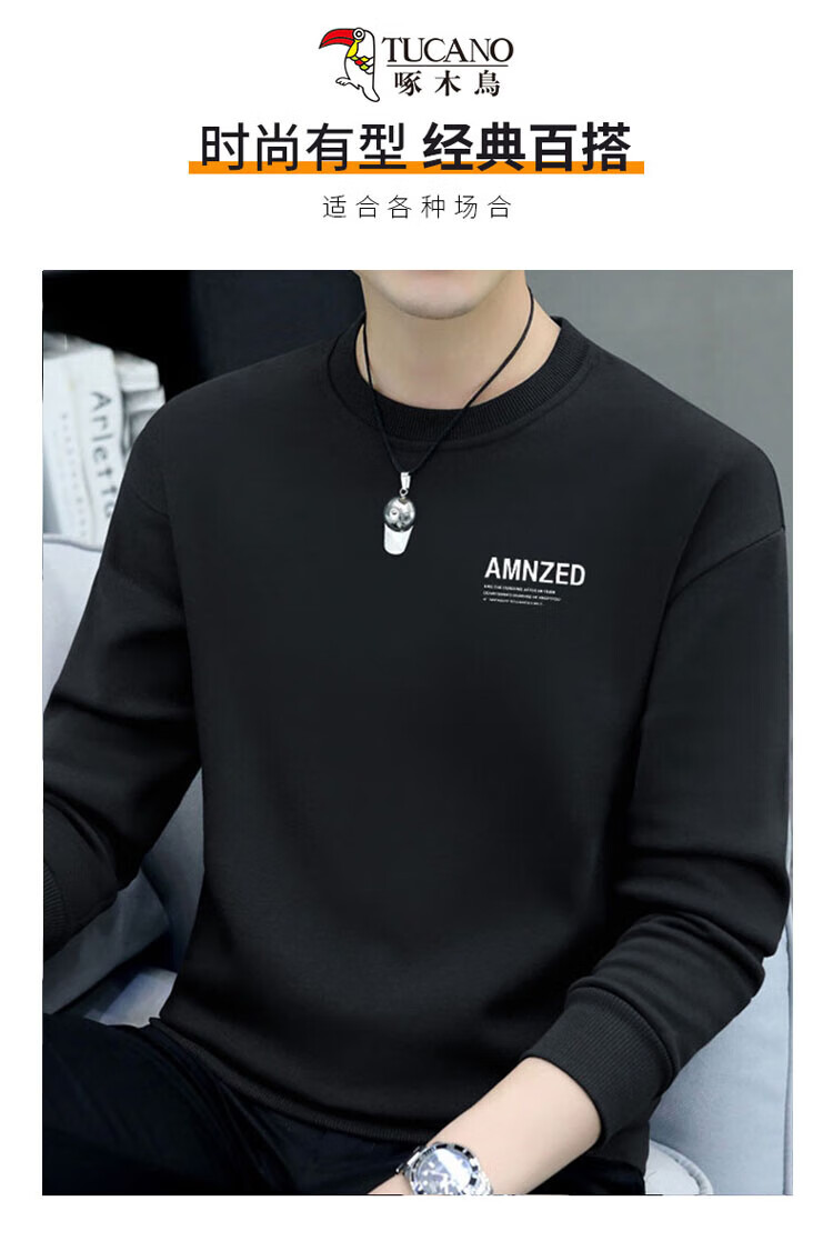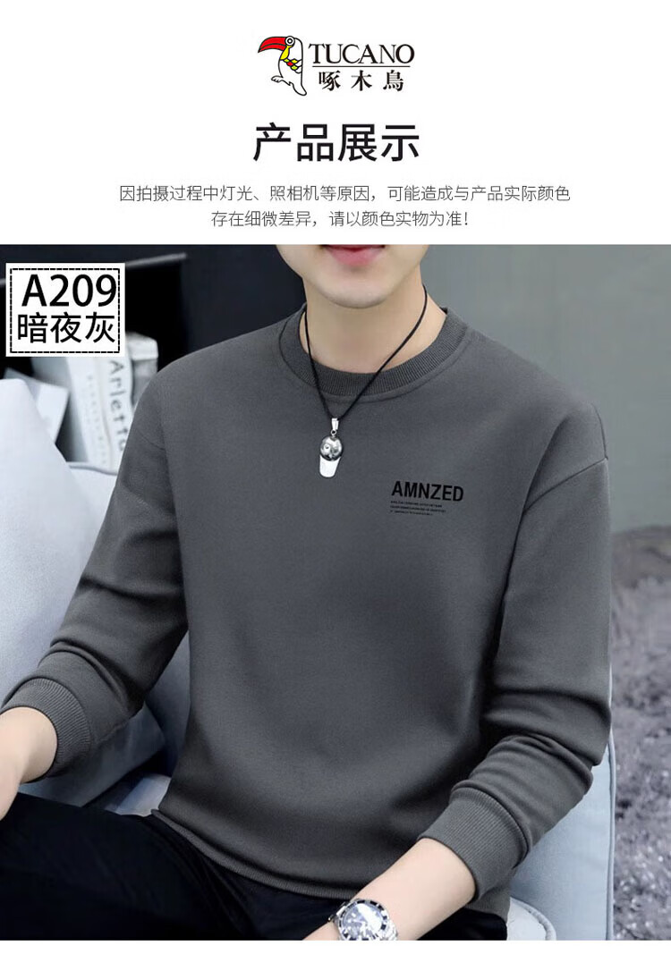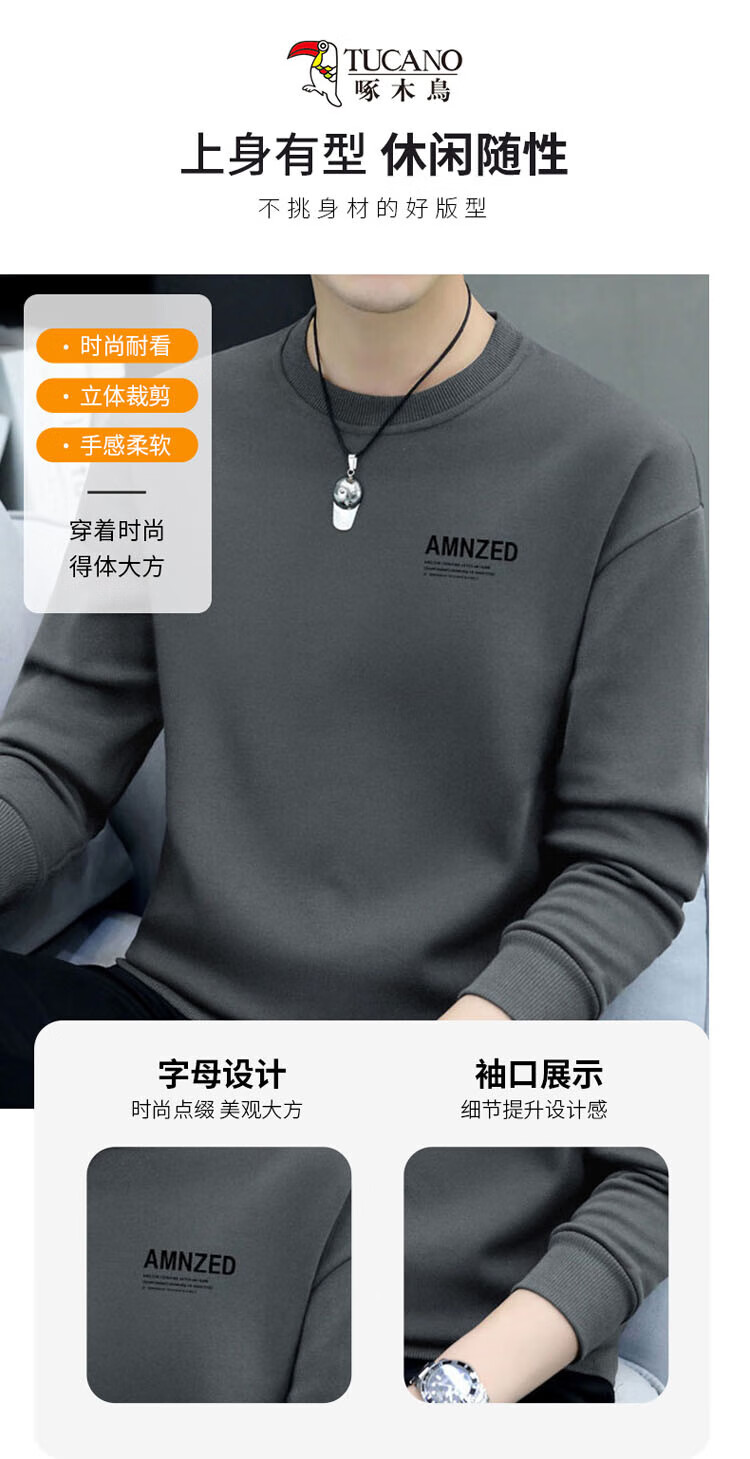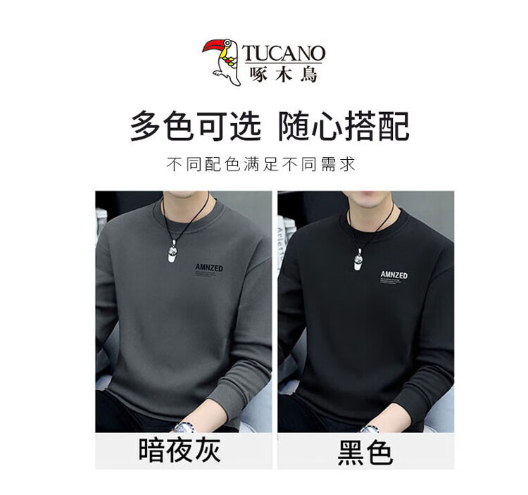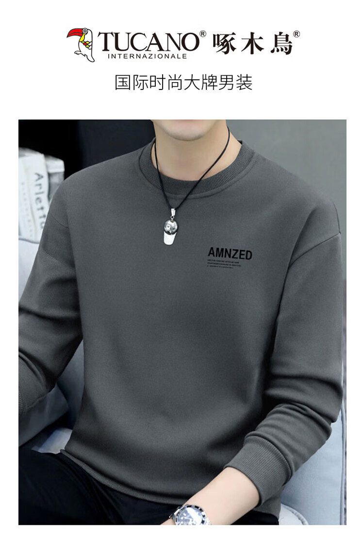 Woodpecker (TUCANO) sweatshirt men's autumn and winter round neck long-sleeved T-shirt bottoming shirt loose casual clothes jacket men's dark night gray XL