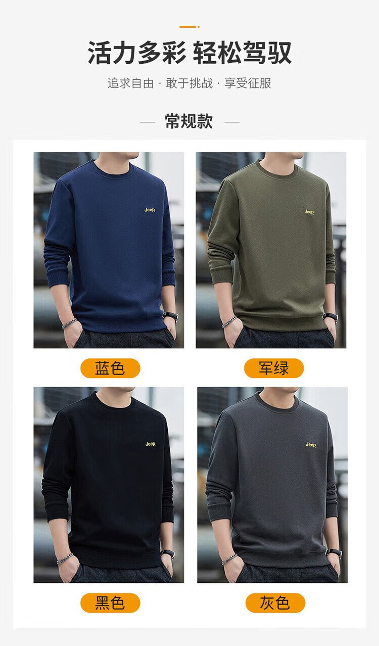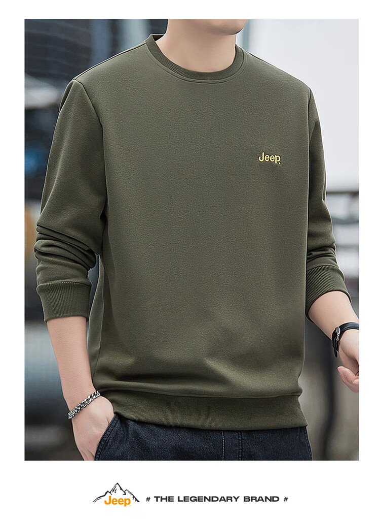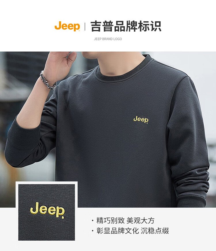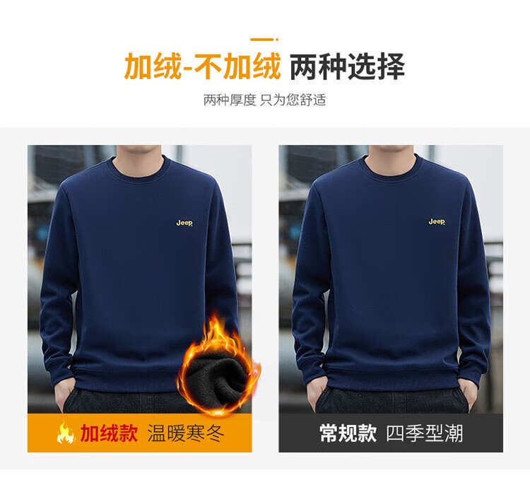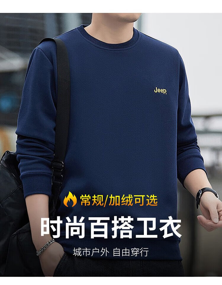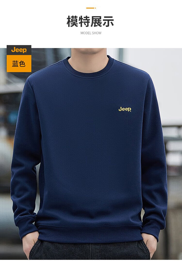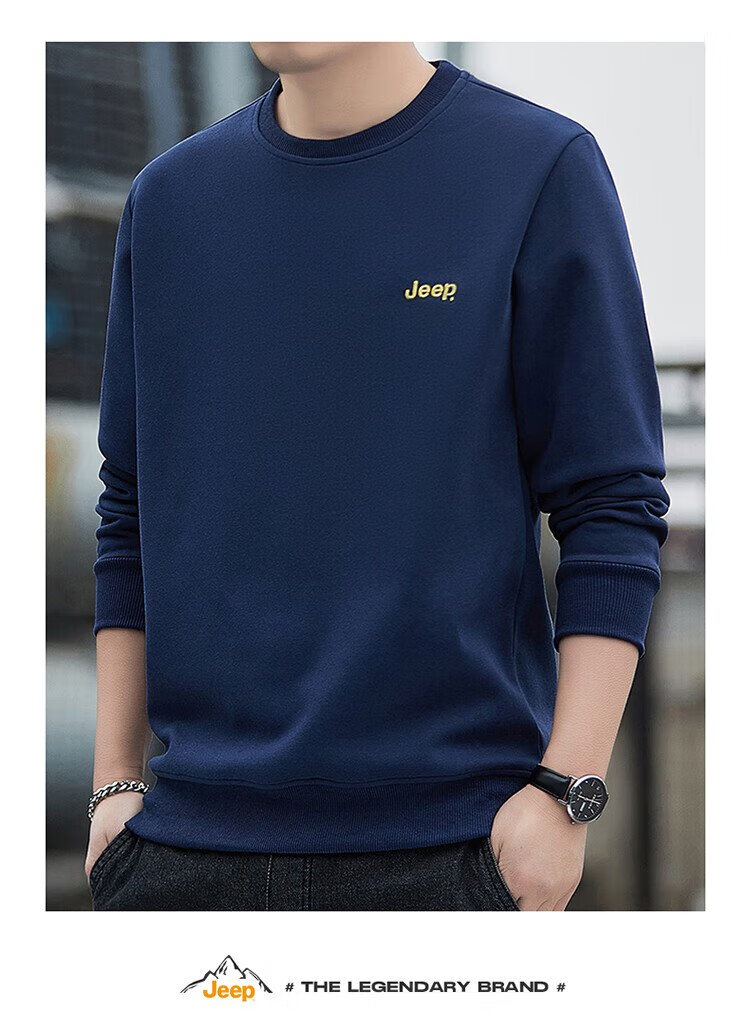 Jeep (JEEP) sweatshirt men's autumn and winter loose long-sleeved T-shirt men's round neck trendy clothes men's blue plus velvet XL