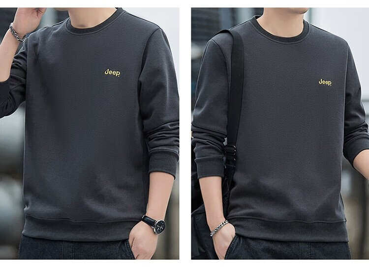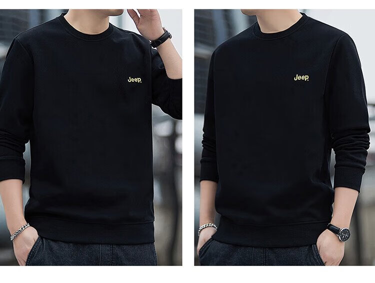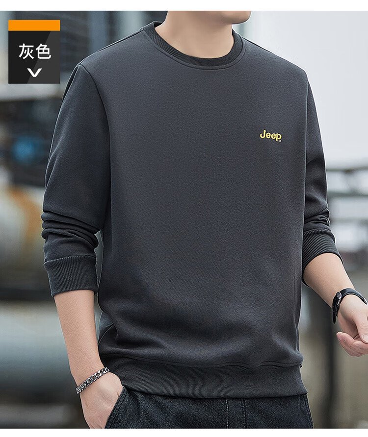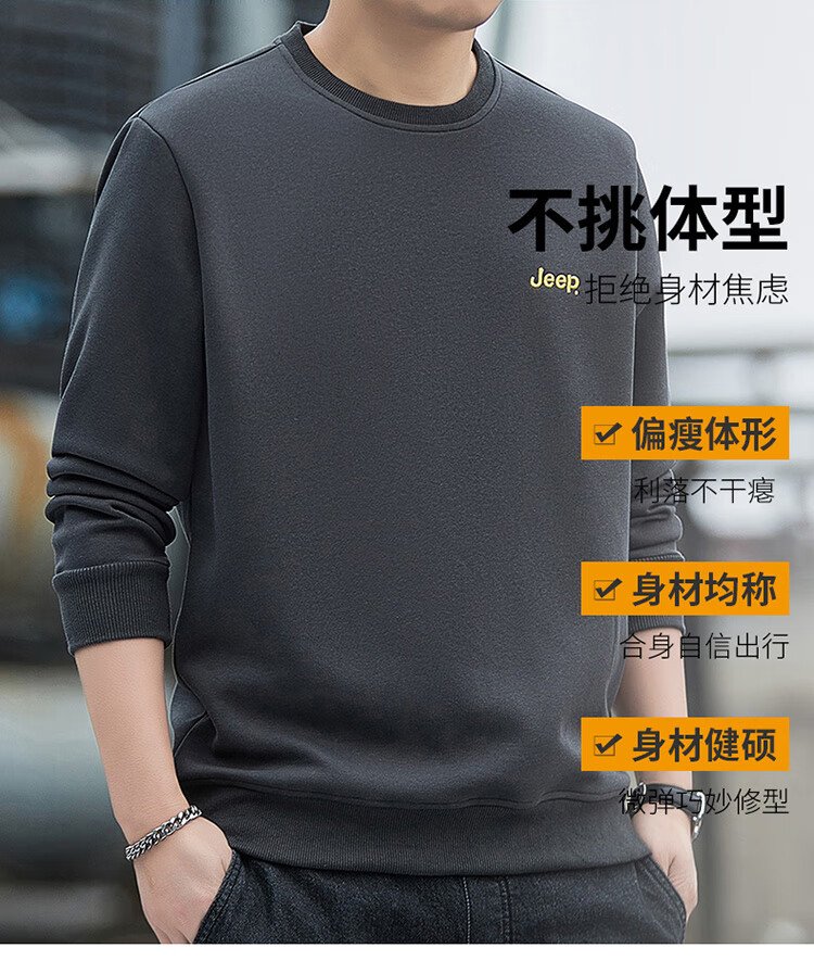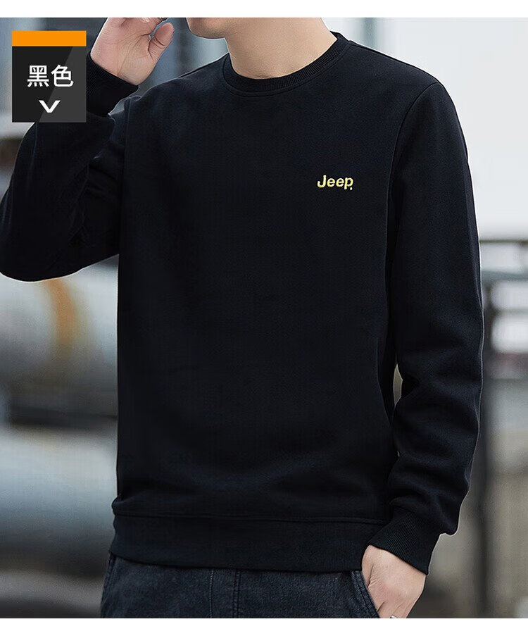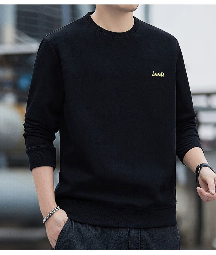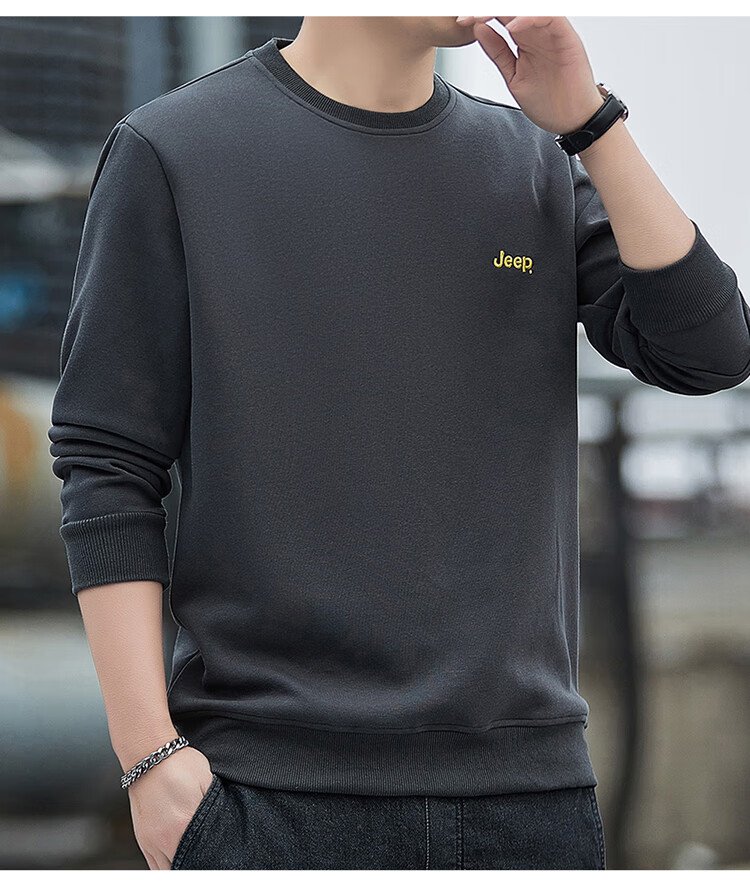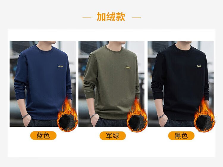 Jeep (JEEP) sweatshirt men's autumn and winter loose long-sleeved T-shirt men's round neck trendy clothes men's blue plus velvet XL