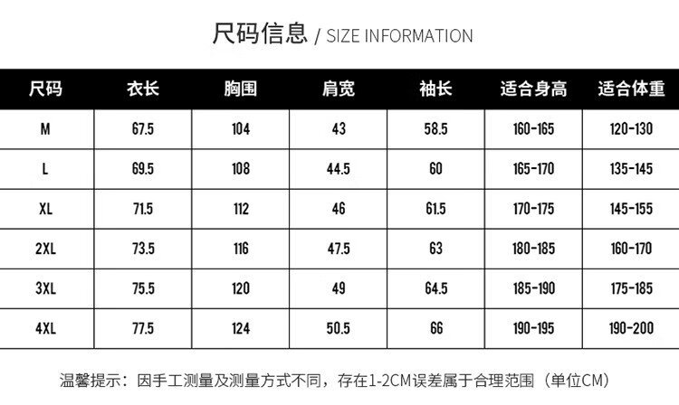 China (cm) 165 / 88-90 170 / 96-98 175 / 108-110 180 / 118-122 185 / 126-130