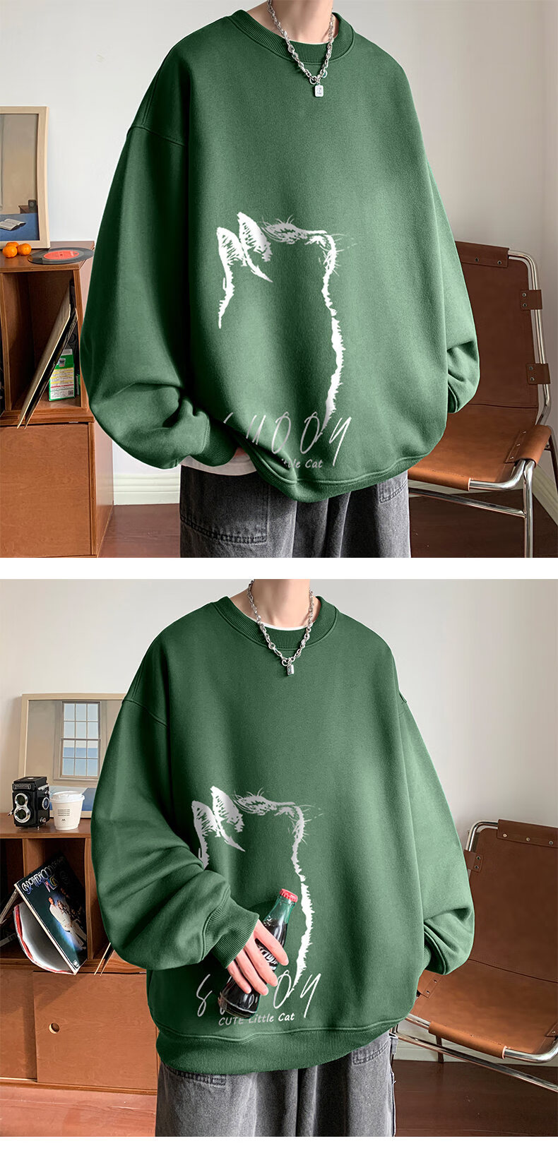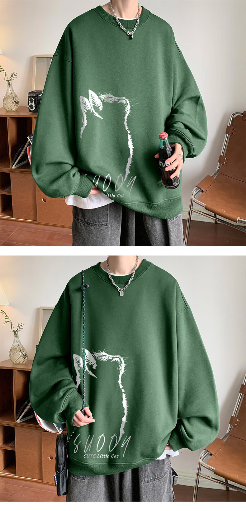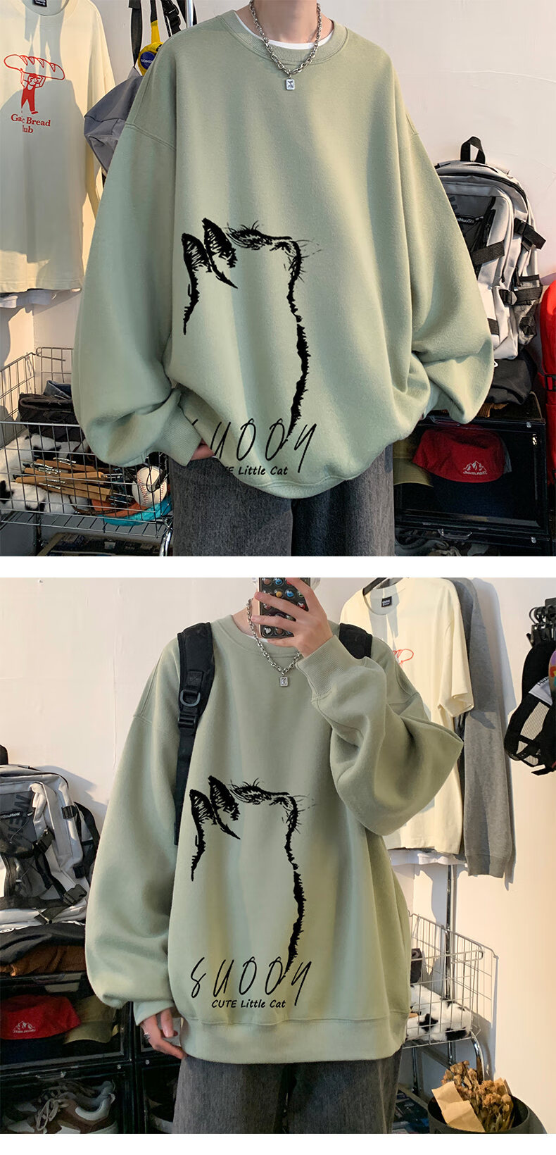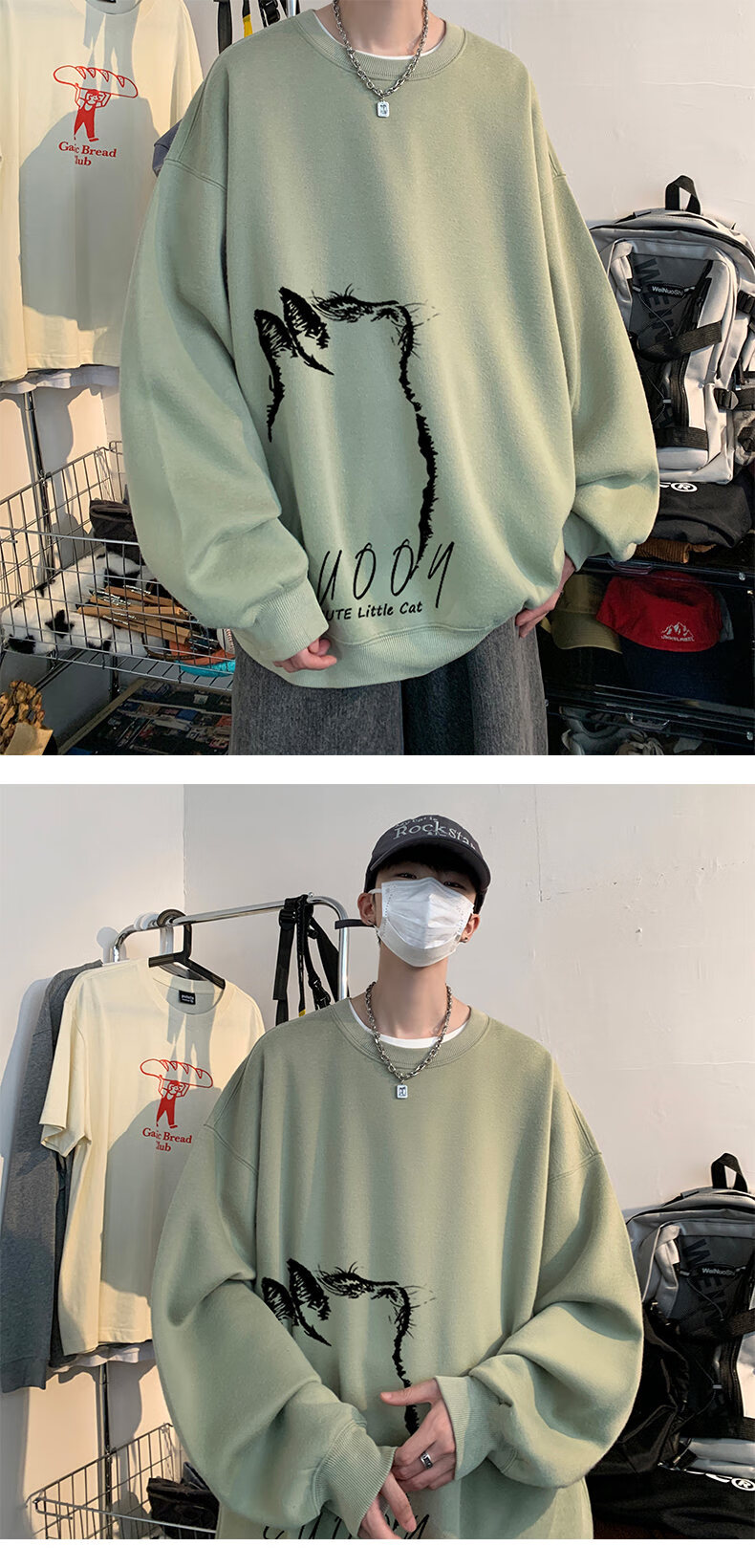 NEW OR MODE American high street sweatshirt men's heavyweight spring and autumn round neck trendy brand oversize hooded top lazy loose jacket pea green XL