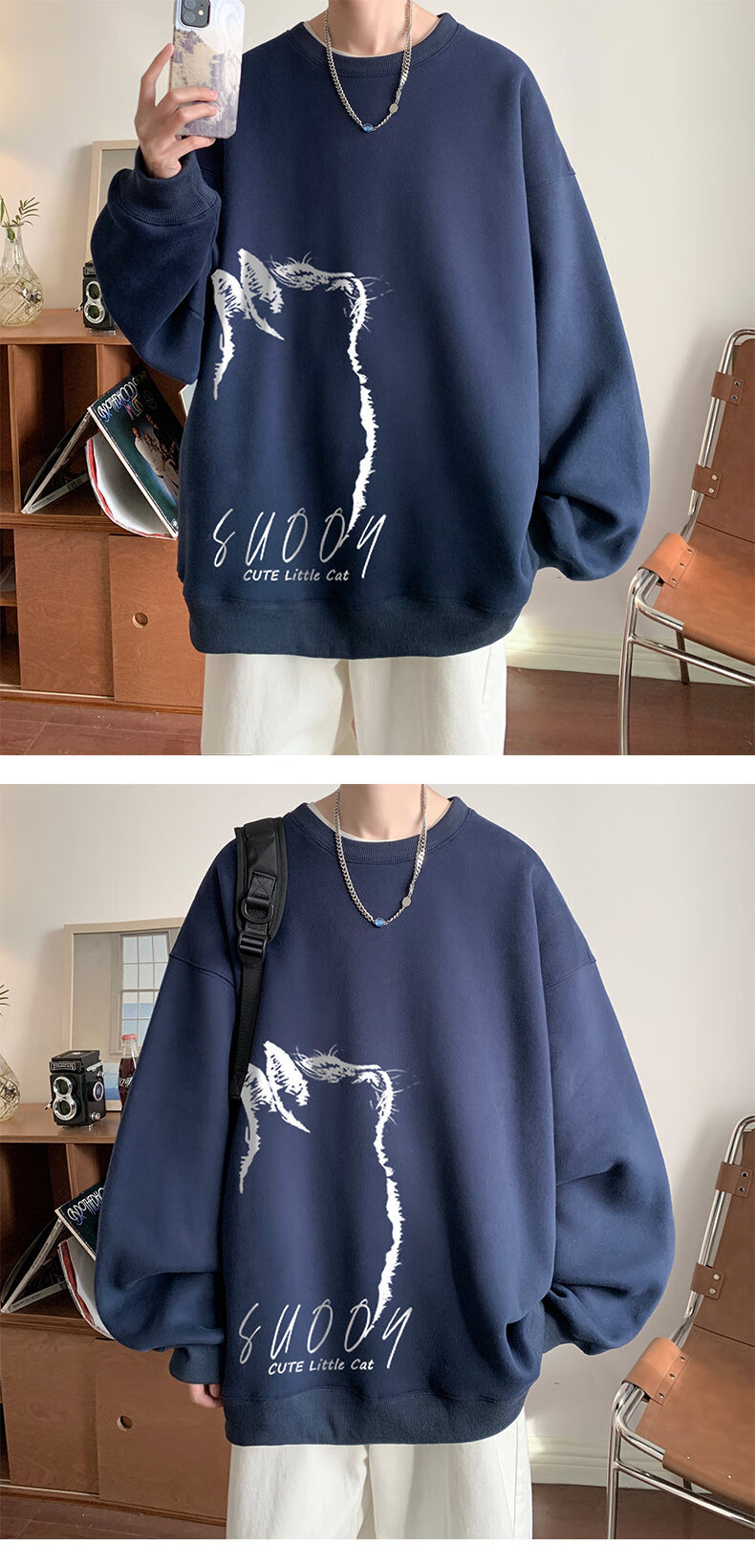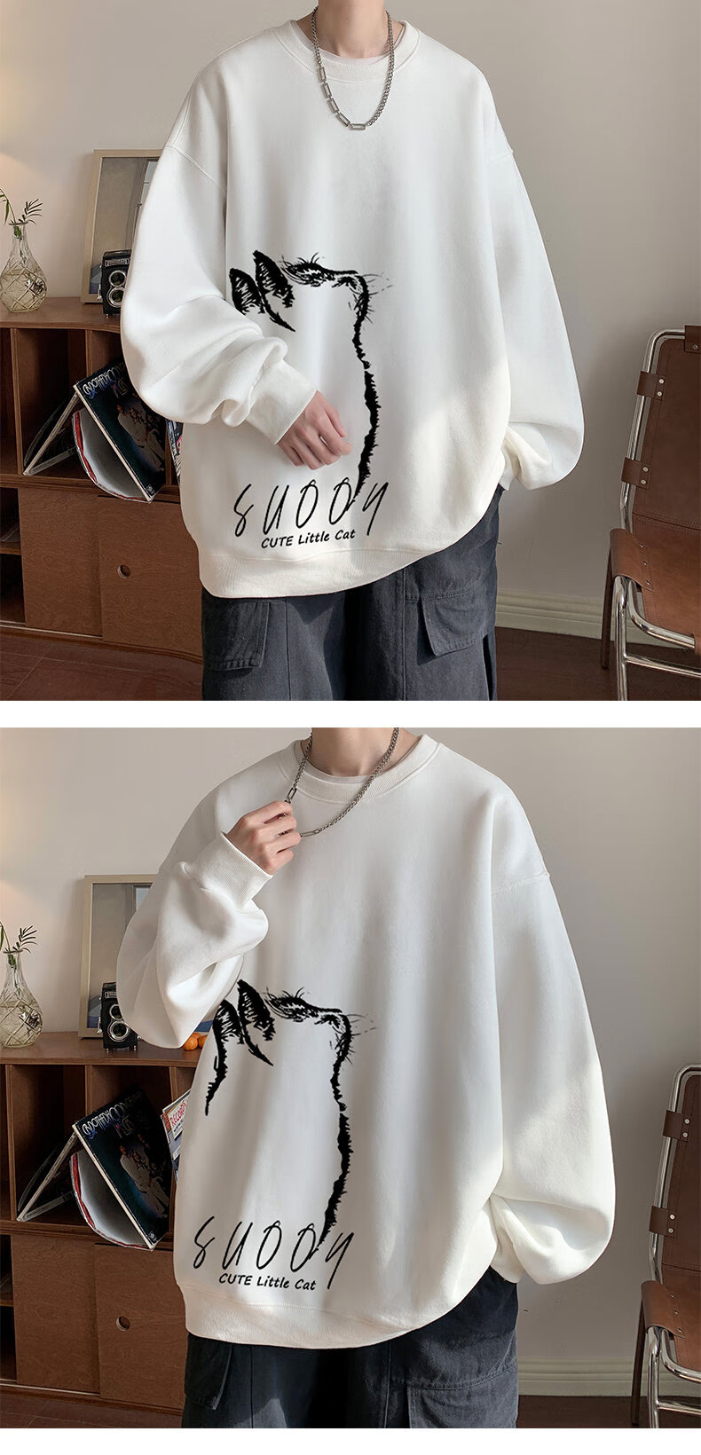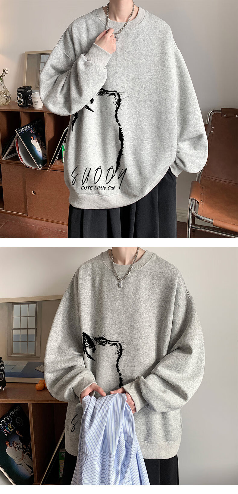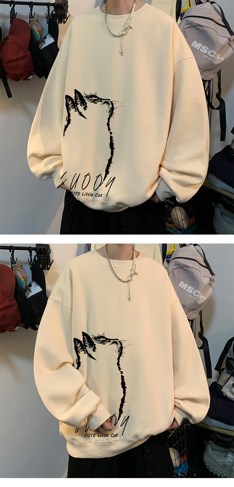 NEW OR MODE American high street sweatshirt men's heavyweight spring and autumn round neck trendy brand oversize hooded top lazy loose jacket pea green XL