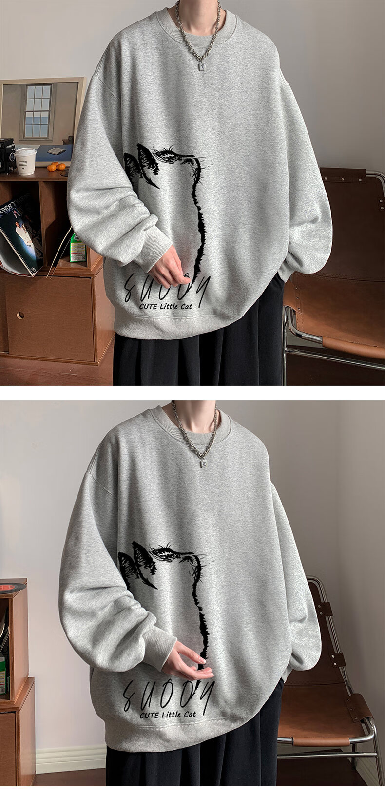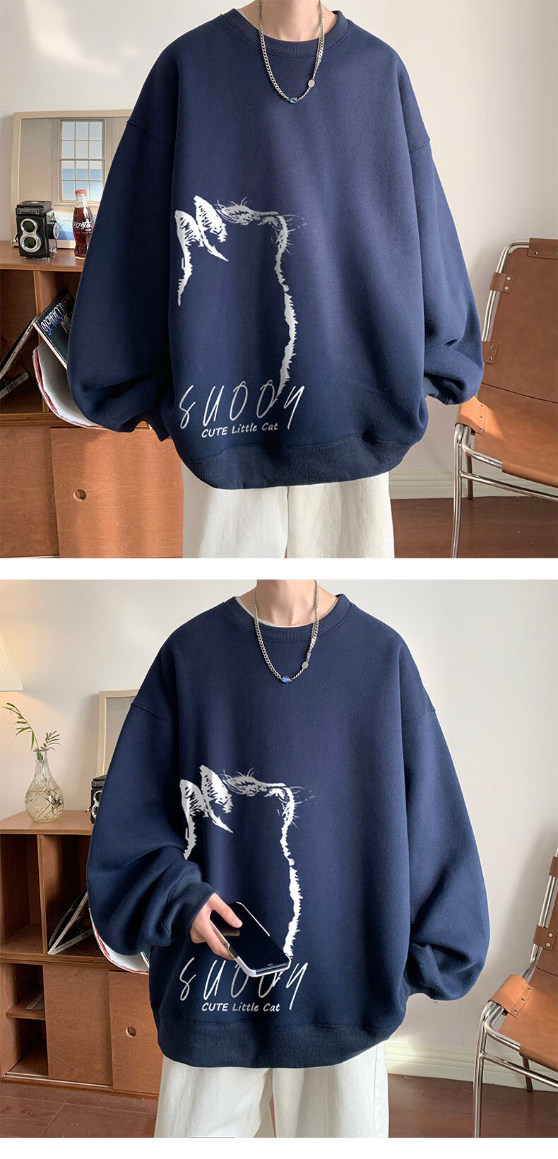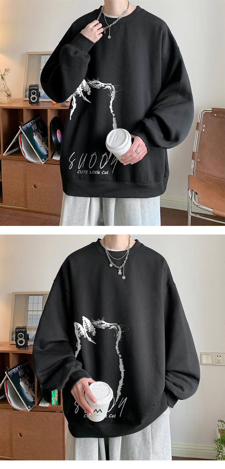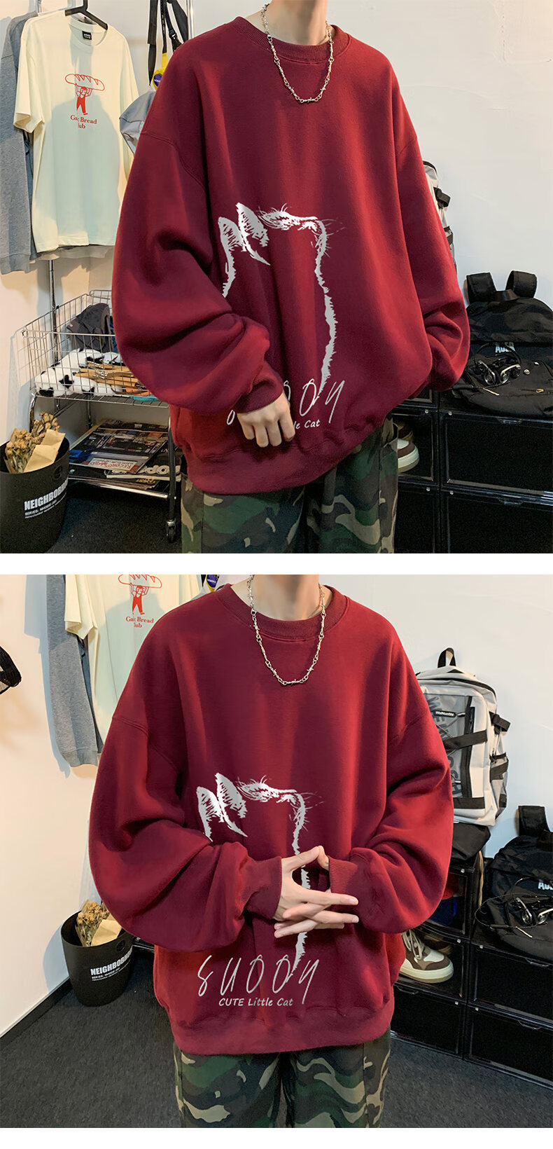 NEW OR MODE American high street sweatshirt men's heavyweight spring and autumn round neck trendy brand oversize hooded top lazy loose jacket pea green XL