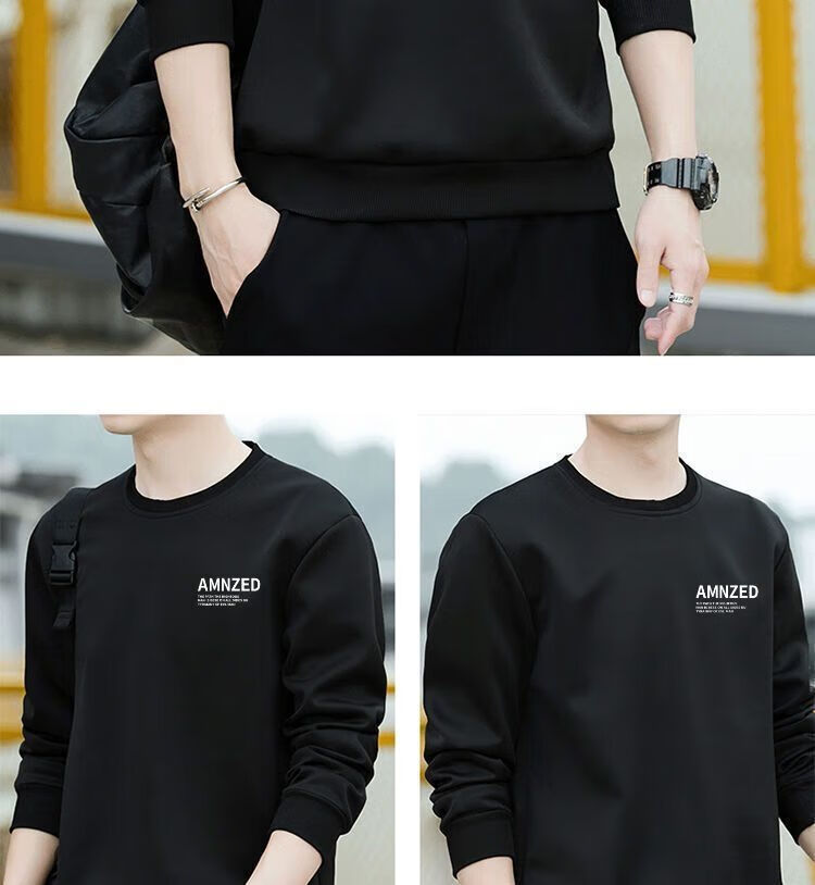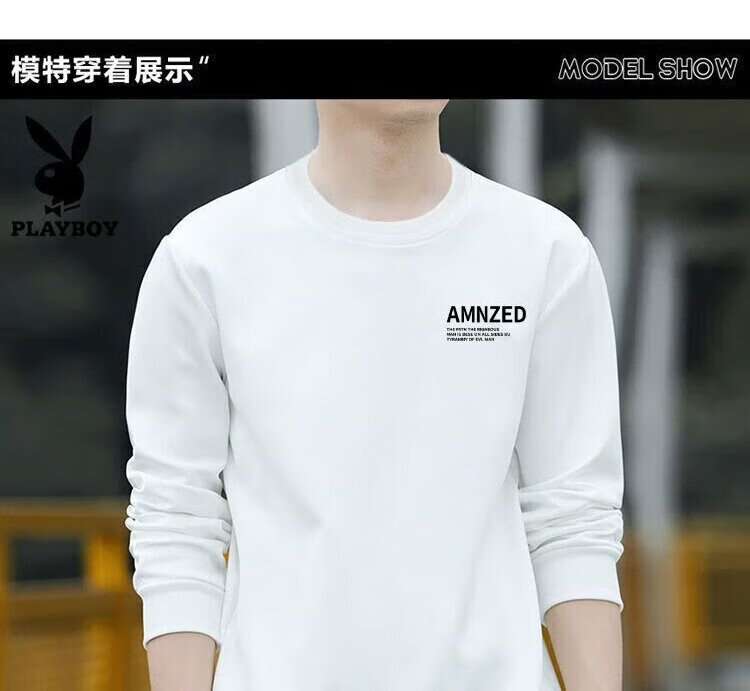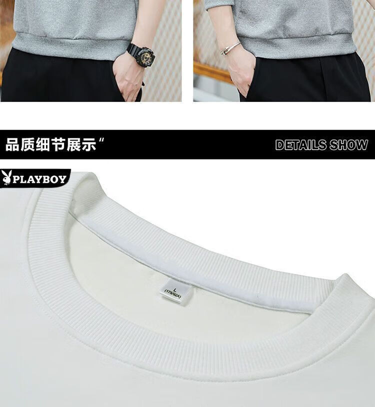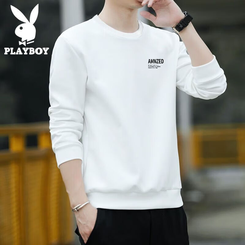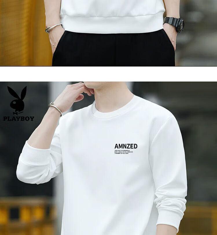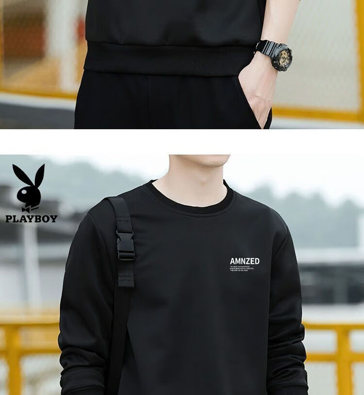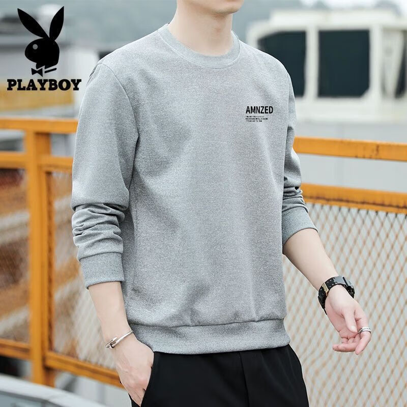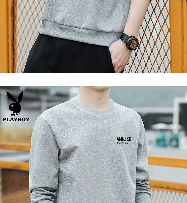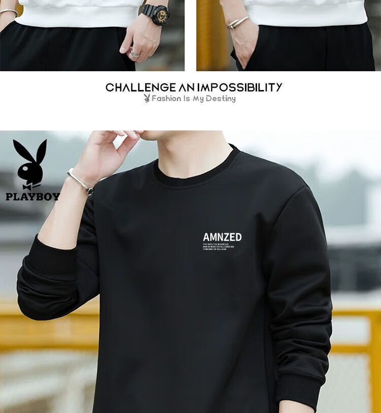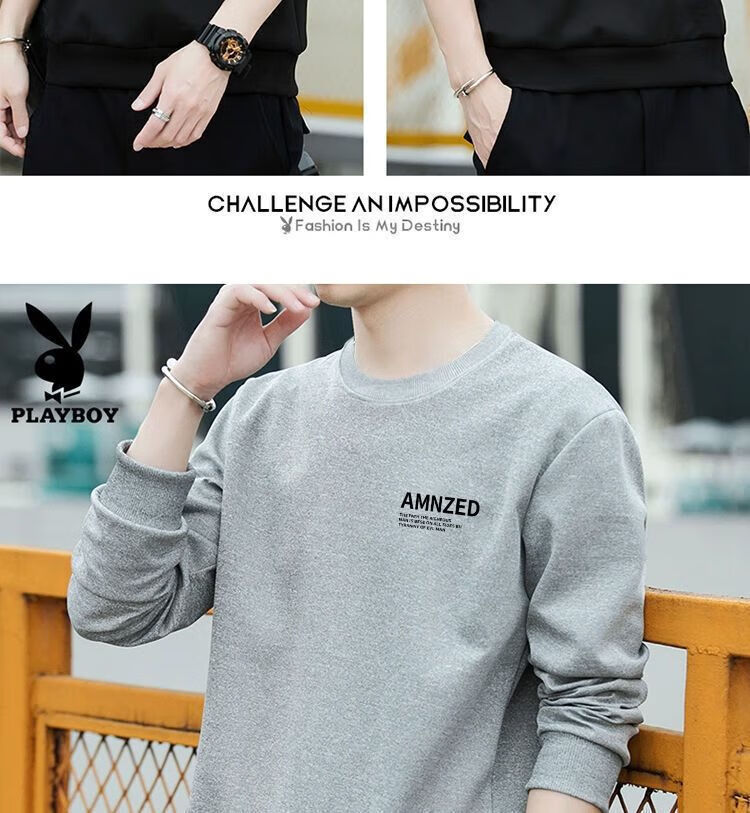 Playboy Men's Sweatshirt Men's Spring Autumn and Winter Style 2025 New Long Sleeve T-Shirt Men's Heavyweight Jimo Fashion Brand Clothes Brand Men's Black + Dark Gray Spring and Autumn Style 2-Pack XL Recommended 120-135Jin Jin is equal to 0.5 kg