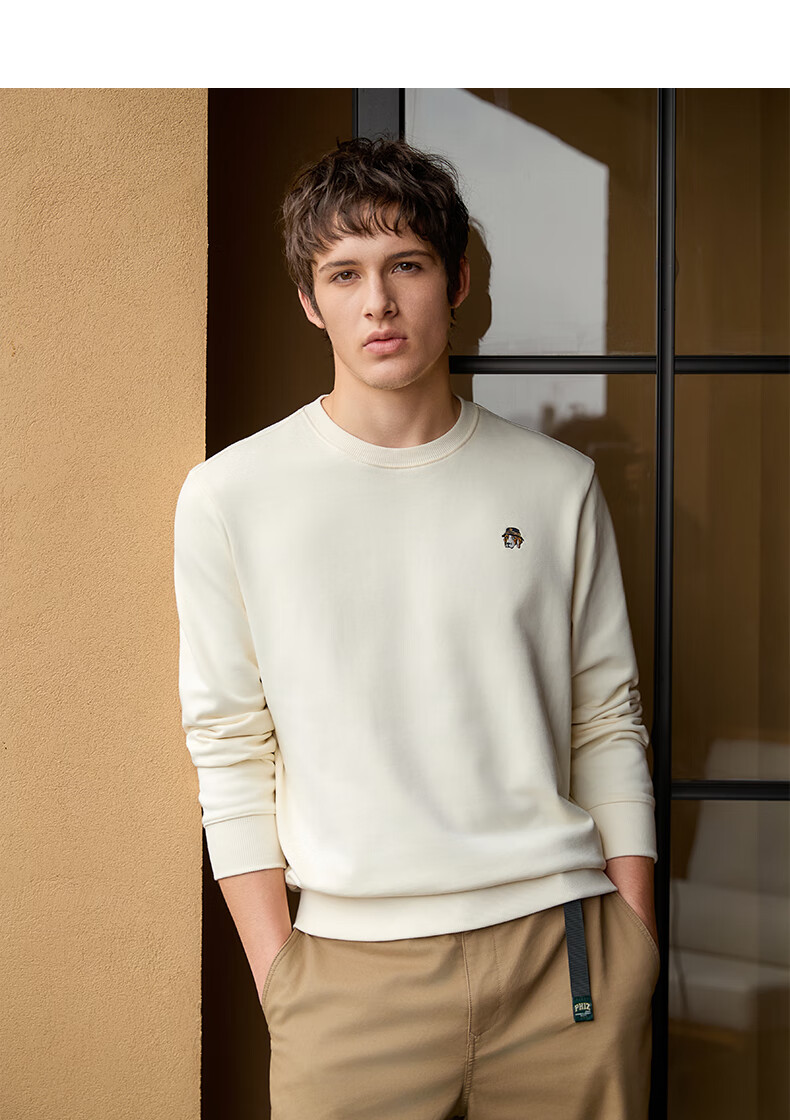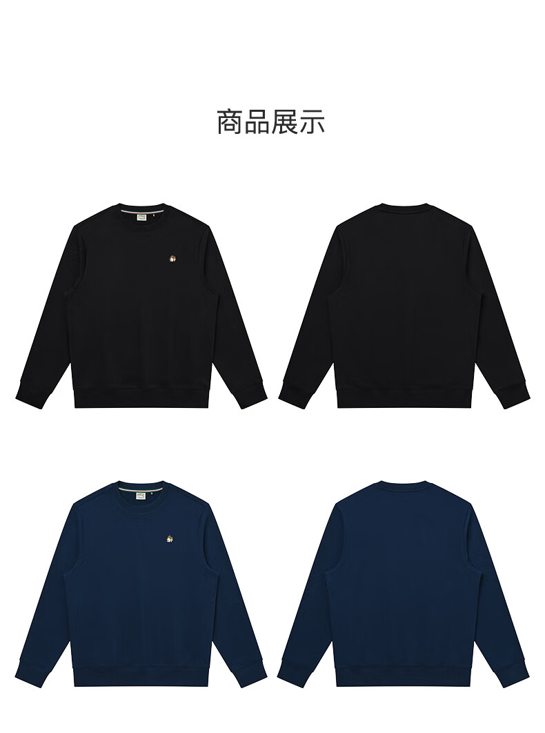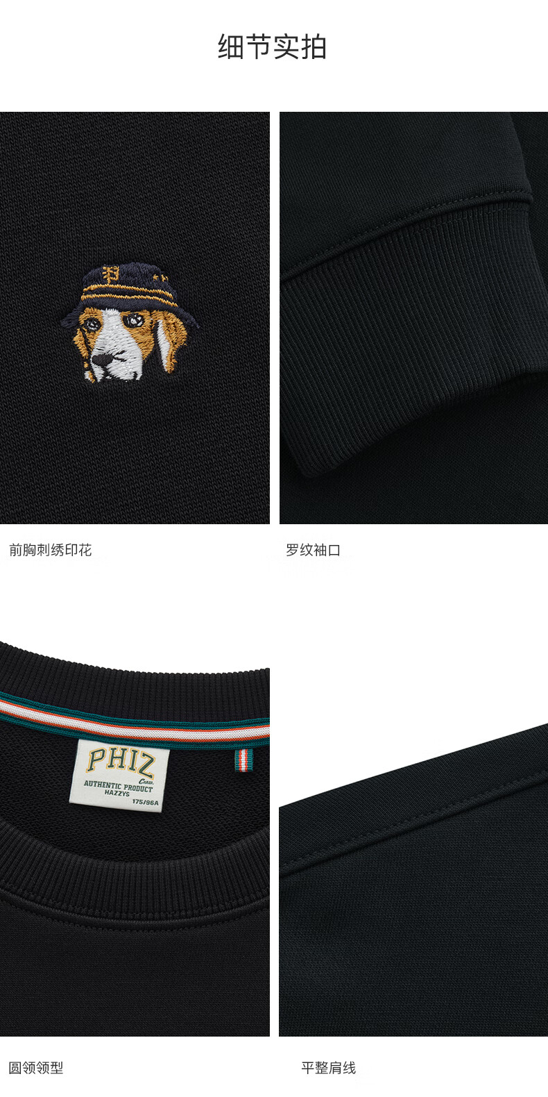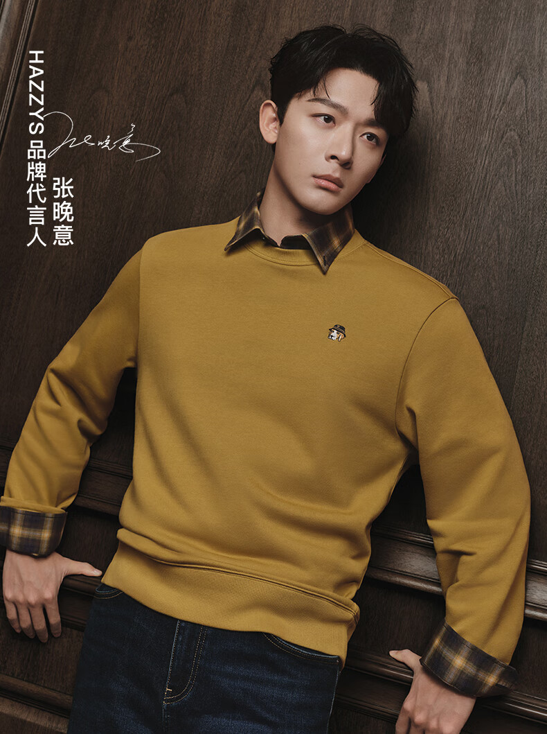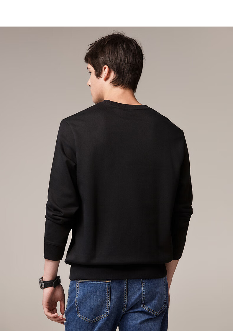 HAZZYS Men's Clothing Autumn Style Zhang Wanyi's Same Style Simple Casual Men's Top PHIZ Round Neck Basic Sweatshirt Men Black BK L (175/96A 48)