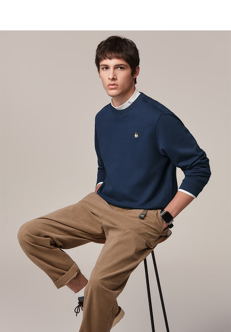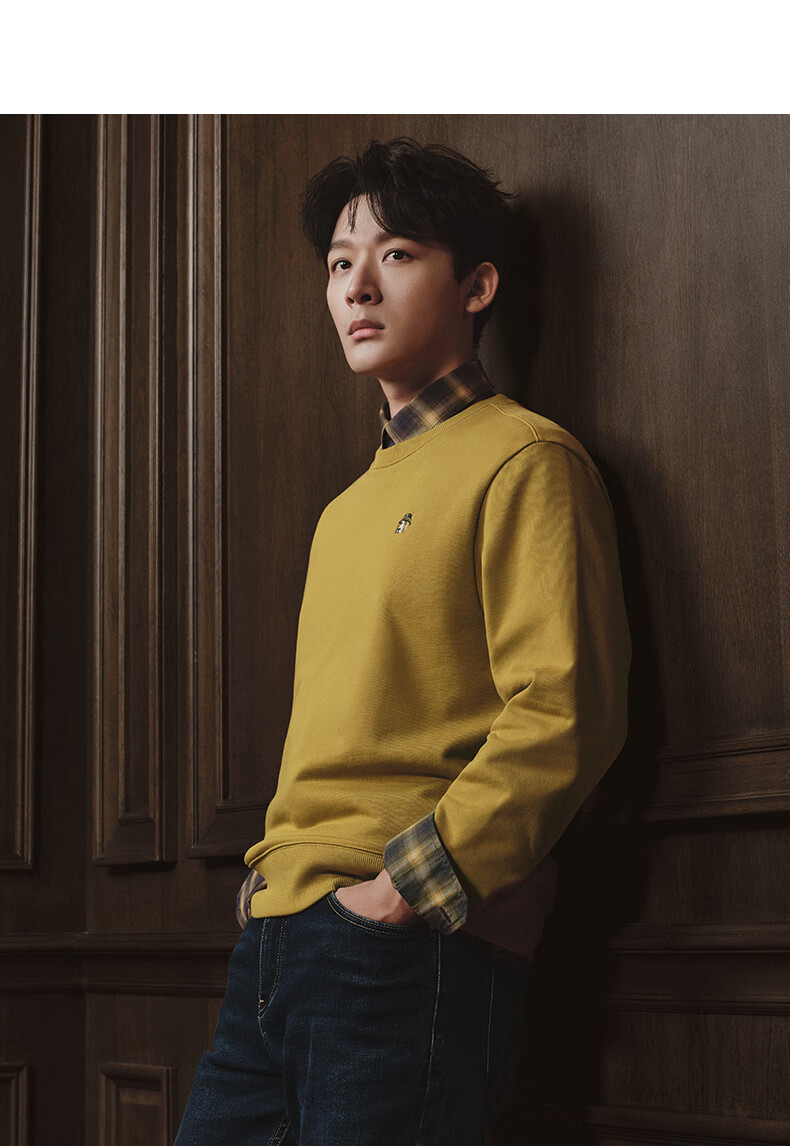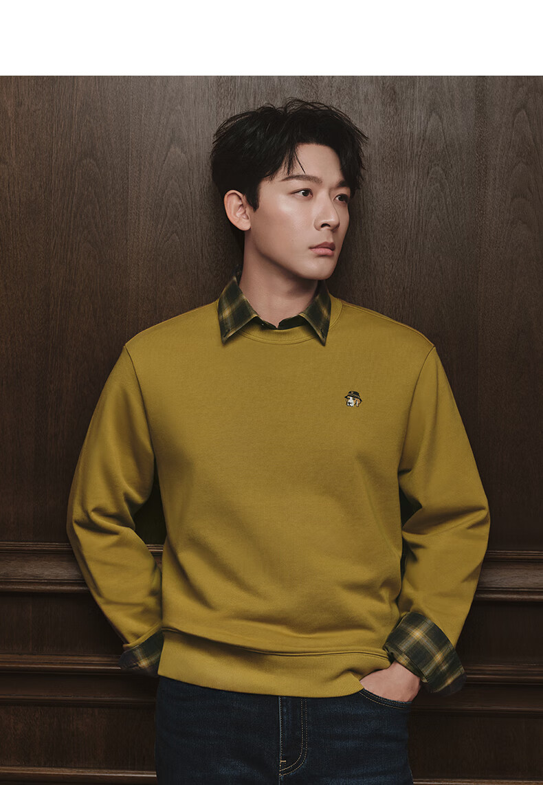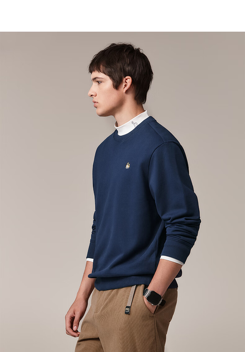 HAZZYS Men's Clothing Autumn Style Zhang Wanyi's Same Style Simple Casual Men's Top PHIZ Round Neck Basic Sweatshirt Men Black BK L (175/96A 48)