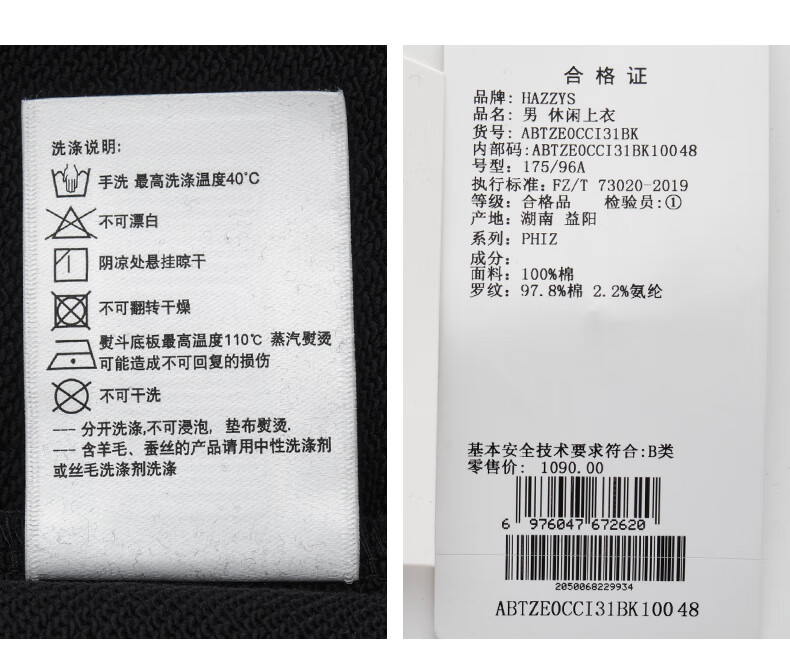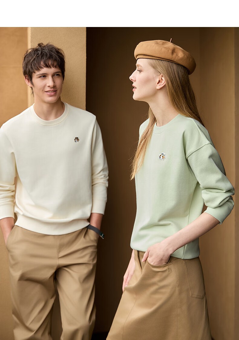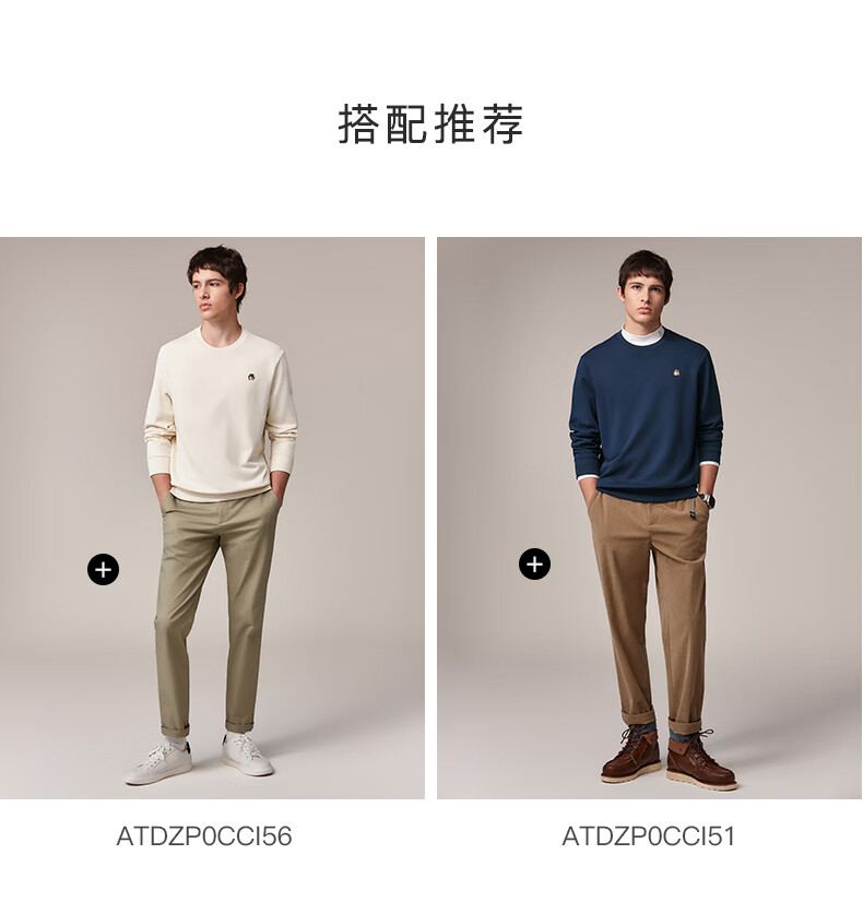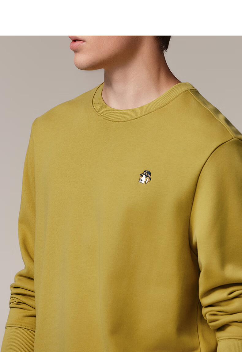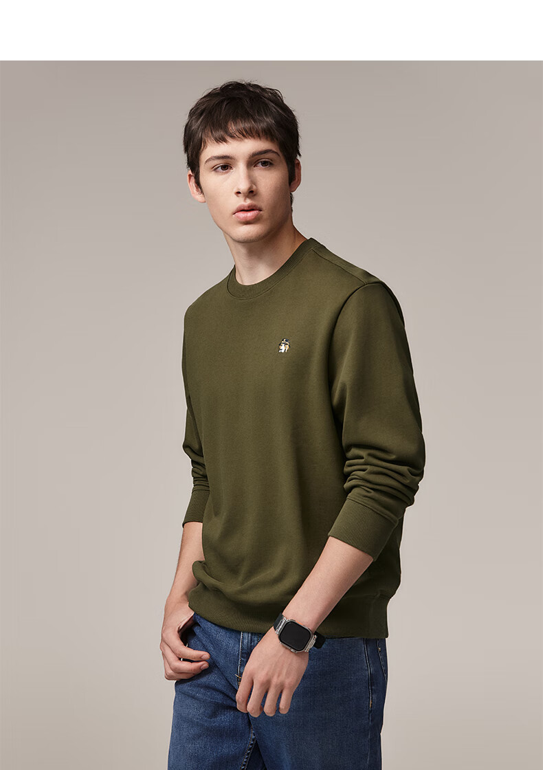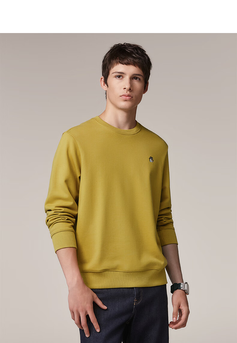 HAZZYS Men's Clothing Autumn Style Zhang Wanyi's Same Style Simple Casual Men's Top PHIZ Round Neck Basic Sweatshirt Men Black BK L (175/96A 48)