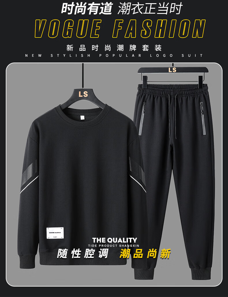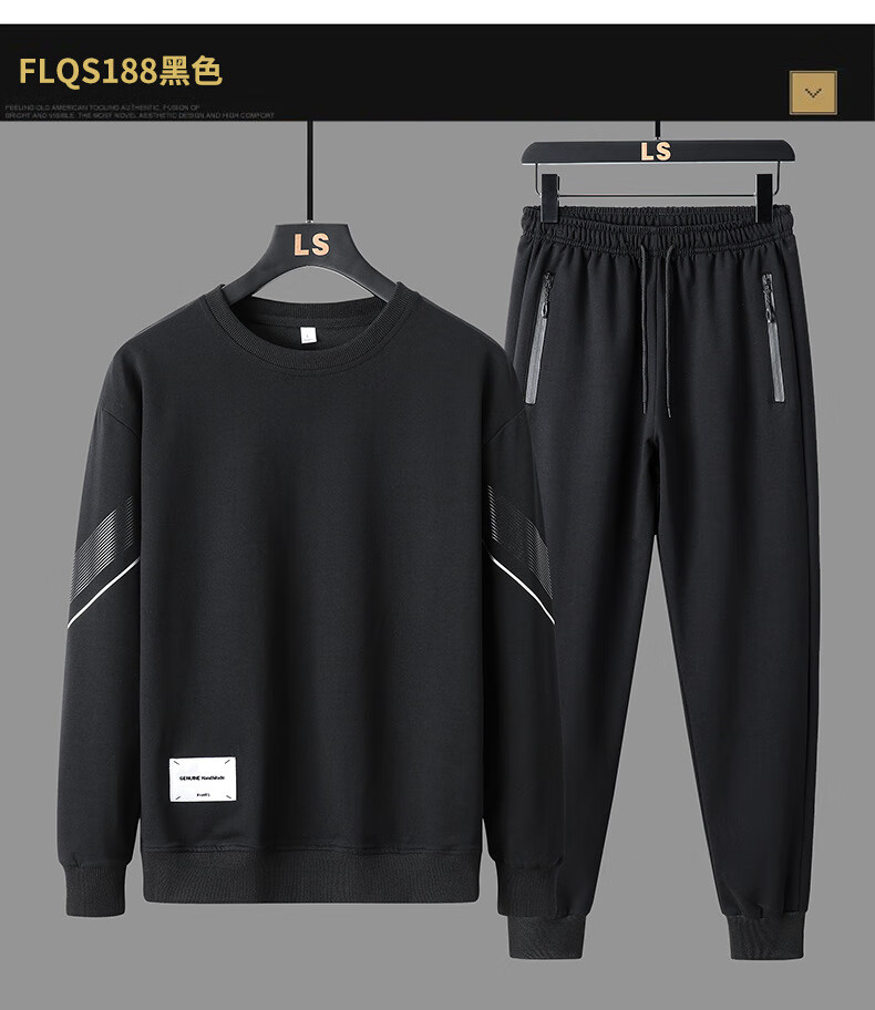 Yalu autumn and winter casual sports suit men's round neck sweatshirt and sweatpants men's velvet thickened top and trousers two-piece set white regular top + trousers XL recommended 120-135Jin Jin equals 0.5 kg