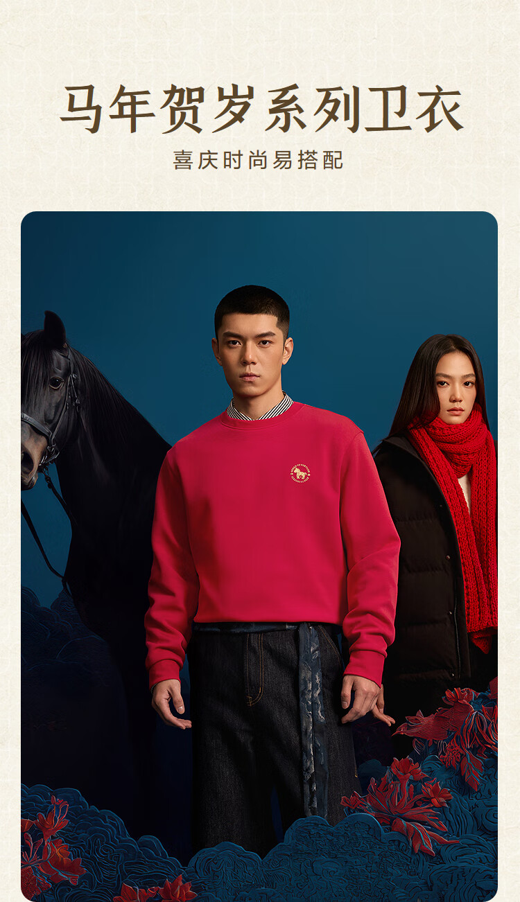 Heilan House (HLA) Sweatshirt Men's Spring 2026 New Year of the Horse and New Year's Five-Menching Large Size Long Sleeve Men's HNZWW1F003A Black 05 L 175/92A Recommended 137~150Jin Jin is equal to 0.5 kg