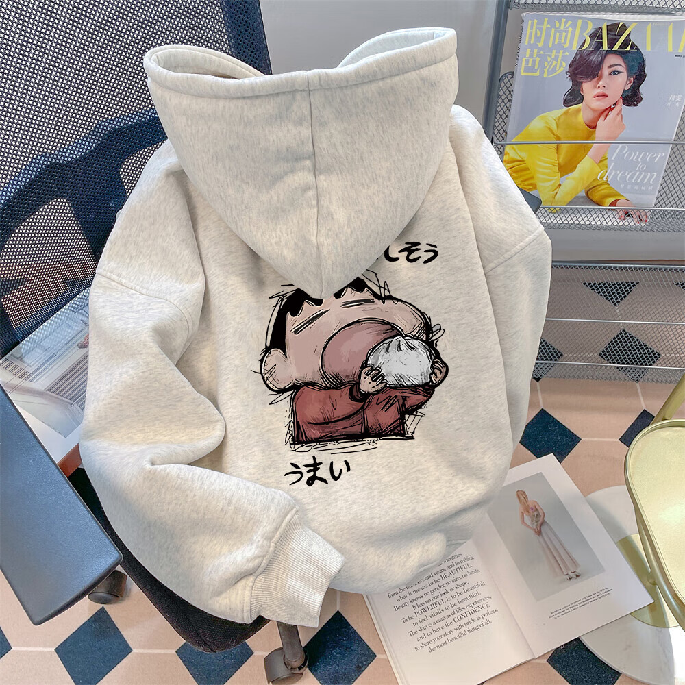 Woodpecker (TUCANO) American retro white and gray hooded sweatshirt for men, autumn and winter jackets for men and women, trendy loose tops for couples, white and gray (regular style) XL recommended weight (110-135Jin Jin equals 0.5 kg)