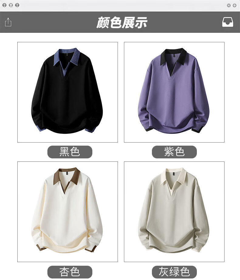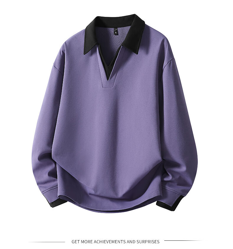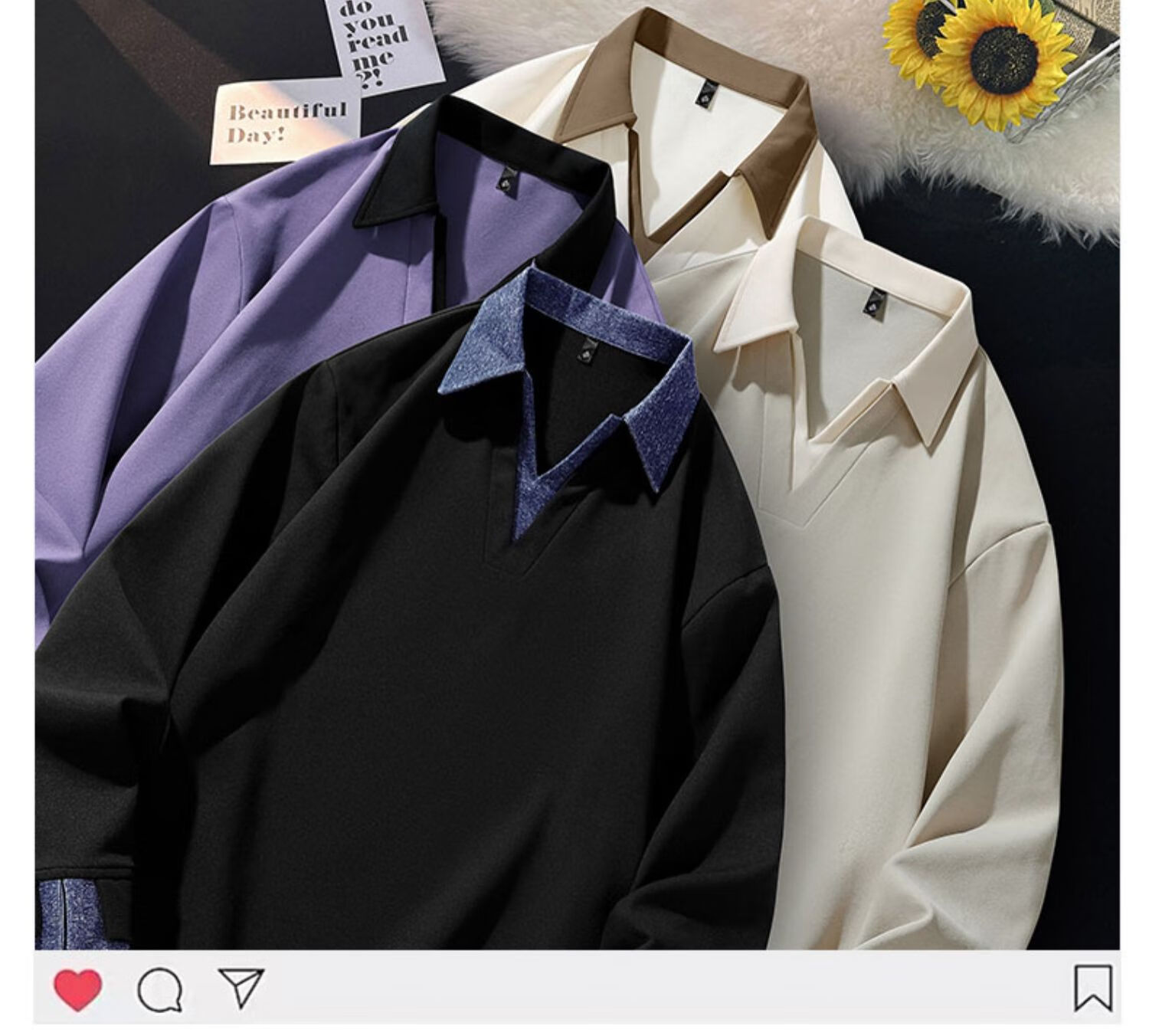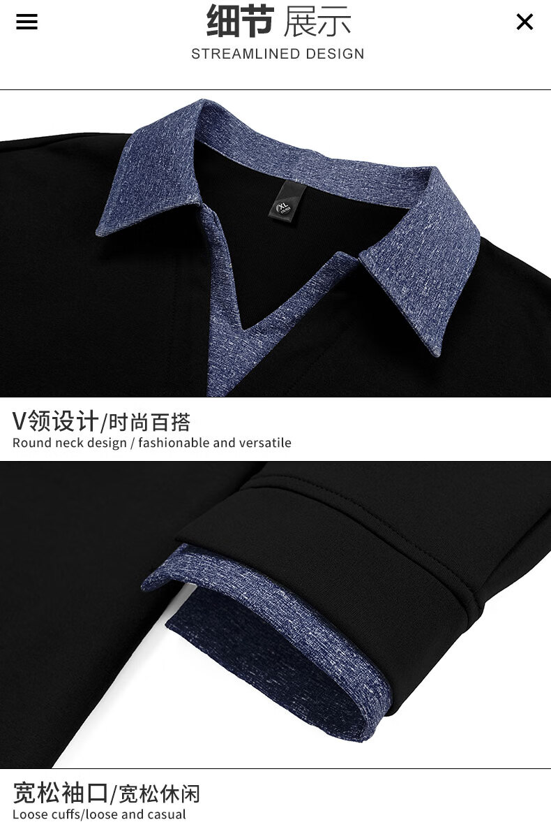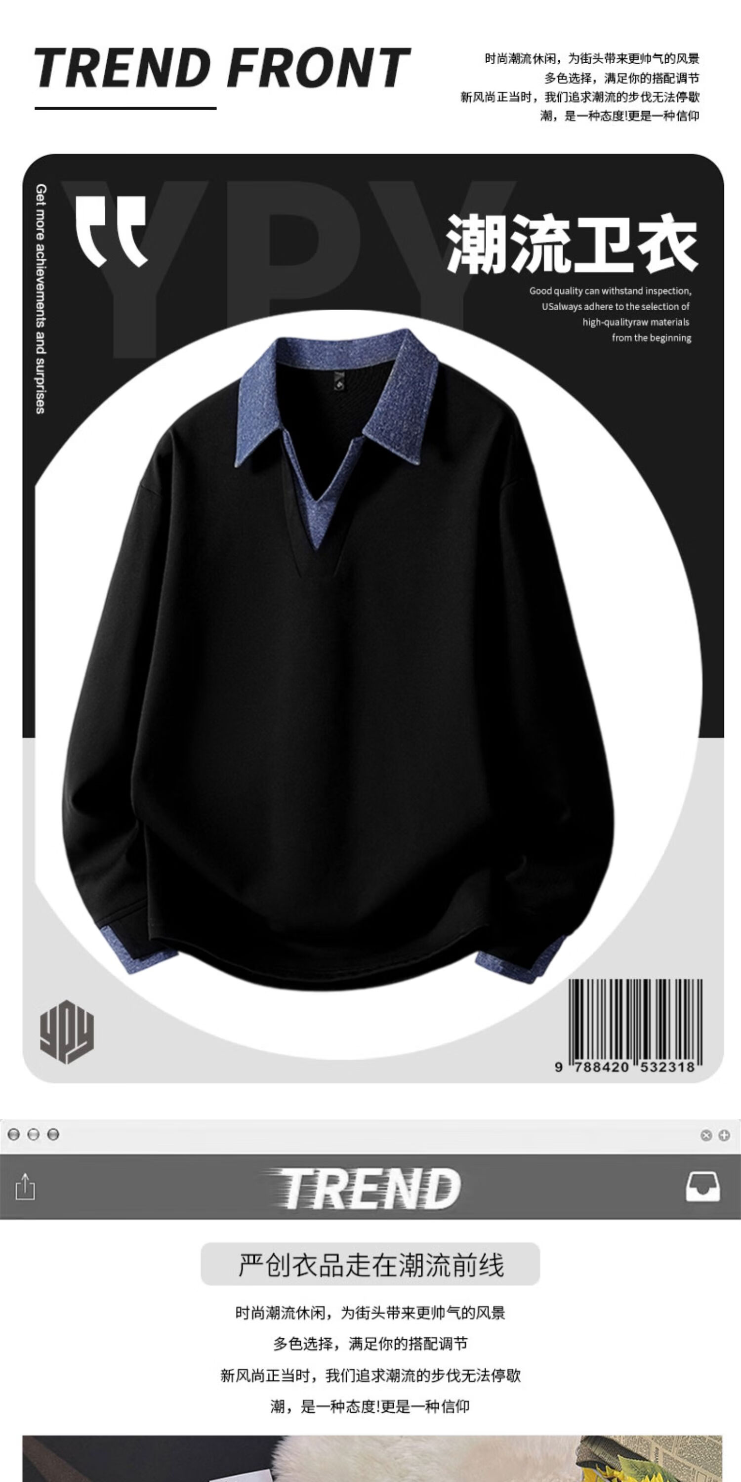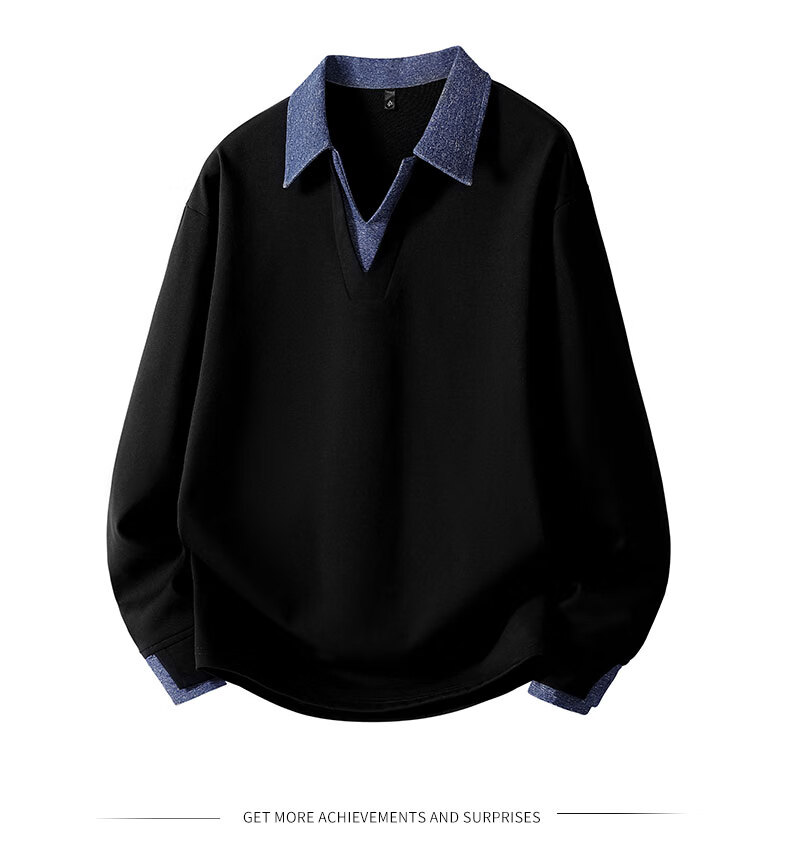 Catman American lapel color-blocked long-sleeved sweatshirt for men 2025 autumn and winter new loose casual fake two-piece top black 2XL