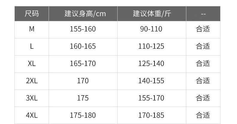 China (cm) 160-165/84-86 165-170 / 88-90 167-172 / 92-96 168-173 / 98-102 170-176 / 106-110