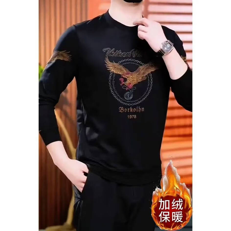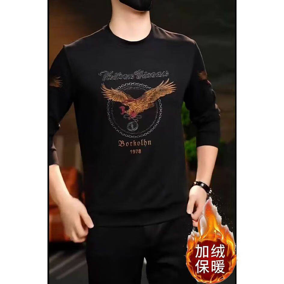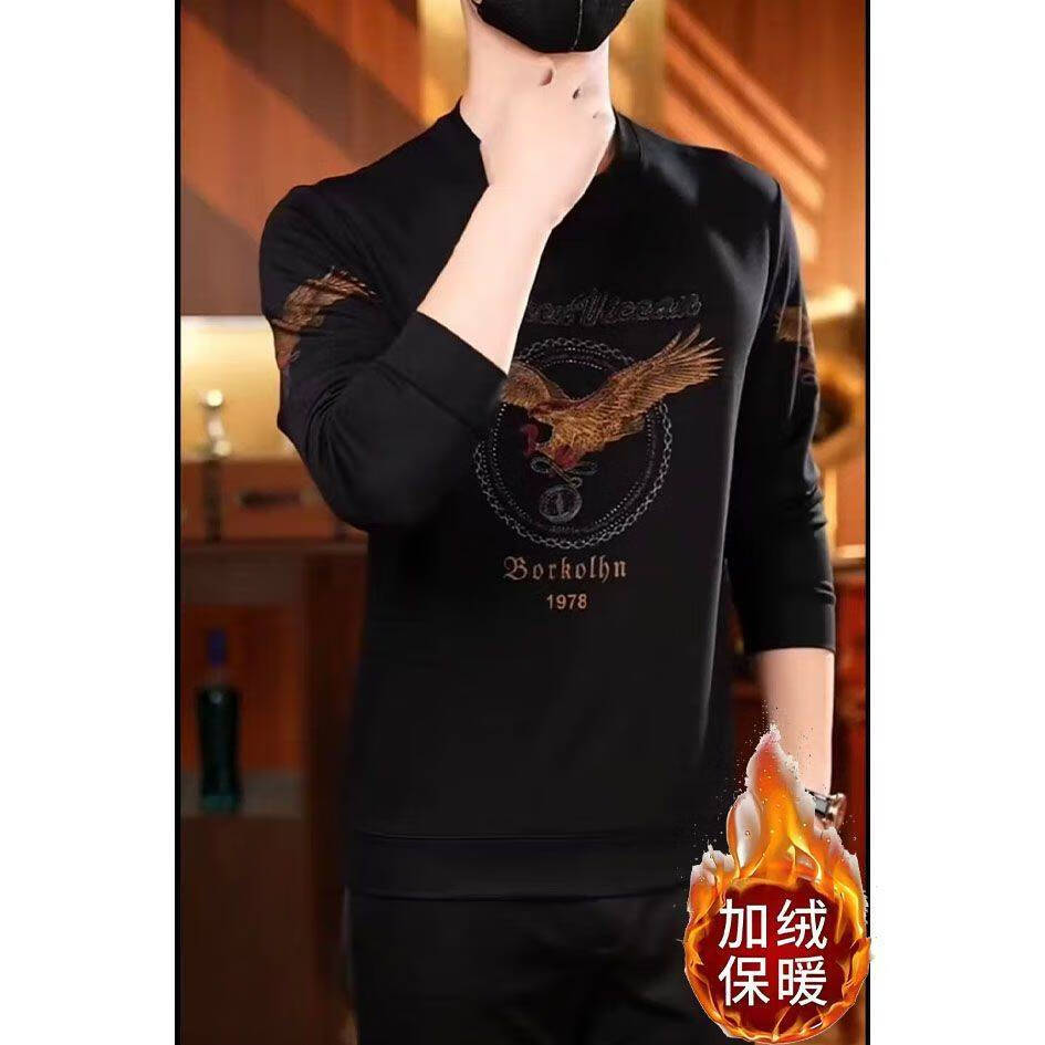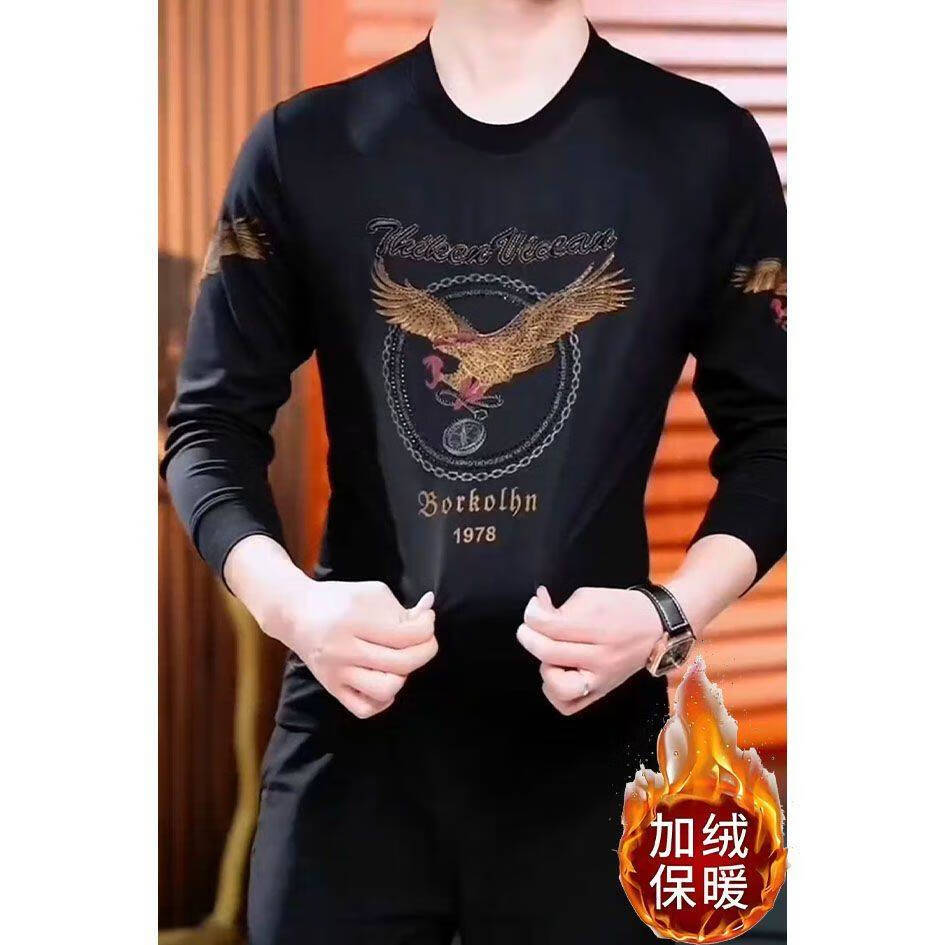 Autumn and winter new men's European high-quality velvet warm fashion round neck long-sleeved sweatshirt bottoming shirt xy black (velvet thickened and warm) 2XL 130-145Jin Jin equals 0.5 kg