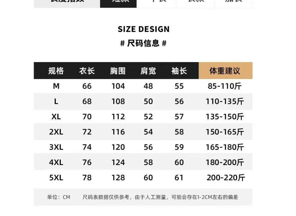 China (cm) 165 / 88-90 170 / 96-98 175 / 108-110 180 / 118-122 185 / 126-130