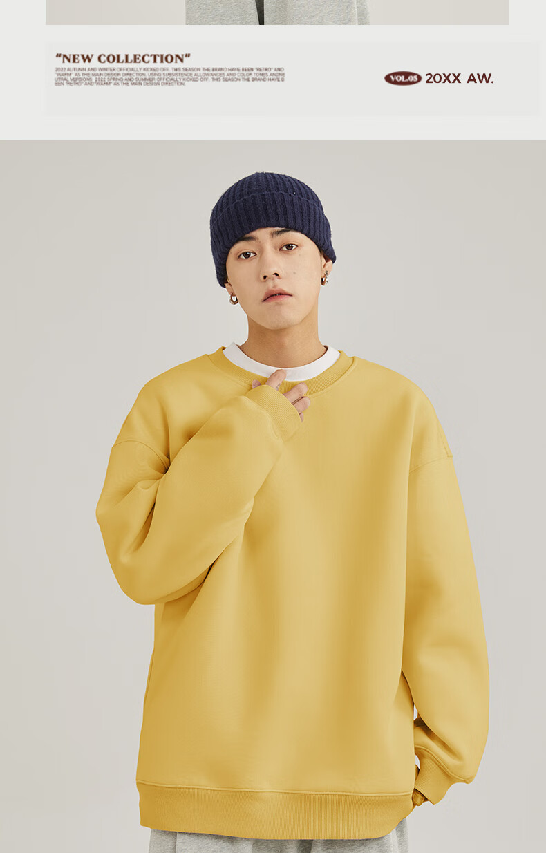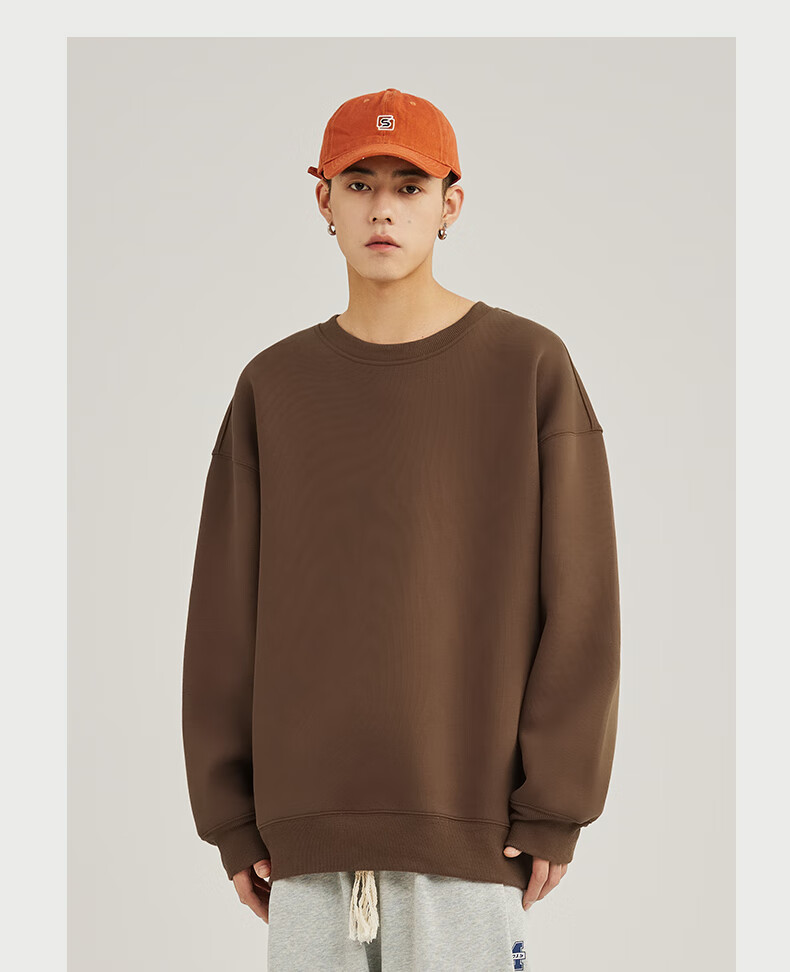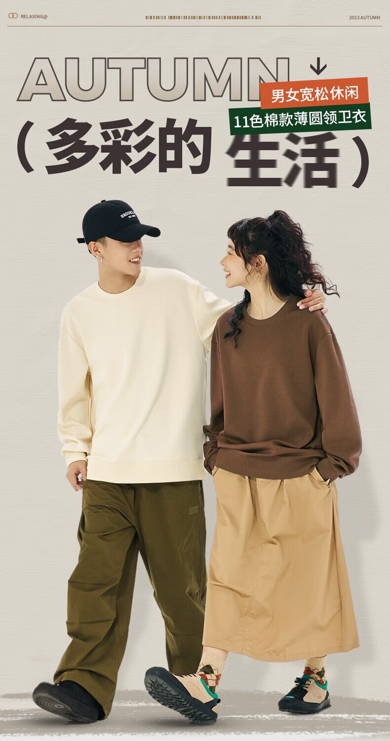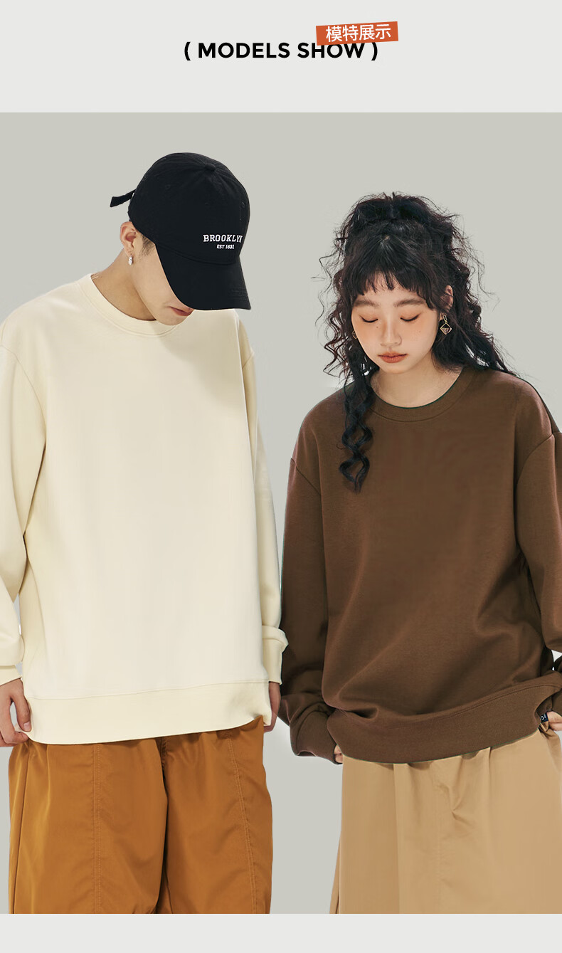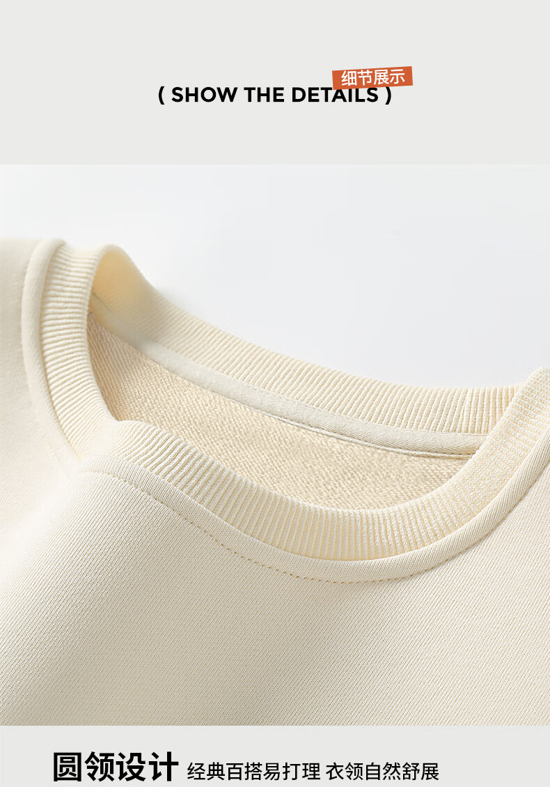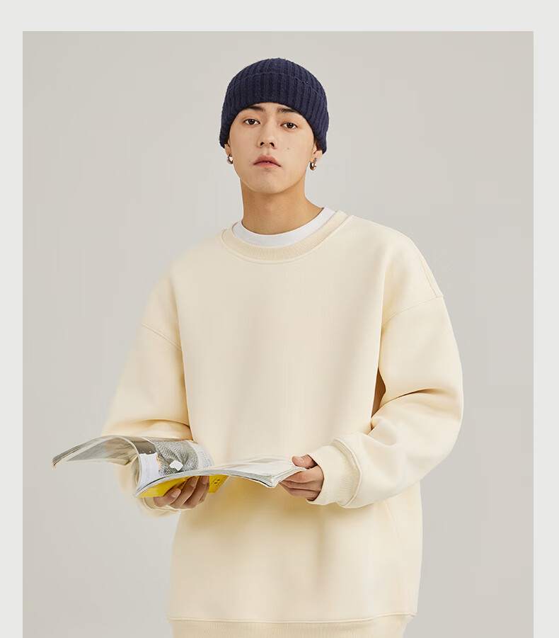 Baleno 2025 New Spring and Autumn Couple Heavy Sweater Small Boys Look Tall and Thin Casual Loose Trendy Brand Jacket Round Neck Sweater - Light Rice #Solid Color L