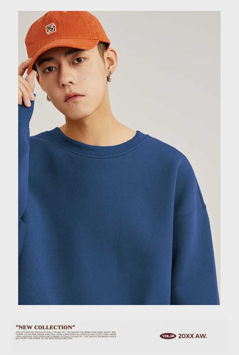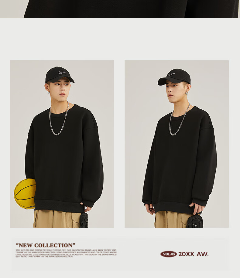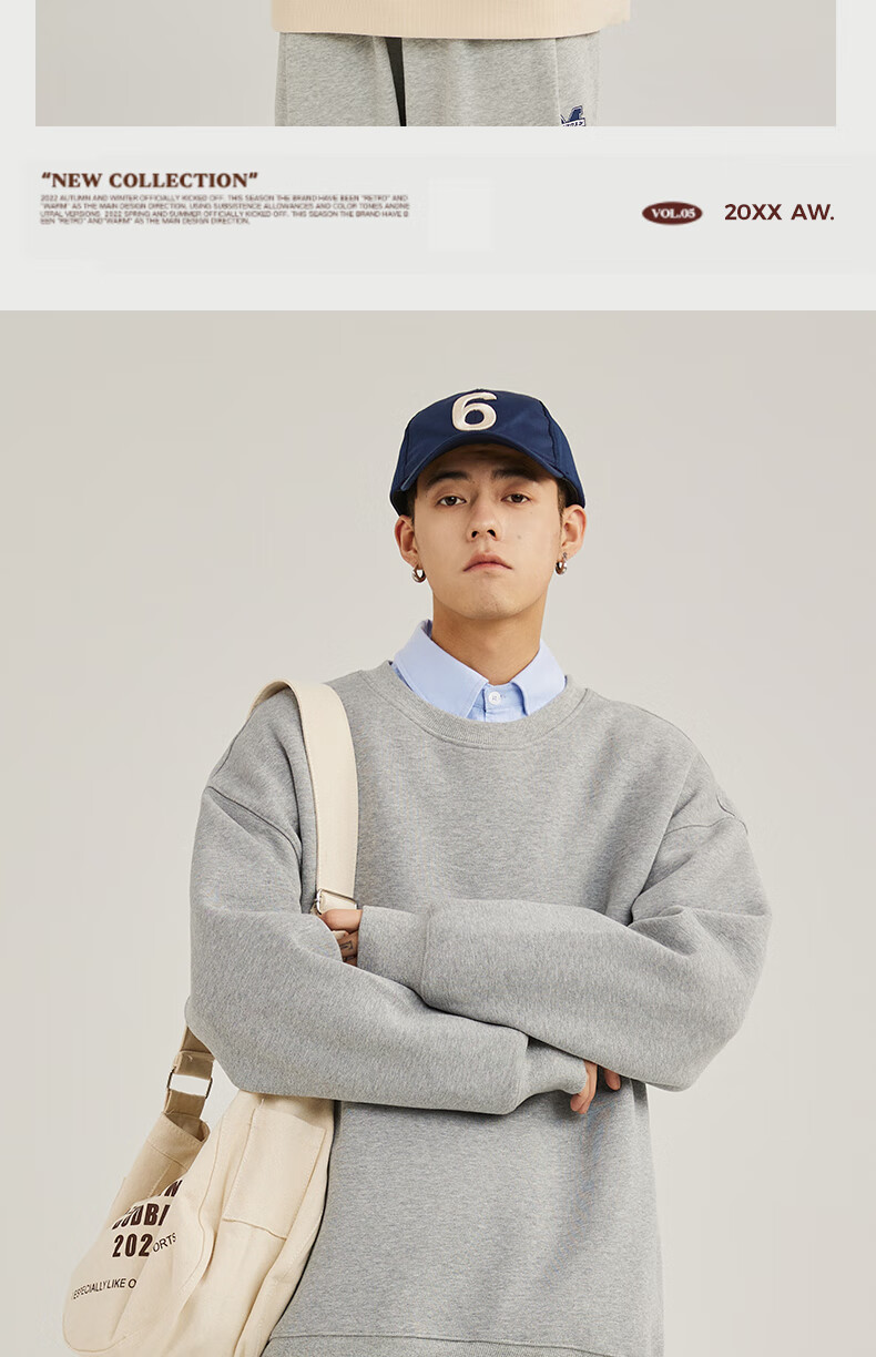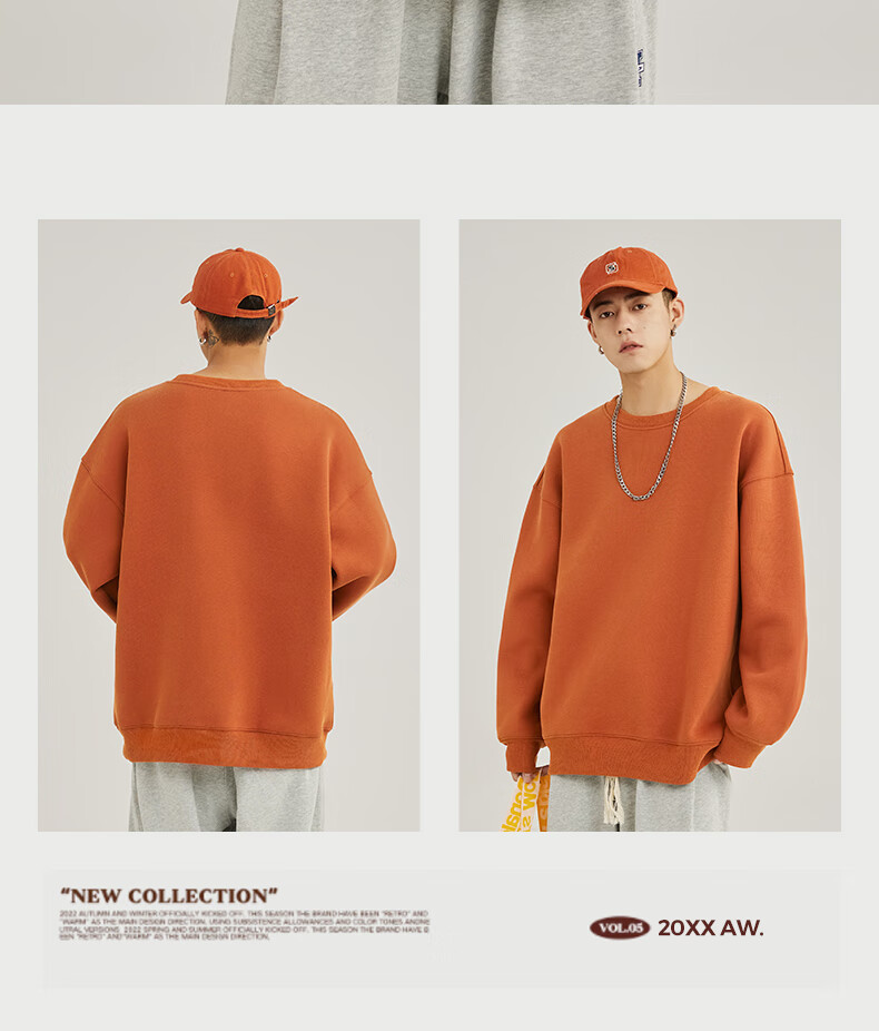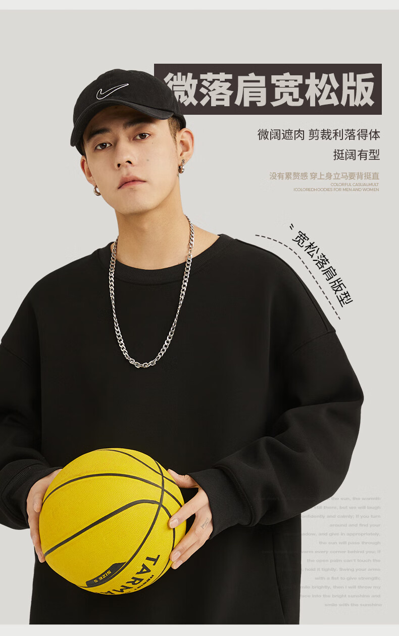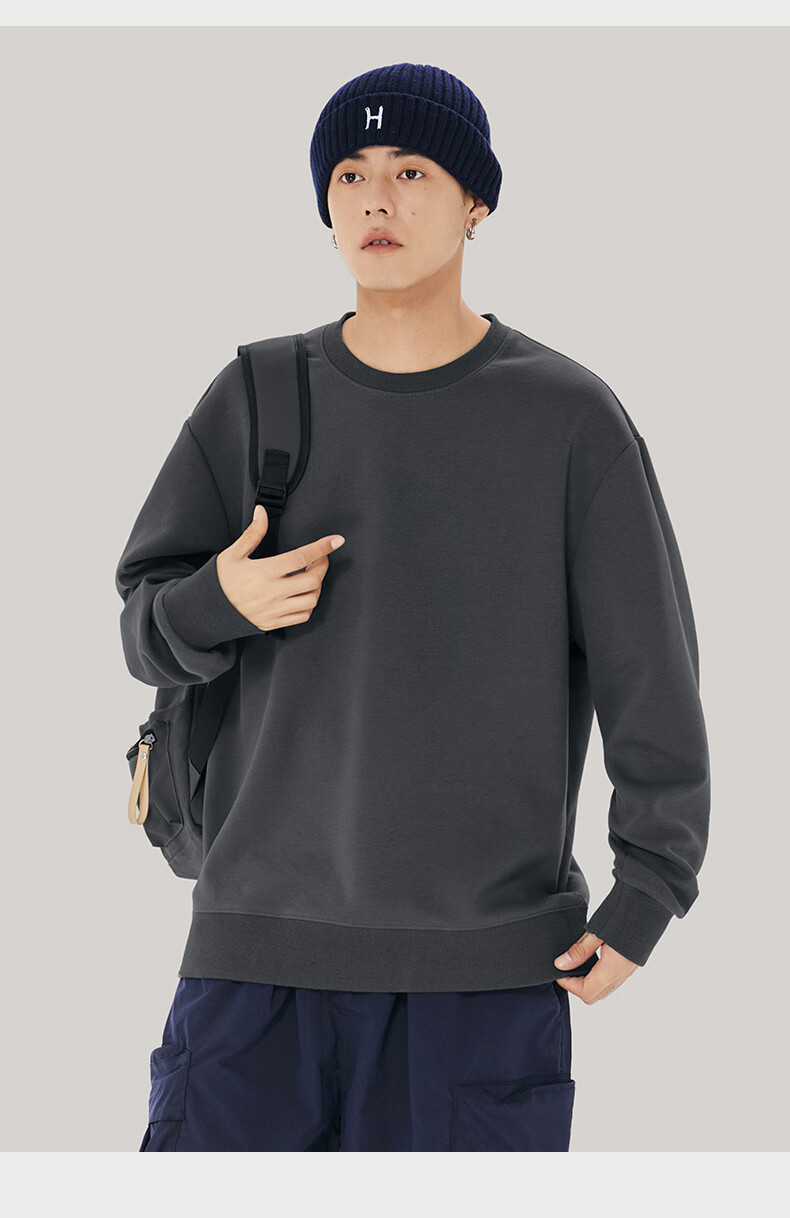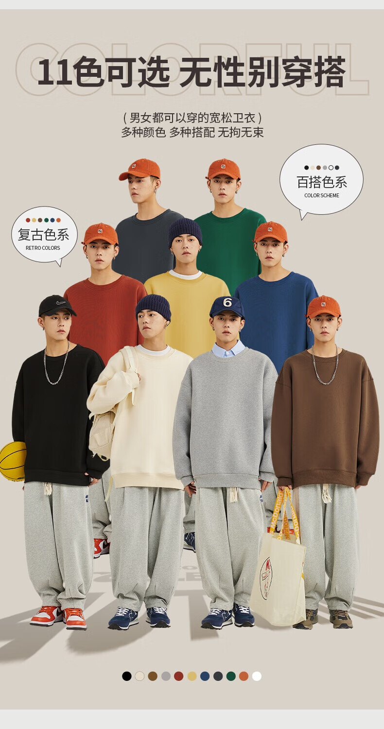 Baleno 2025 New Spring and Autumn Couple Heavy Sweater Small Boys Look Tall and Thin Casual Loose Trendy Brand Jacket Round Neck Sweater - Light Rice #Solid Color L