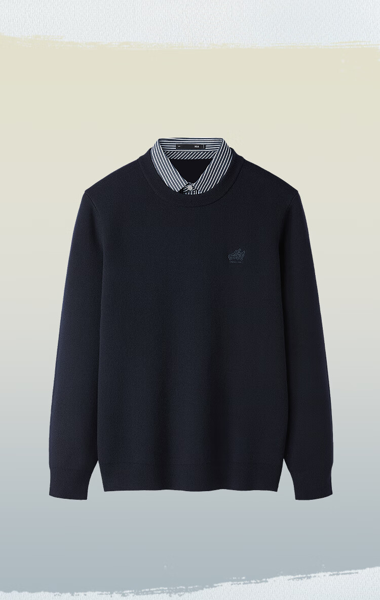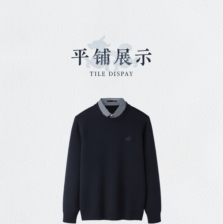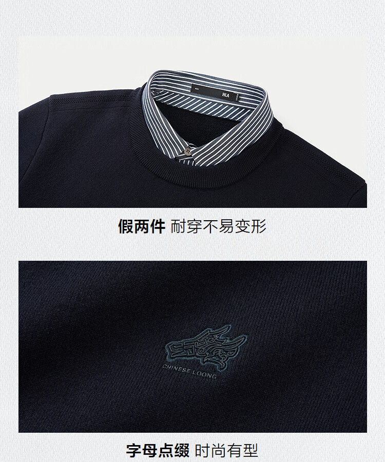 HLA Hailan House Chinese Dragon Series Velvet Long Sleeve Sweater Men's 25 Fake Two-piece Sweater Men's Winter