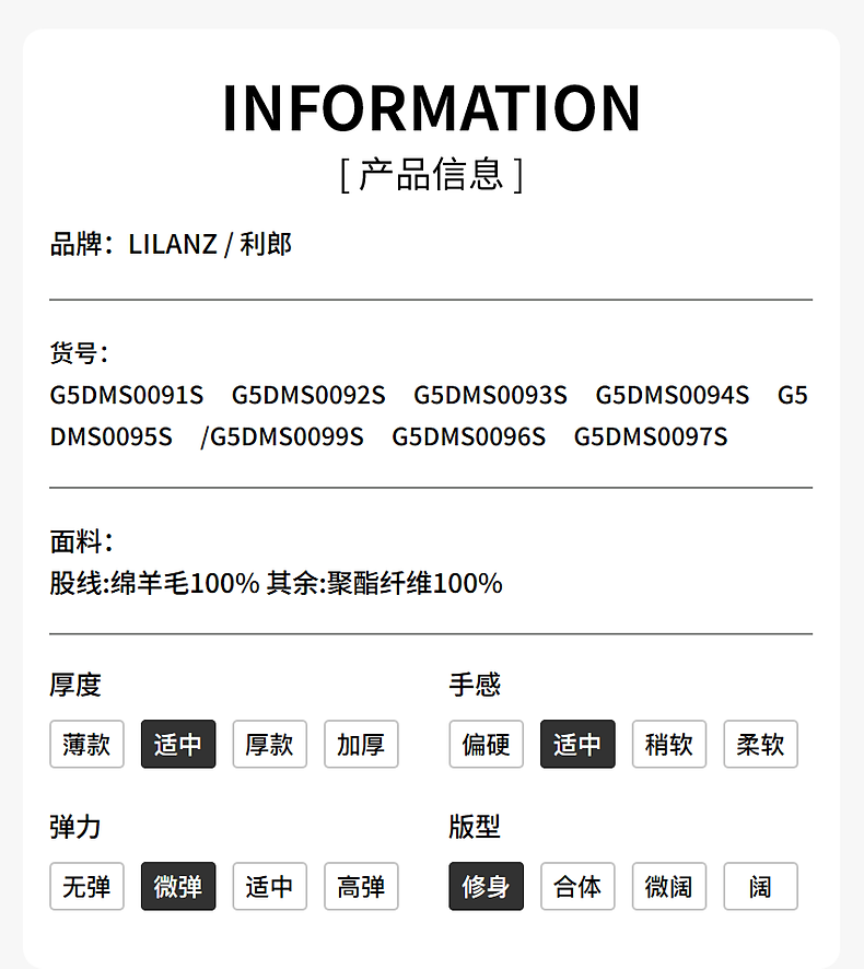 China (cm) 165 / 88-90 170 / 96-98 175 / 108-110 180 / 118-122 185 / 126-130