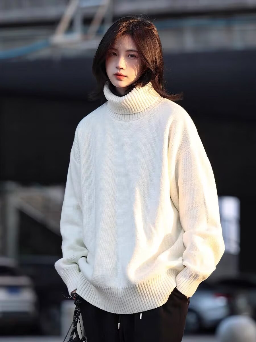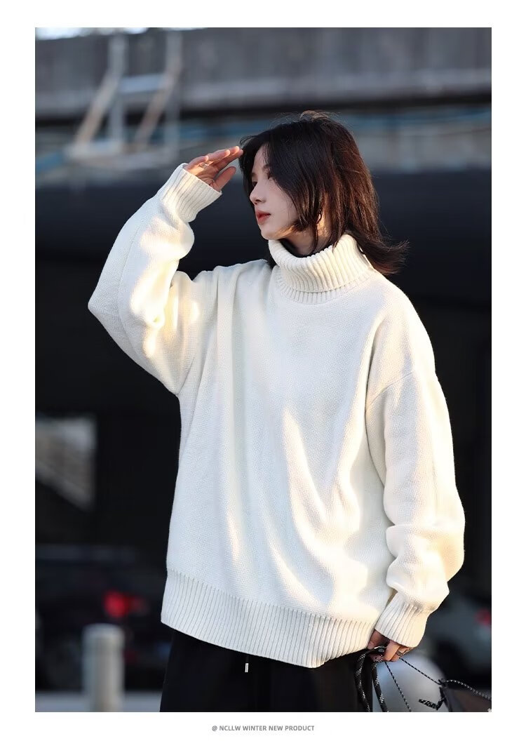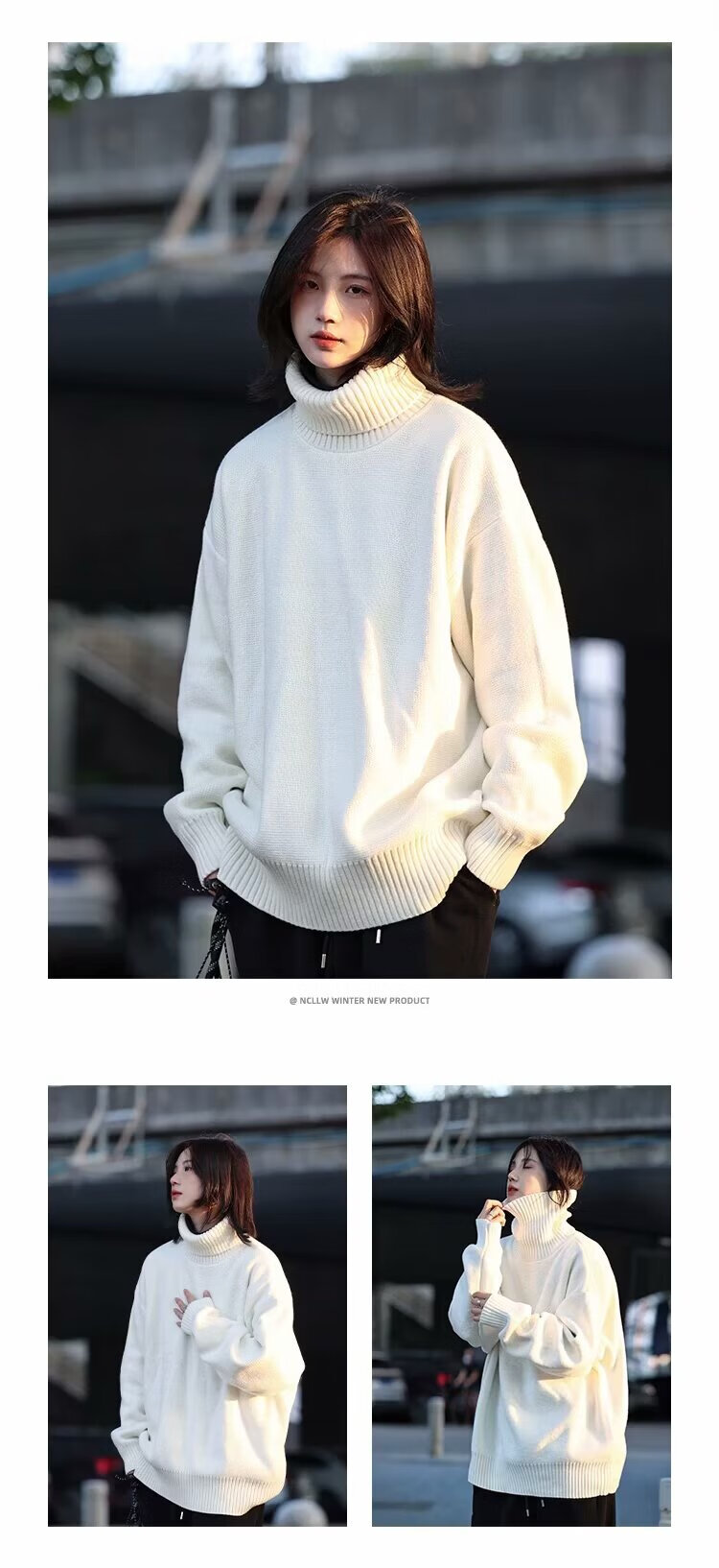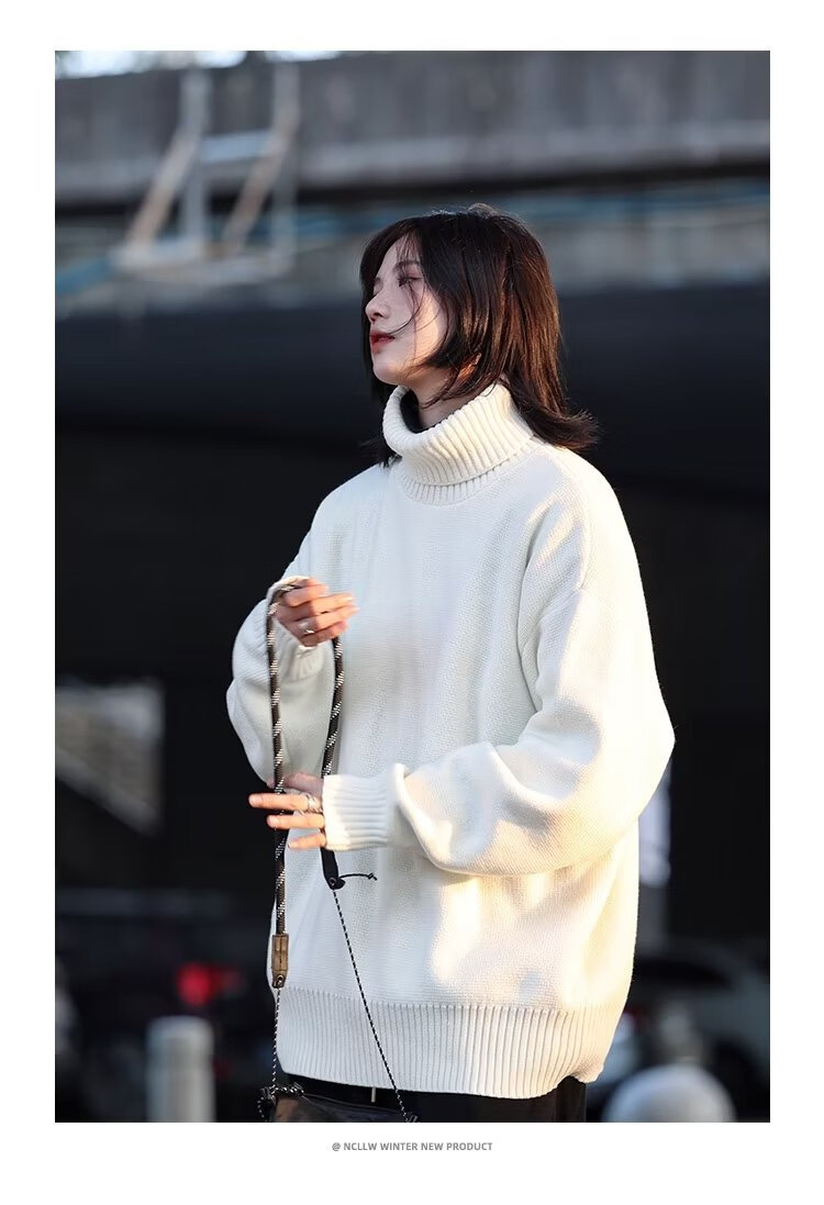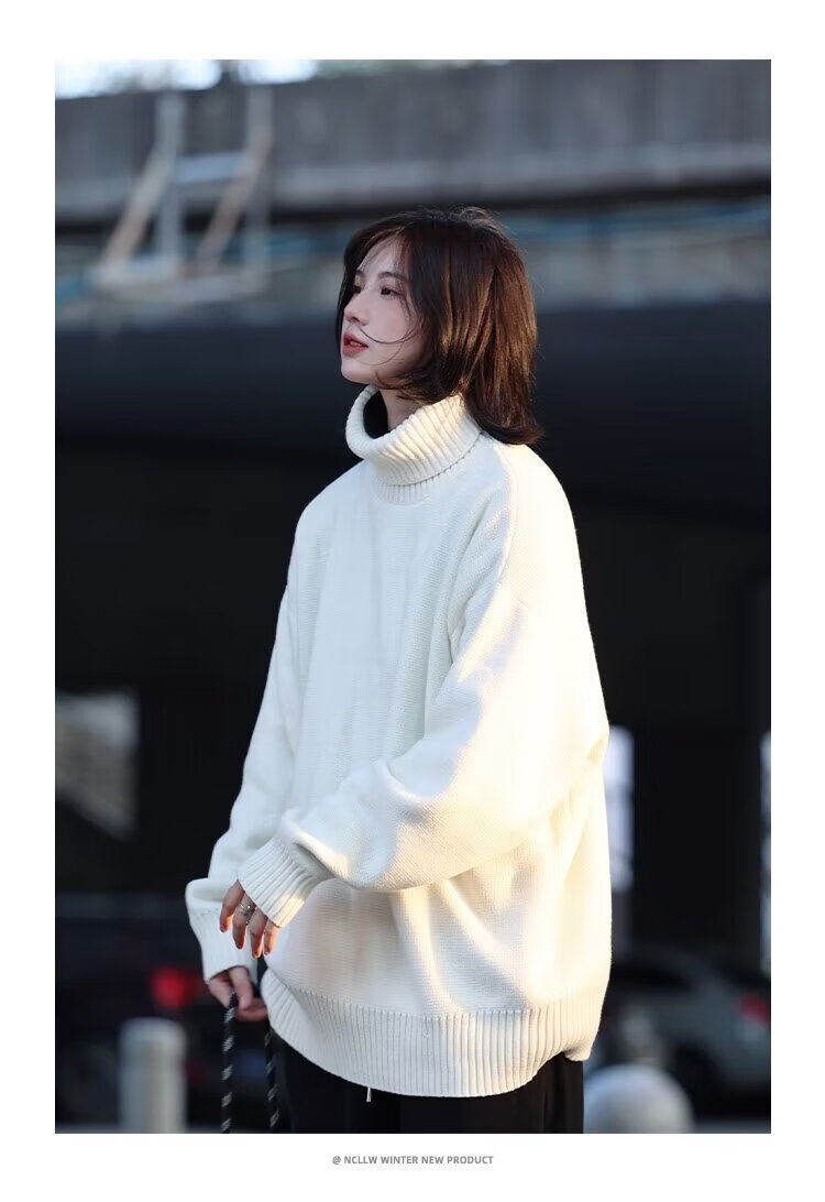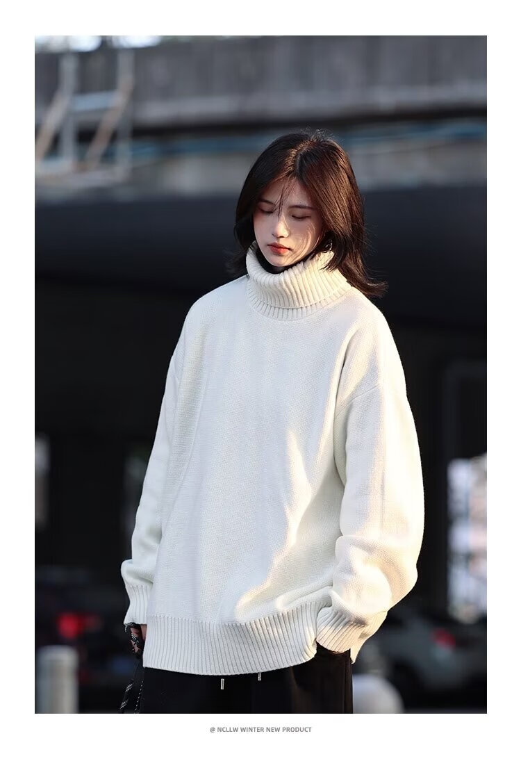 POUM turtleneck sweater for men and women, spring and autumn loose knitted sweater for men, retro lazy solid color bottoming shirt SM-003 white XL recommended 110-140Jin Jin equals 0.5 kg