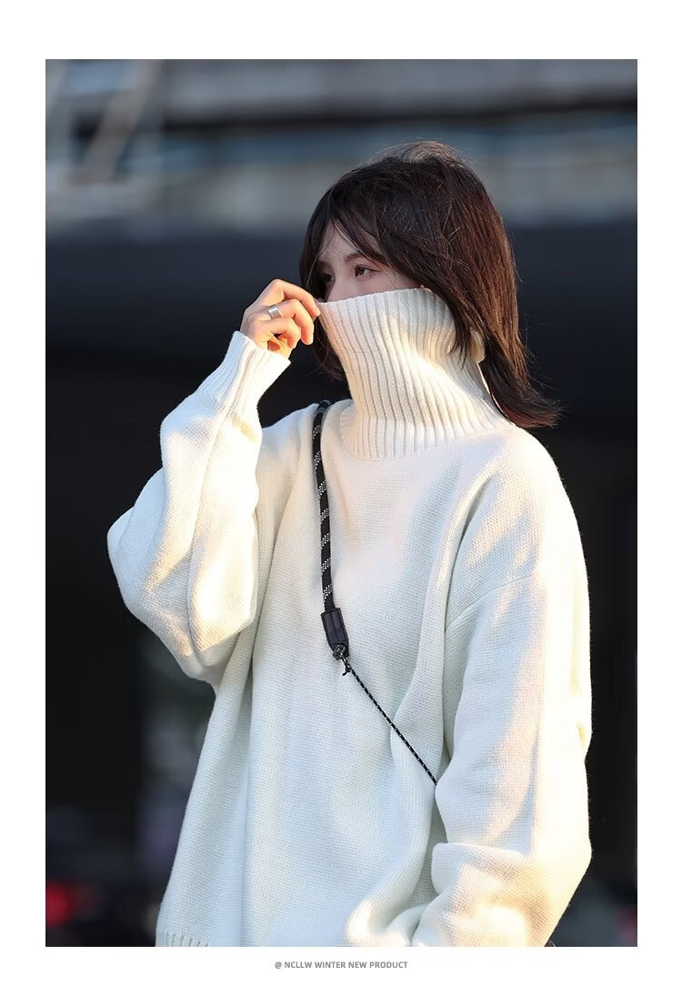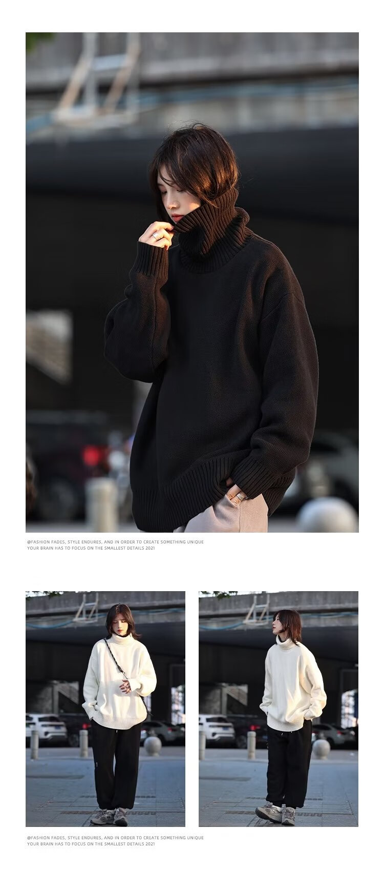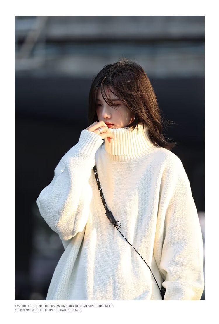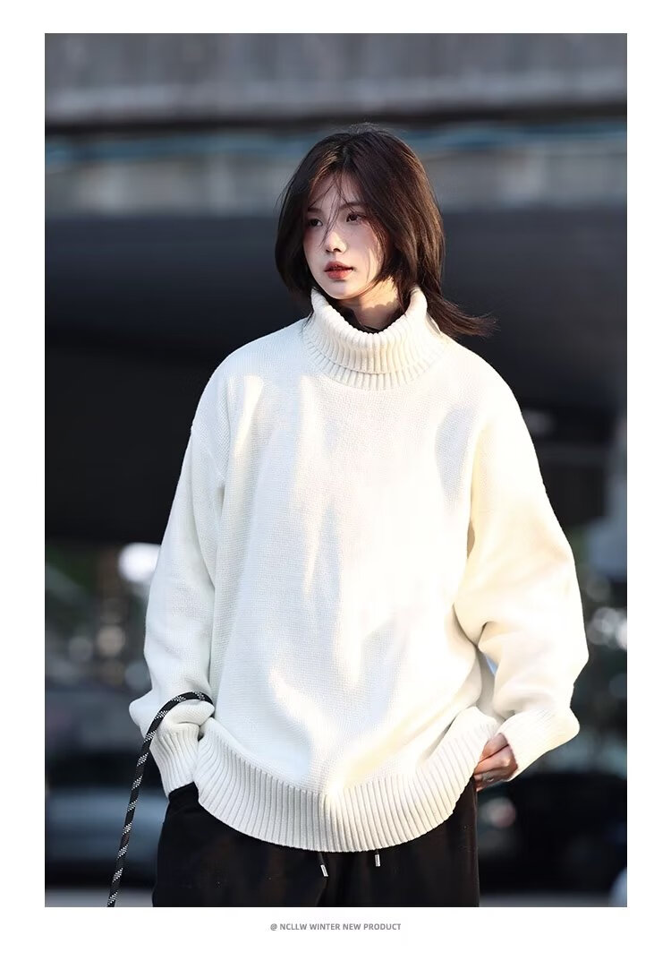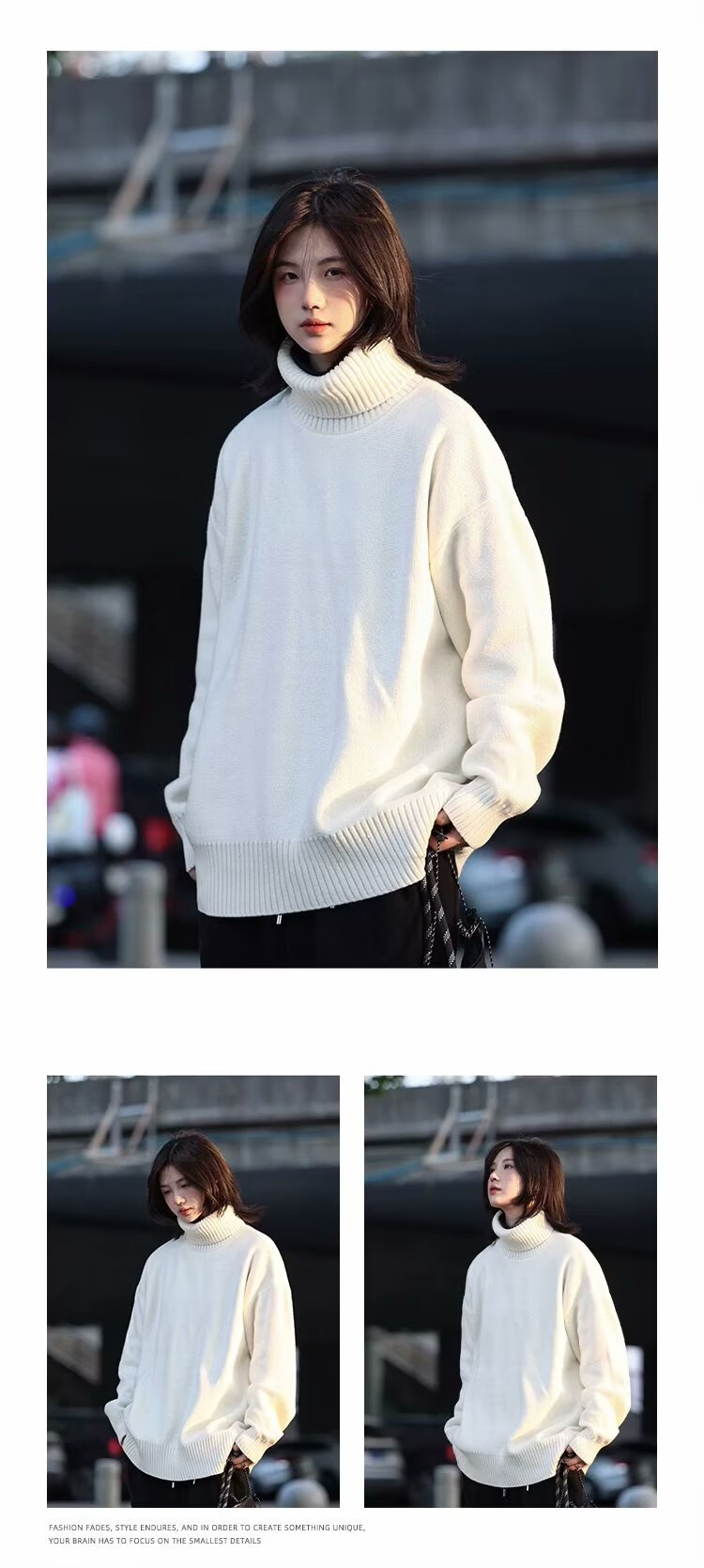 POUM turtleneck sweater for men and women, spring and autumn loose knitted sweater for men, retro lazy solid color bottoming shirt SM-003 white XL recommended 110-140Jin Jin equals 0.5 kg