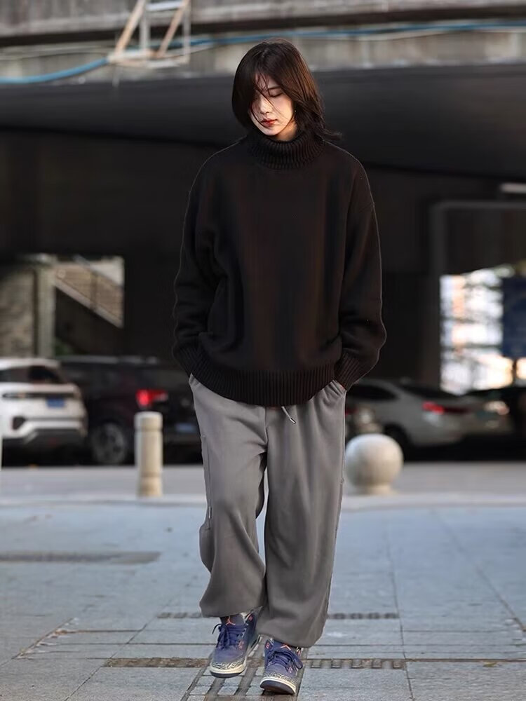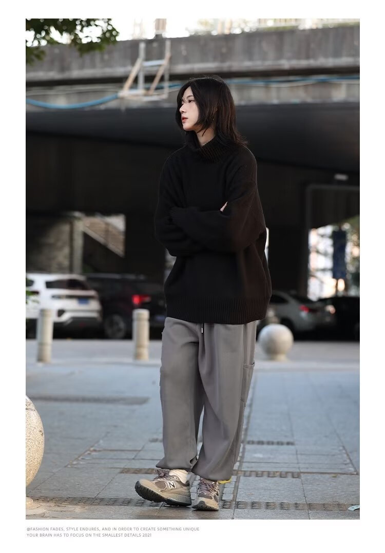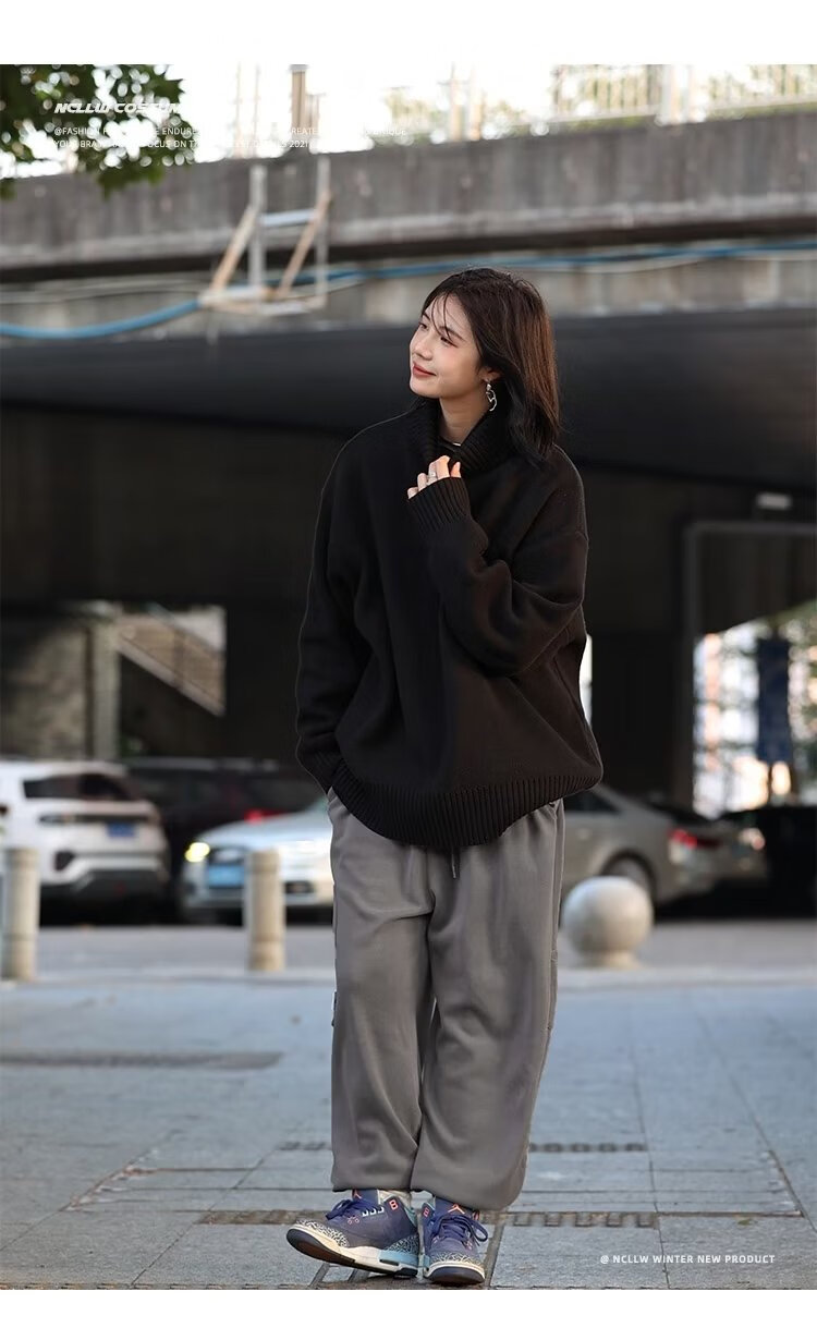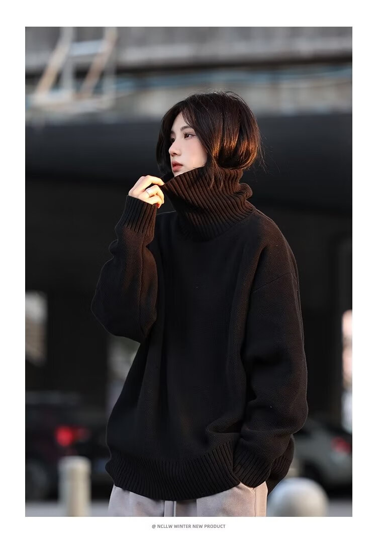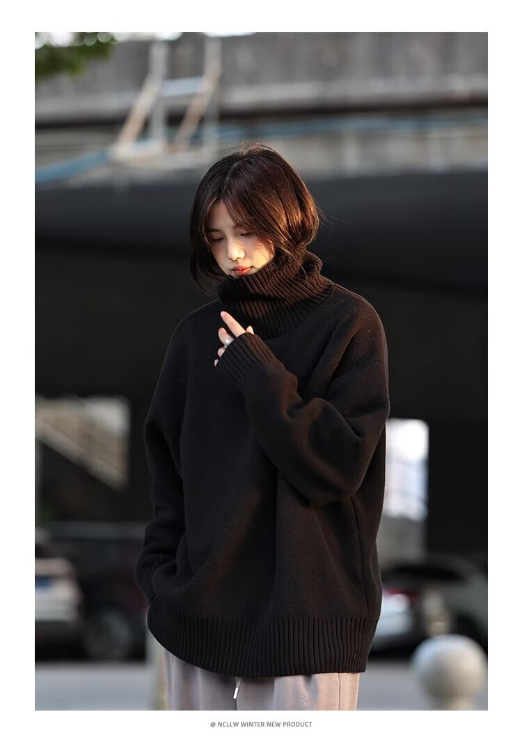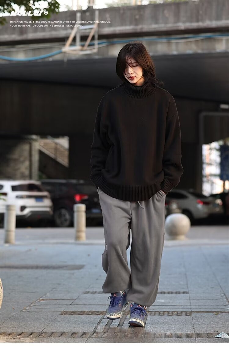 POUM turtleneck sweater for men and women, spring and autumn loose knitted sweater for men, retro lazy solid color bottoming shirt SM-003 white XL recommended 110-140Jin Jin equals 0.5 kg