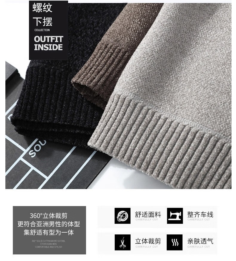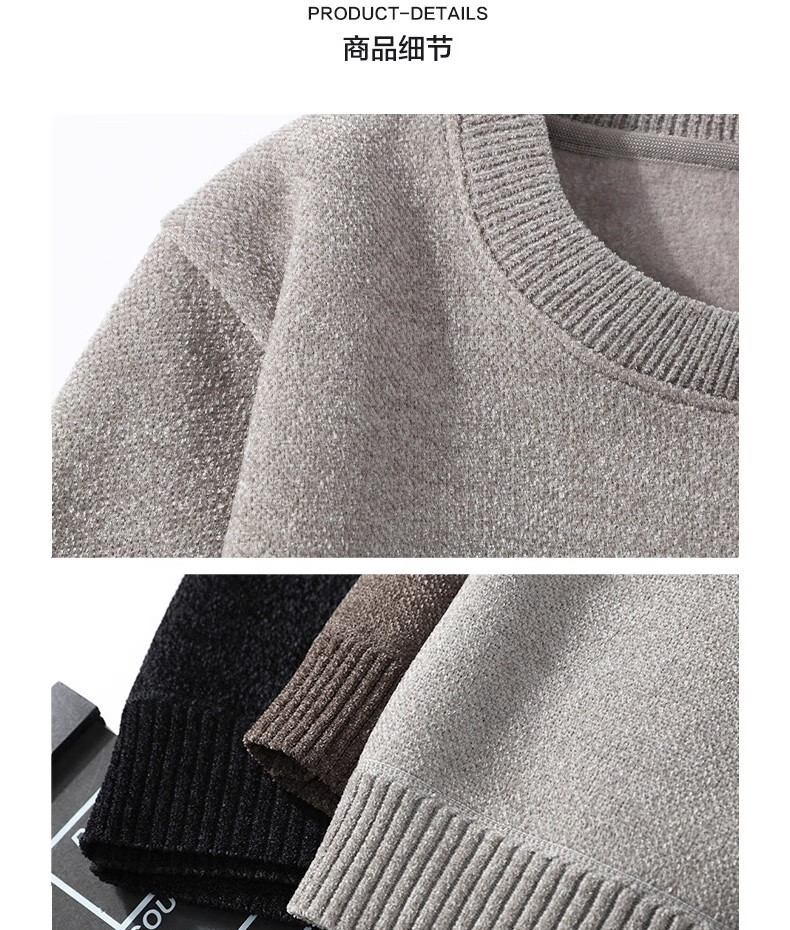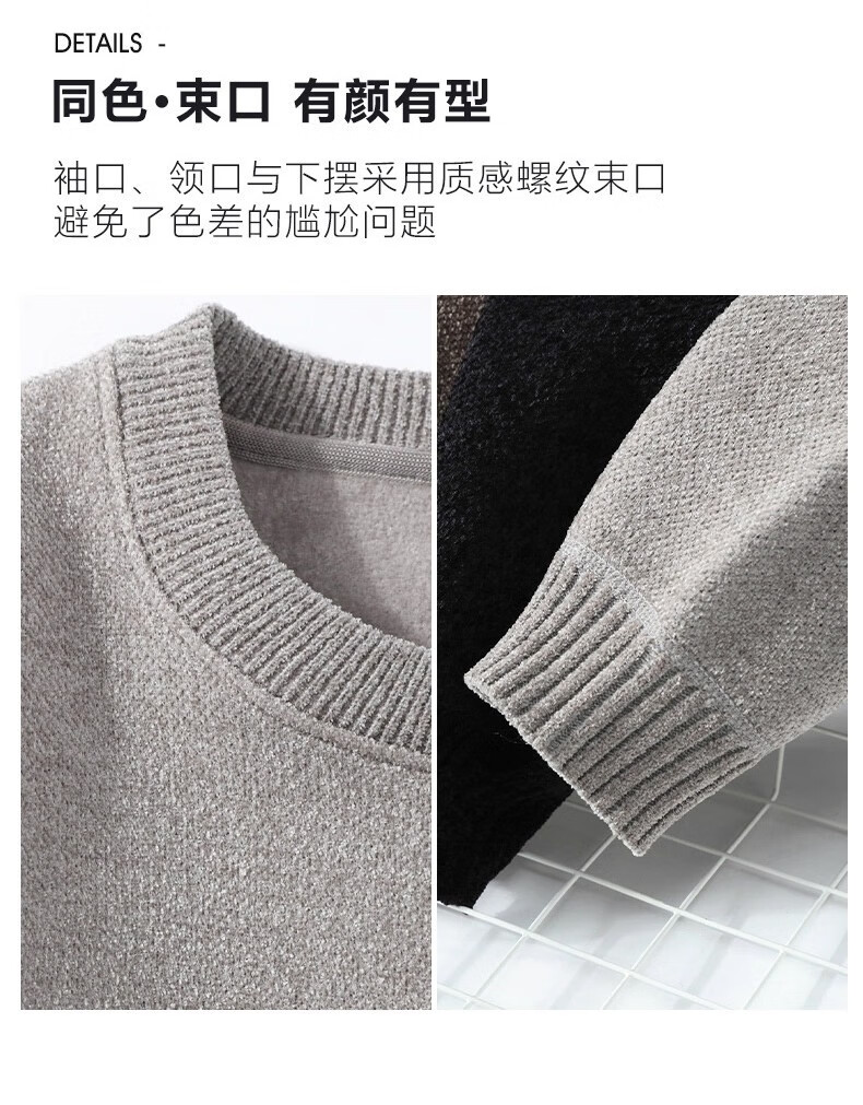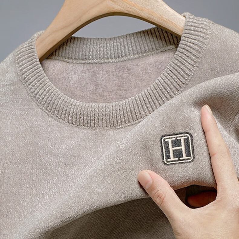 Yalu autumn and winter sweater men's round neck one-piece velvet jacket plus velvet thickened chenille warm embroidered sweatshirt bottoming shirt black plus velvet XL recommended 140-160Jin Jin equals 0.5 kg