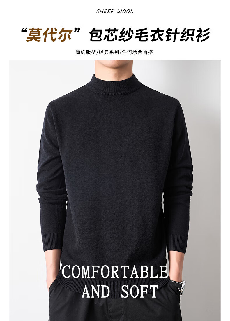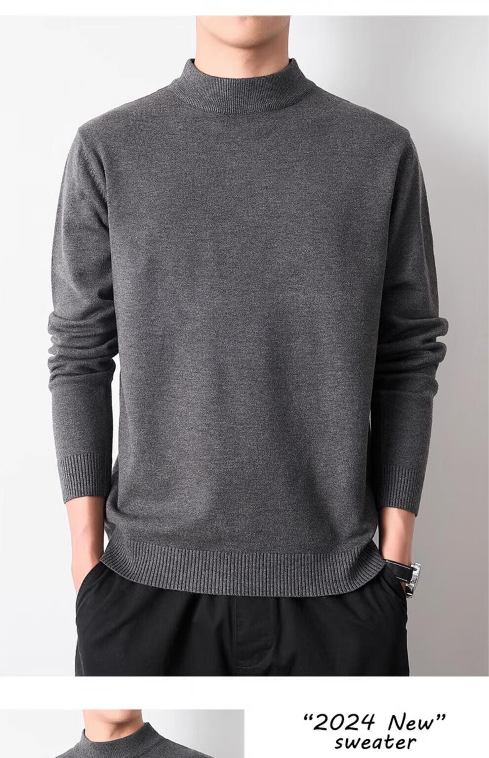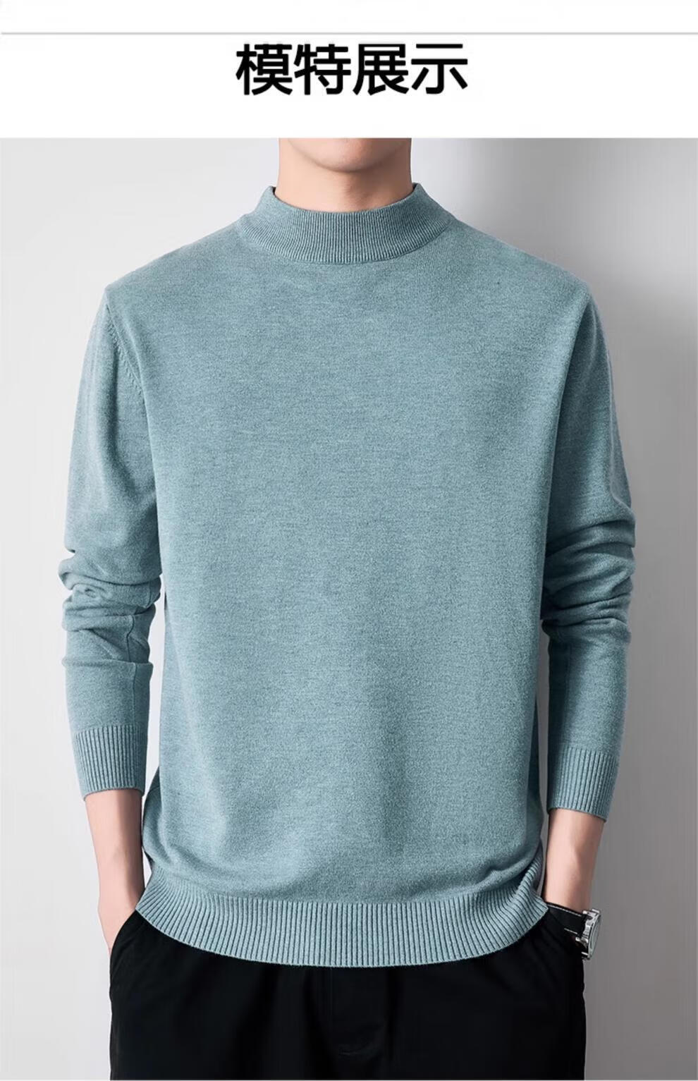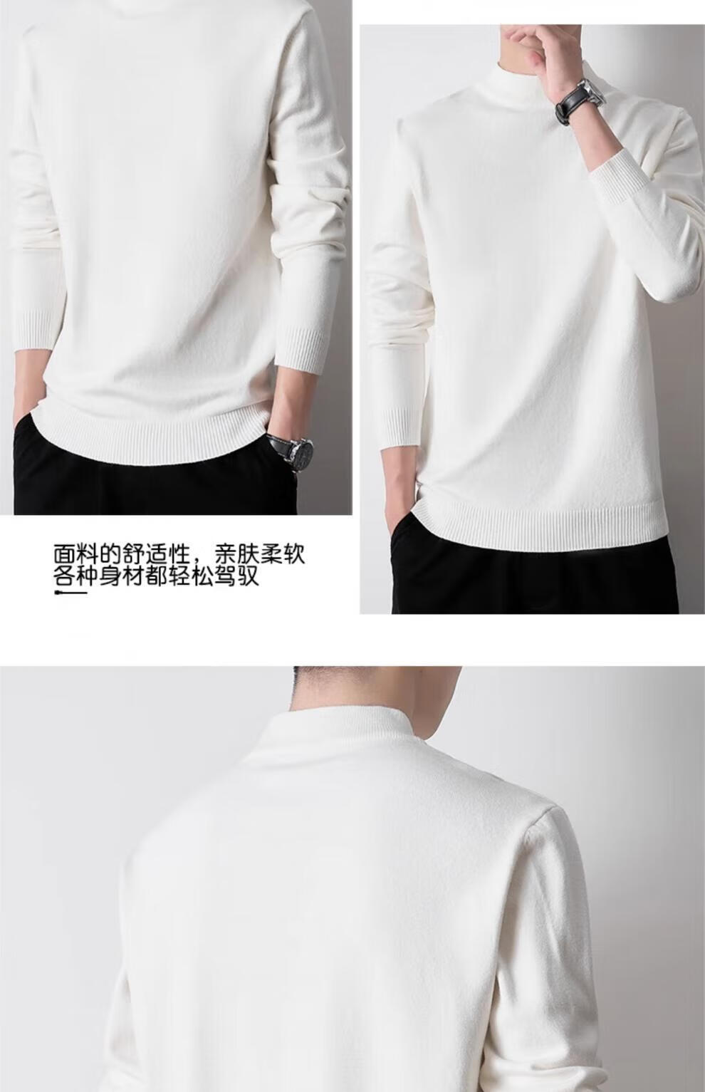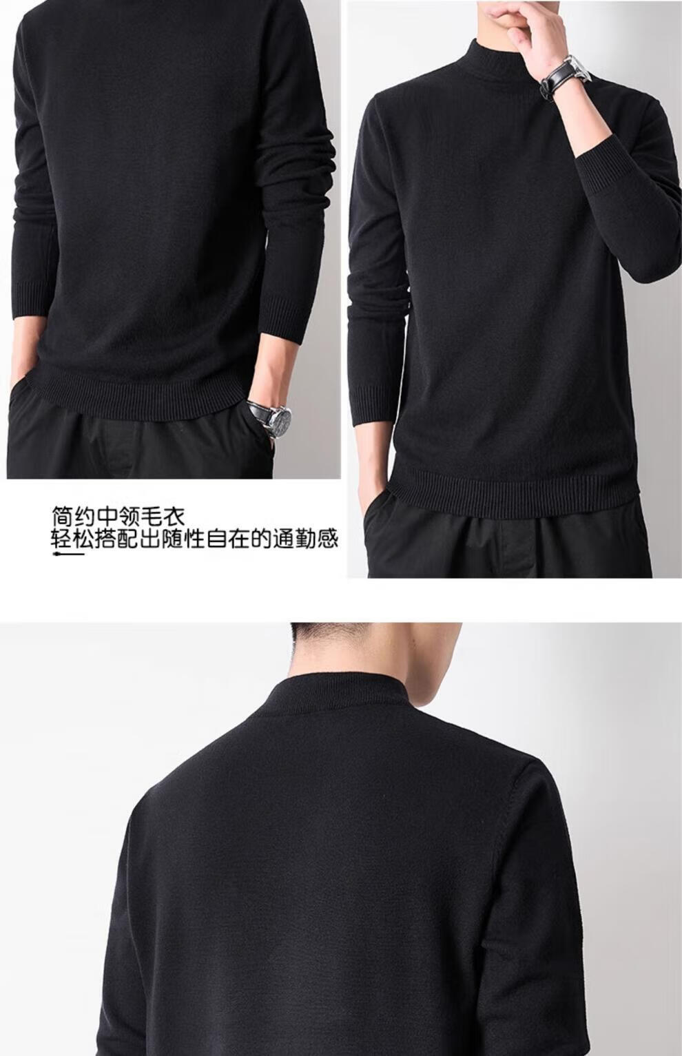 Playboy (PLAYBOY) men's pullover half turtleneck sweater men's autumn and winter velvet black inner mid-collar knitted bottoming shirt round neck white 3XL recommended 165-185Jin Jin equals 0.5 kg