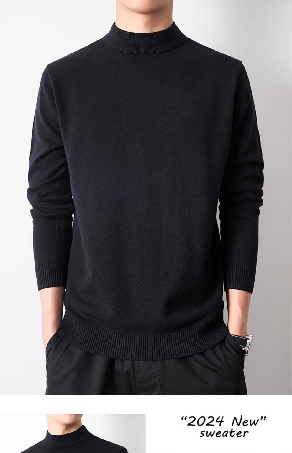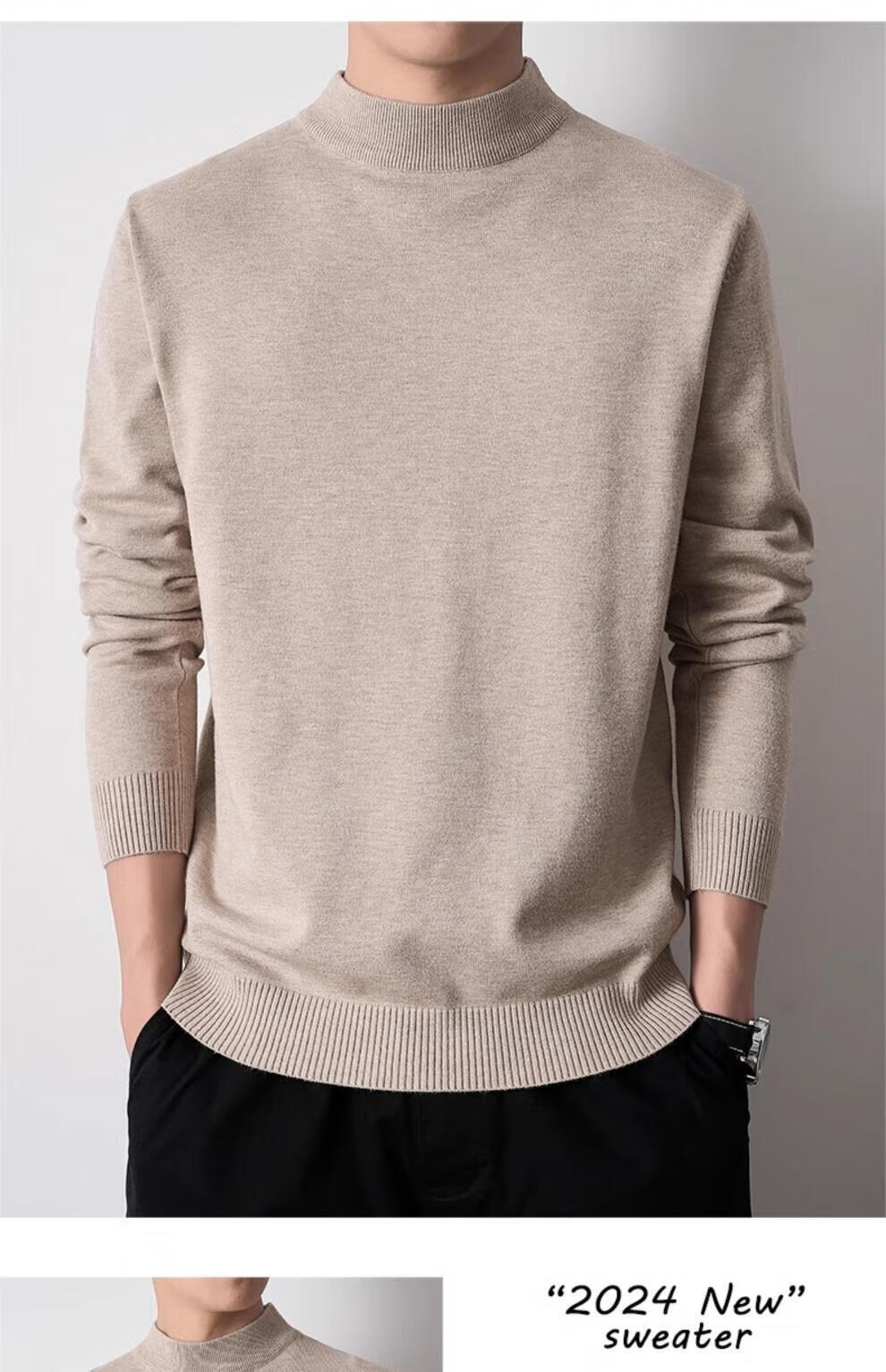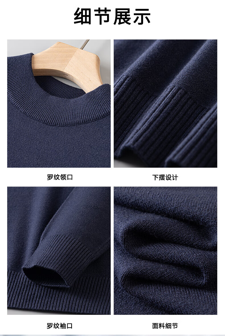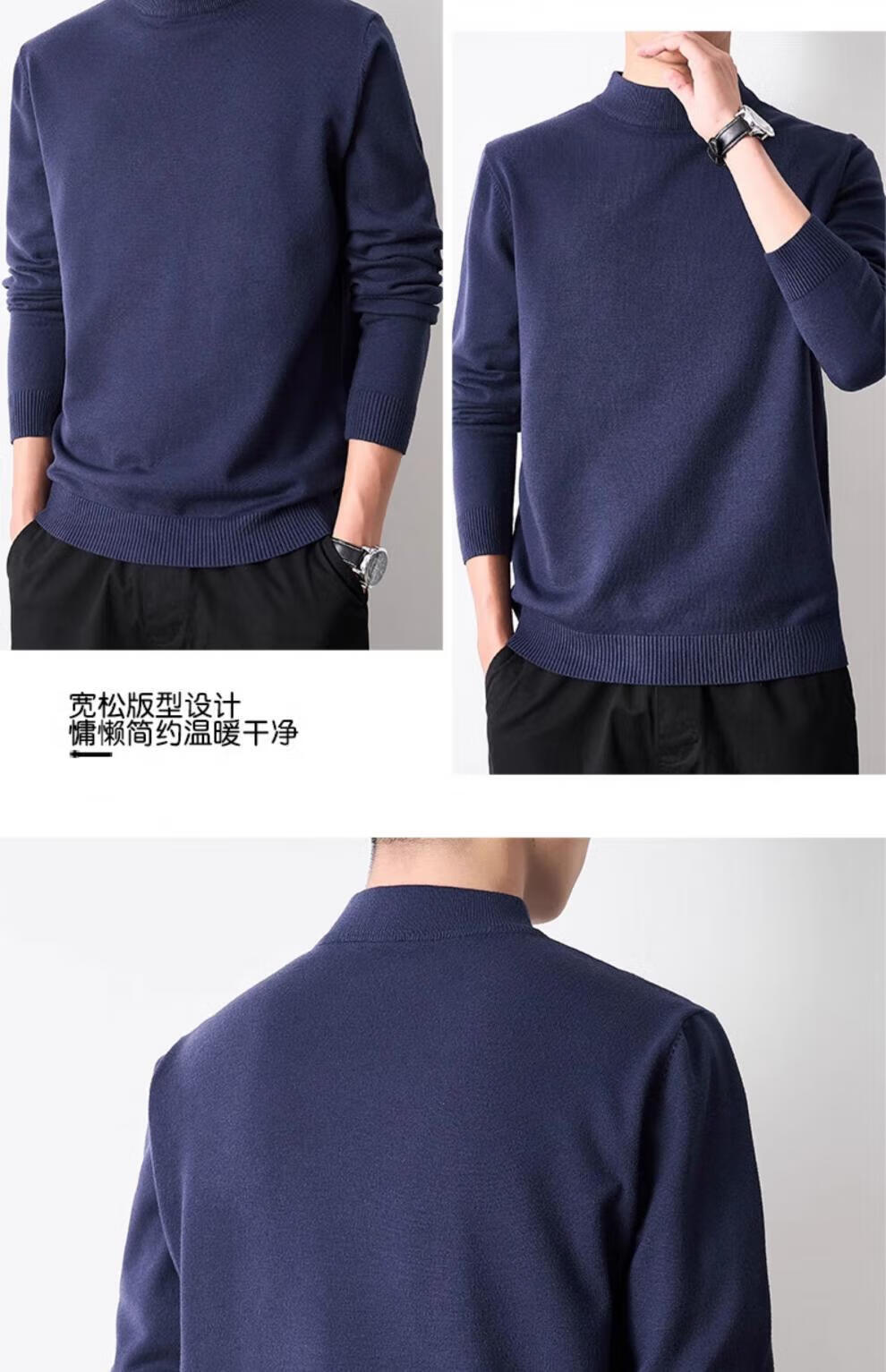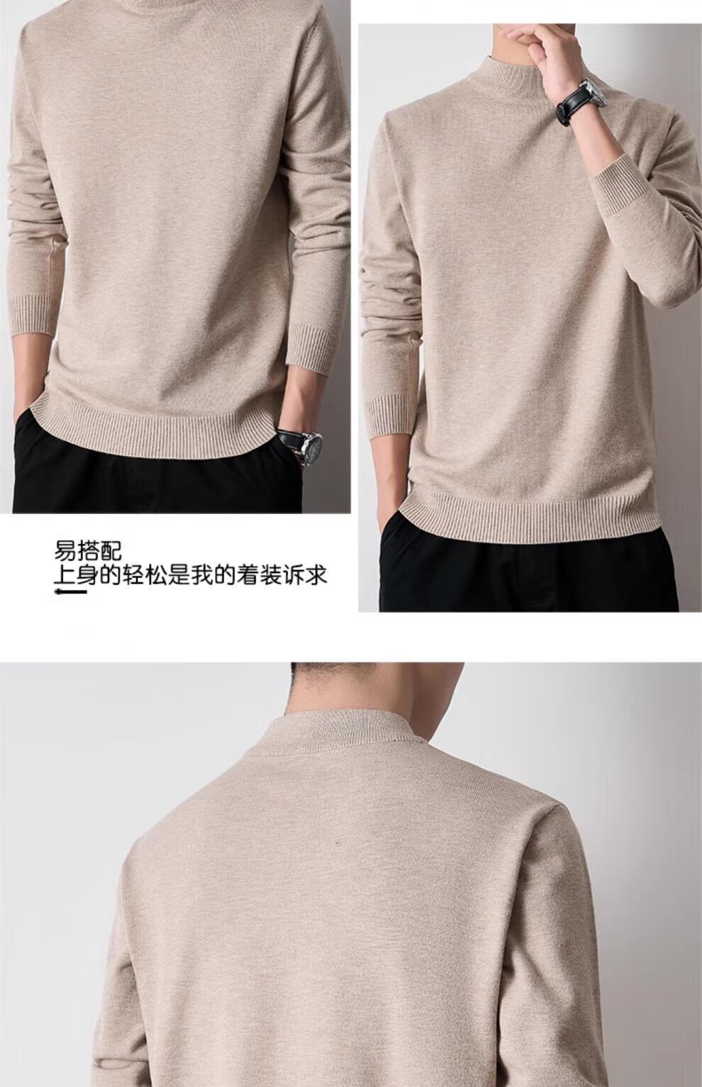 Playboy (PLAYBOY) men's pullover half turtleneck sweater men's autumn and winter velvet black inner mid-collar knitted bottoming shirt round neck white 3XL recommended 165-185Jin Jin equals 0.5 kg