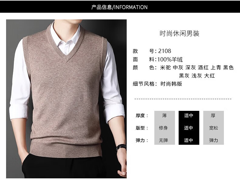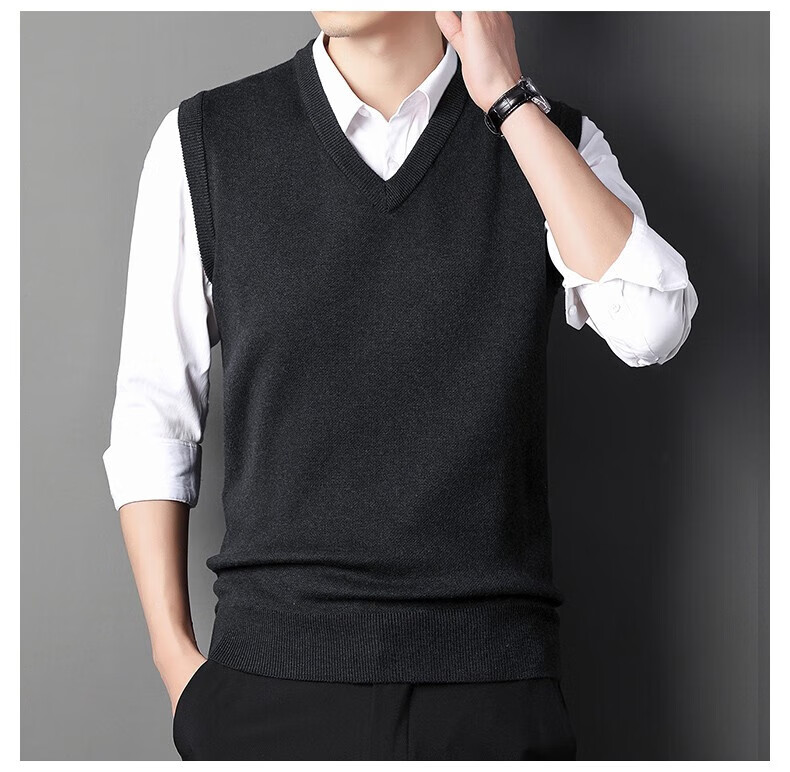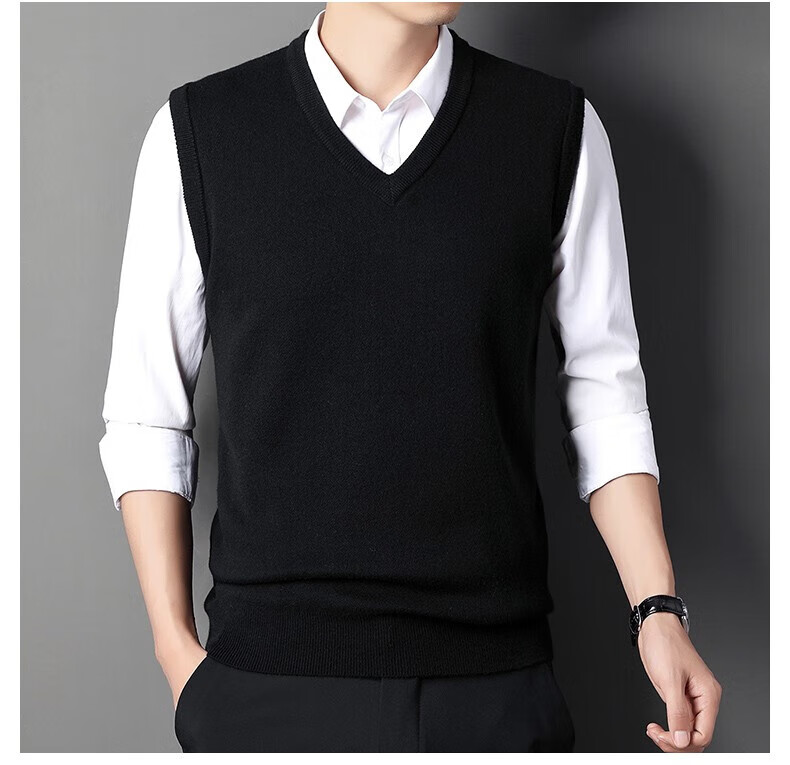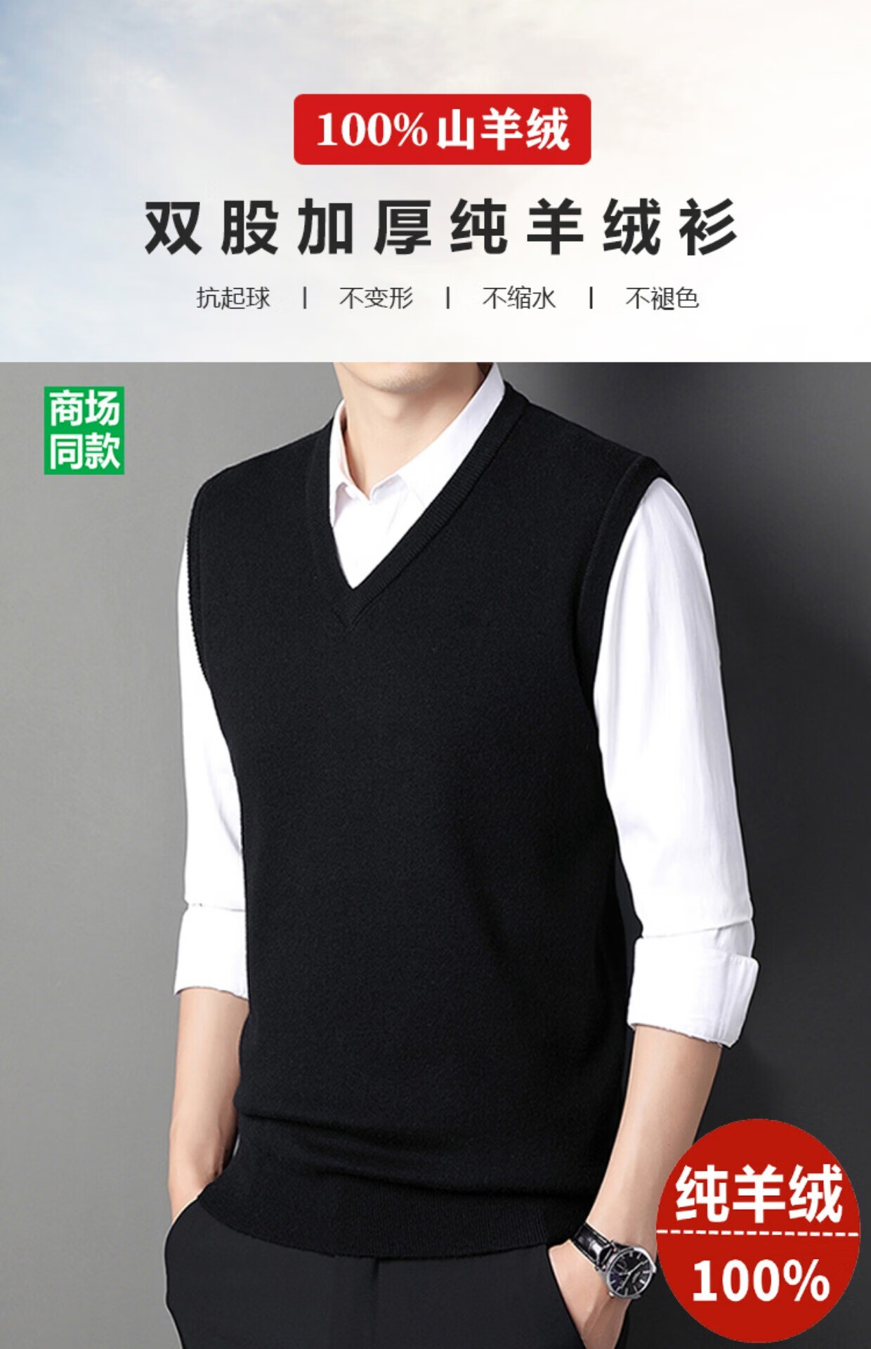 Hengyuanxiang wool sweater 100 pure goat hair men's thickened vest autumn and winter new middle-aged and elderly sleeveless vest knitted V-neck 2108 black pure 100 XL 175 (recommended 135-155 Jin Jin equals 0.5 kg) pure 100