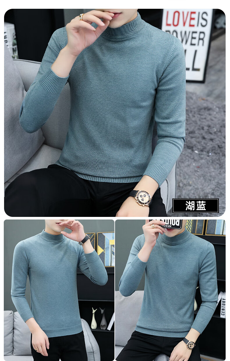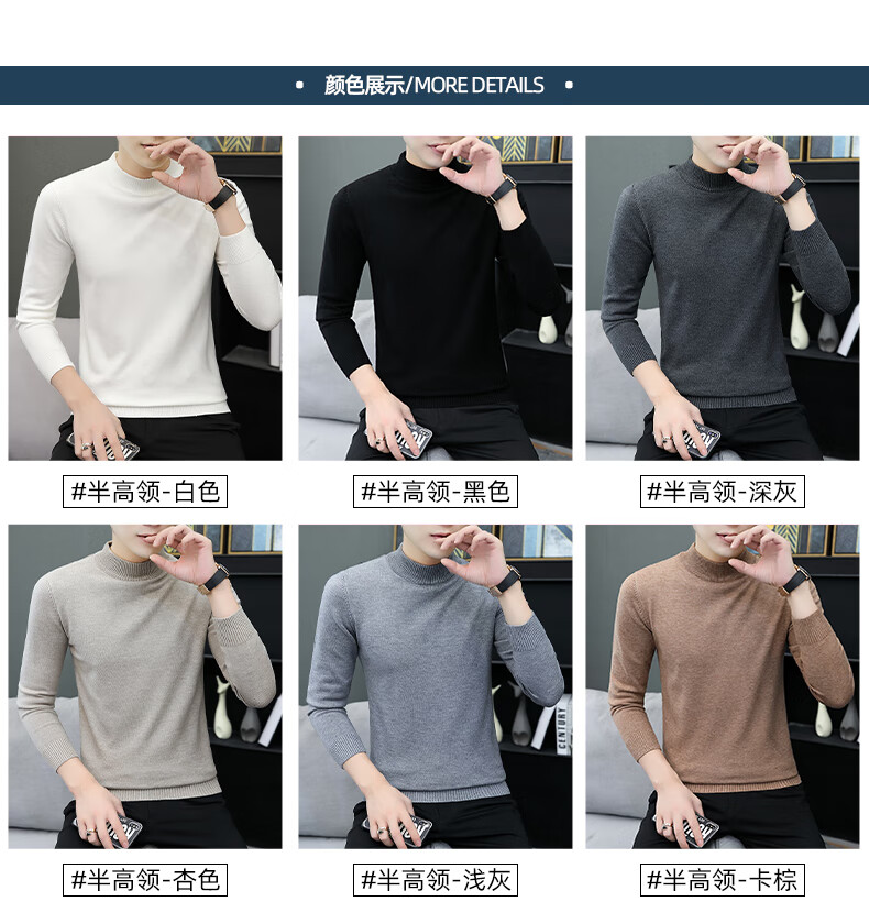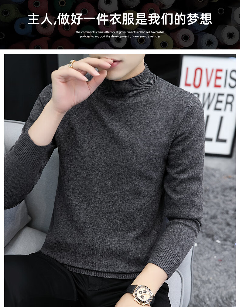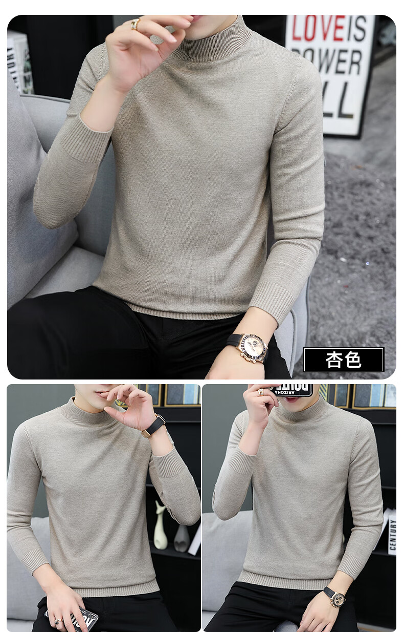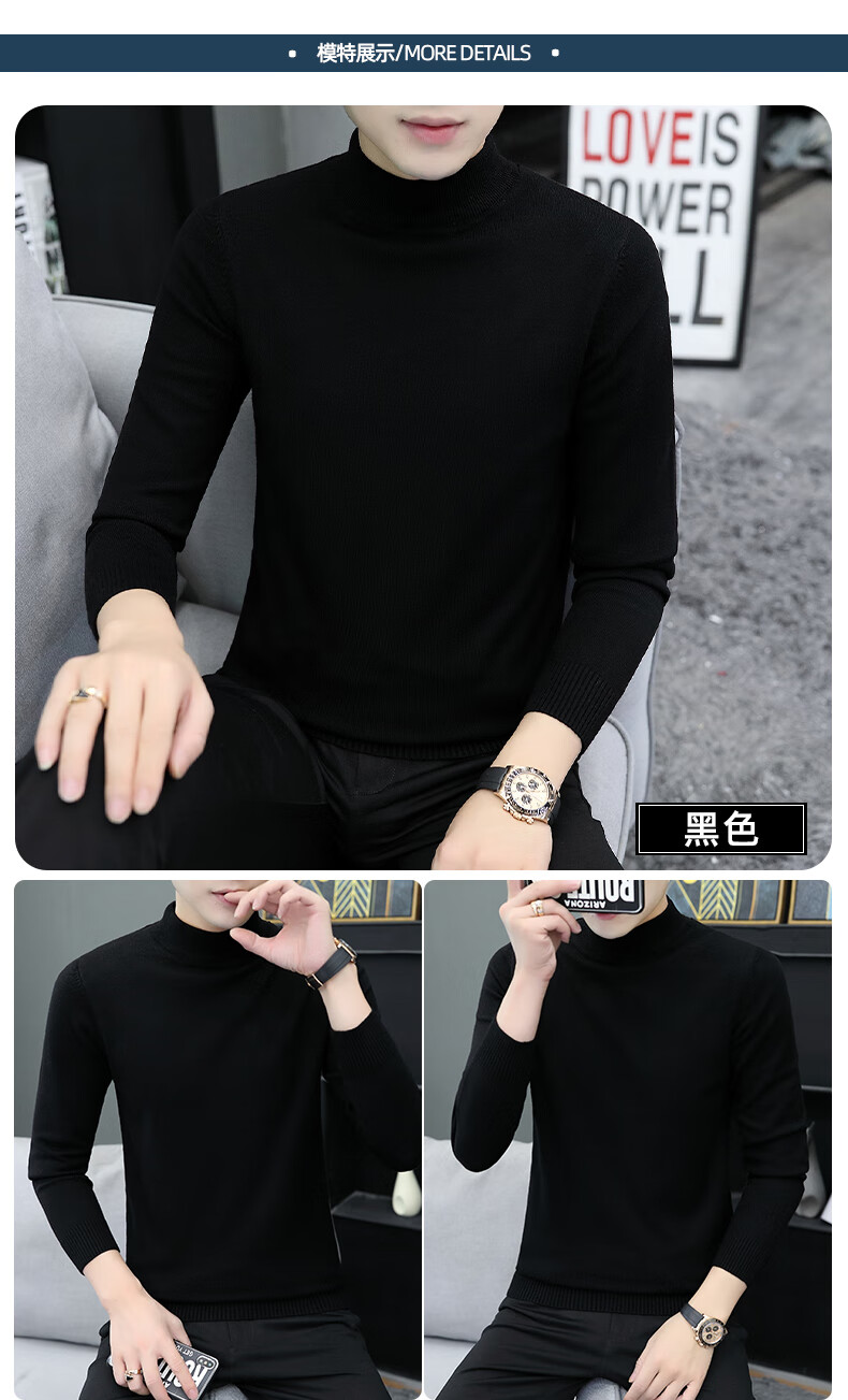 Bin color half turtleneck sweater men's winter solid color casual plus velvet thickened warm base shirt slim autumn and winter sweater men's half turtleneck black XL suitable for 120-140Jin Jin equals 0.5 kg