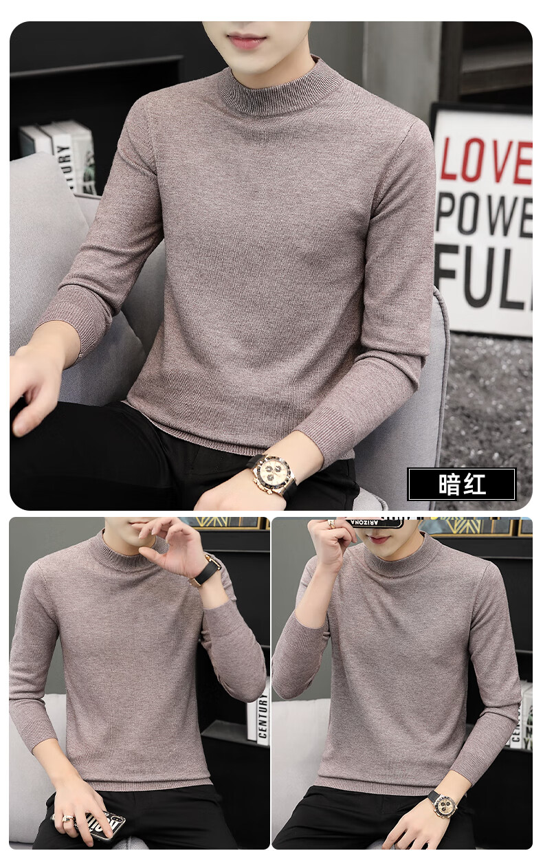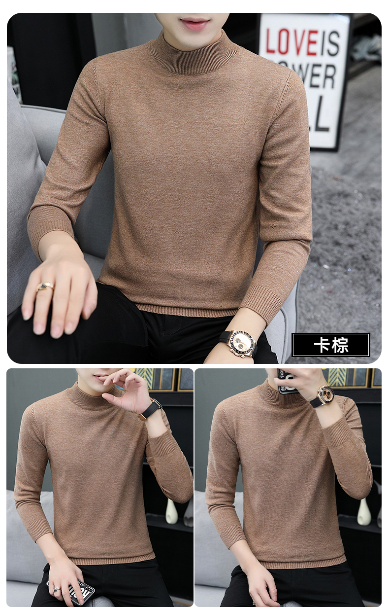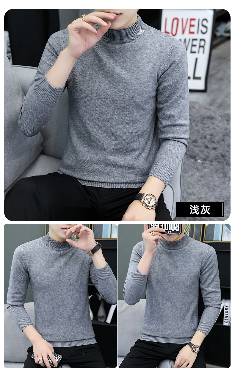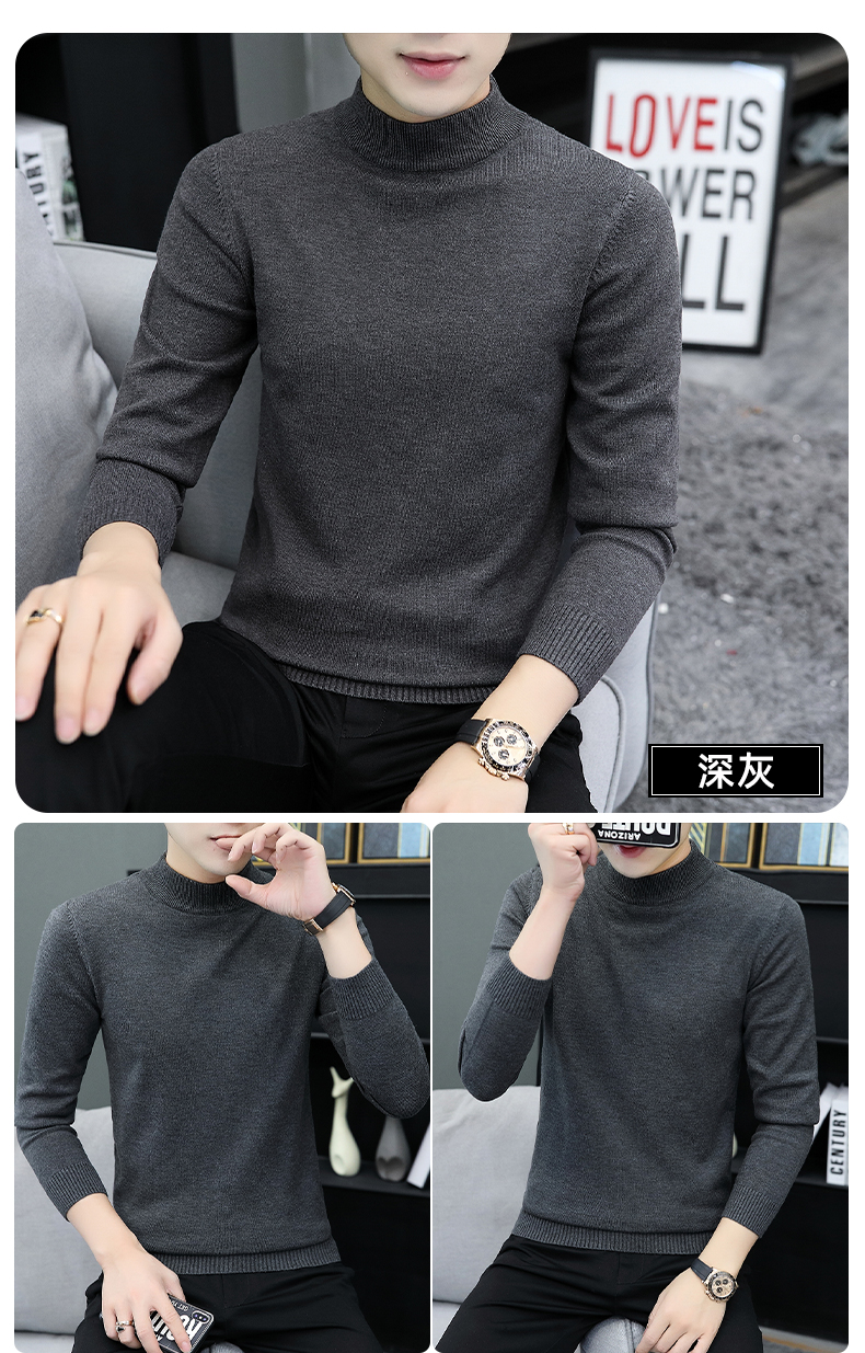 Bin color half turtleneck sweater men's winter solid color casual plus velvet thickened warm base shirt slim autumn and winter sweater men's half turtleneck black XL suitable for 120-140Jin Jin equals 0.5 kg