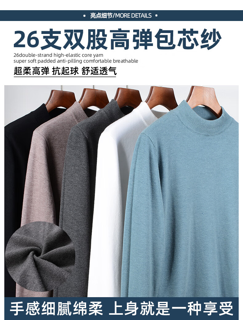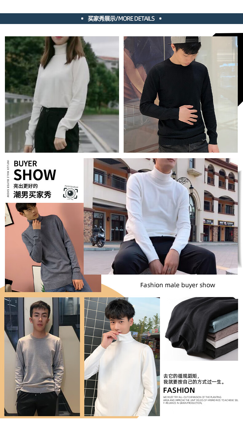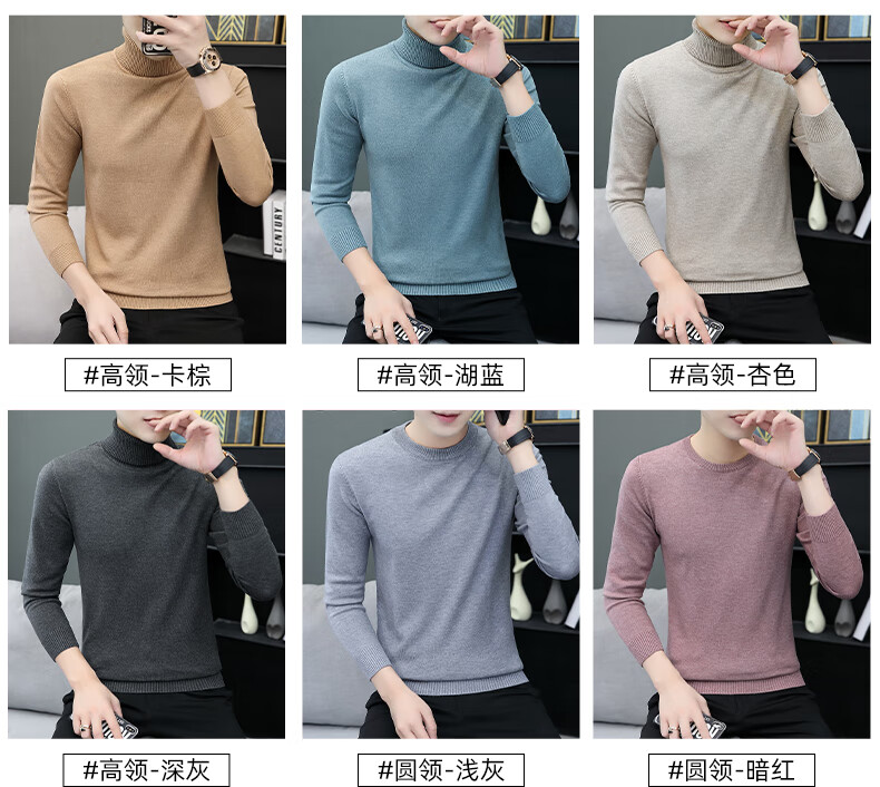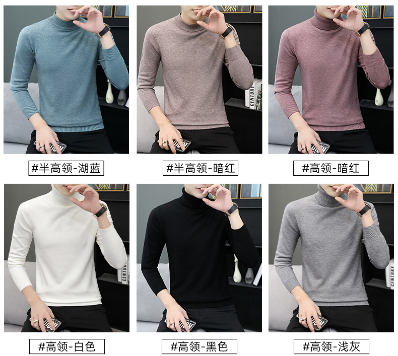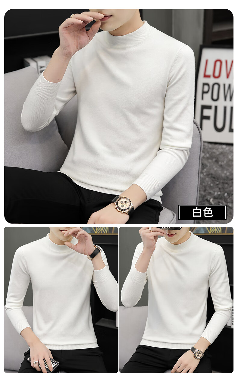 Bin color half turtleneck sweater men's winter solid color casual plus velvet thickened warm base shirt slim autumn and winter sweater men's half turtleneck black XL suitable for 120-140Jin Jin equals 0.5 kg