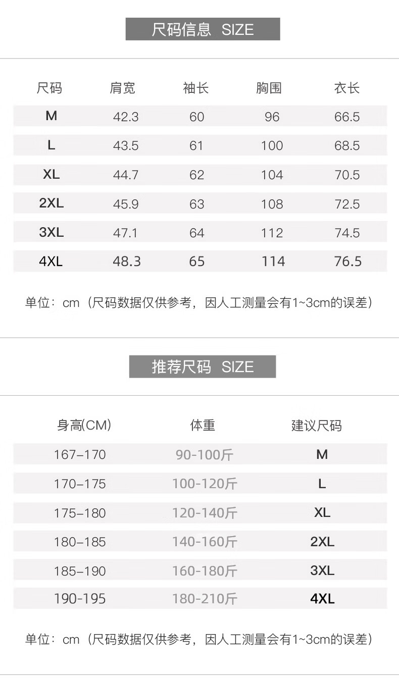 China (cm) 165 / 88-90 170 / 96-98 175 / 108-110 180 / 118-122 185 / 126-130