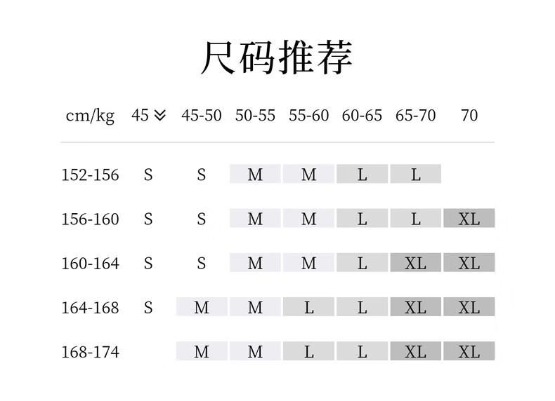 China (cm) 160-165/84-86 165-170 / 88-90 167-172 / 92-96 168-173 / 98-102 170-176 / 106-110