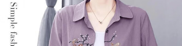 Playboy (PLAYBOY) pure cotton long-sleeved shirt women's tops 2025 spring and autumn new style middle-aged mother ladies large size versatile shirt jacket purple M recommended 85-105 Jin Jin equals 0.5 kg